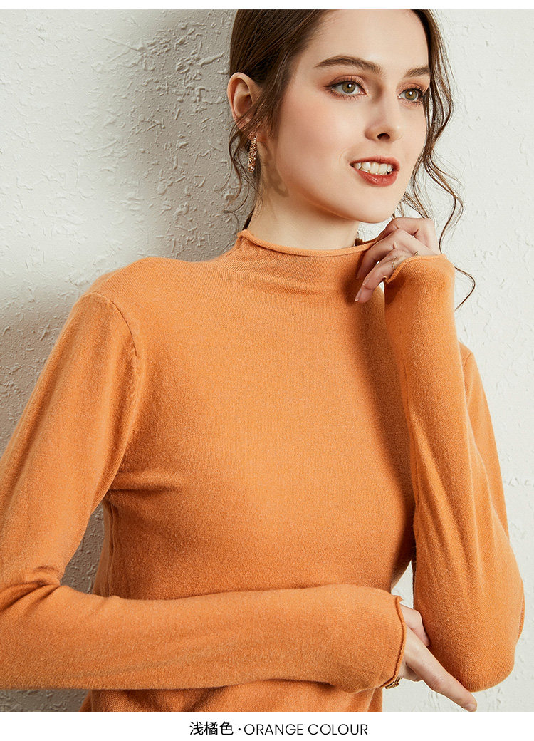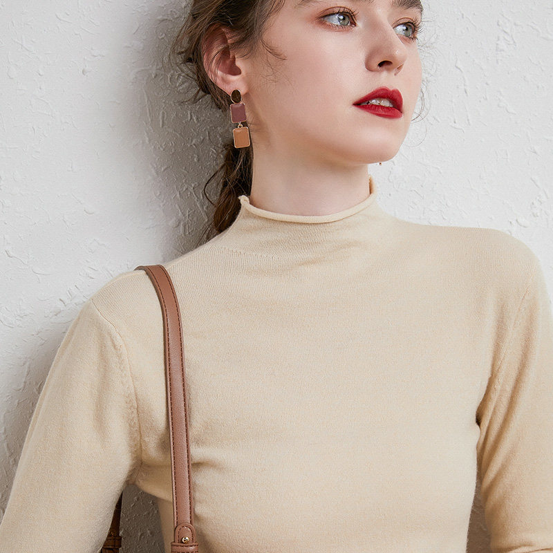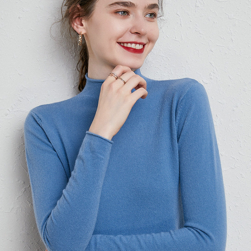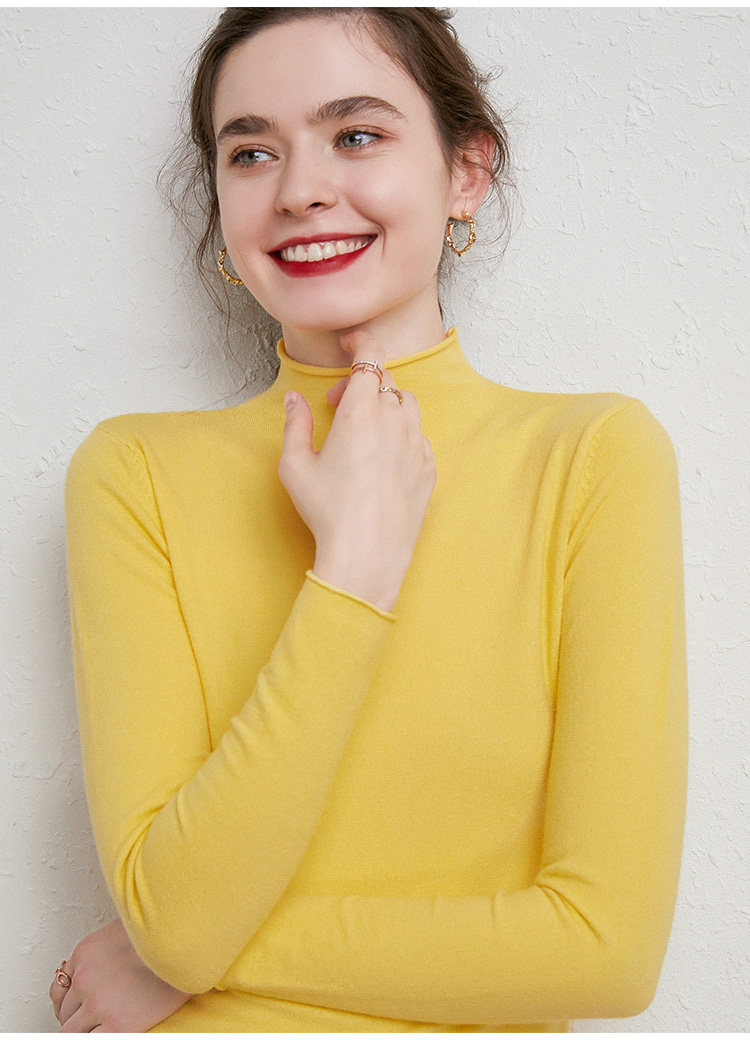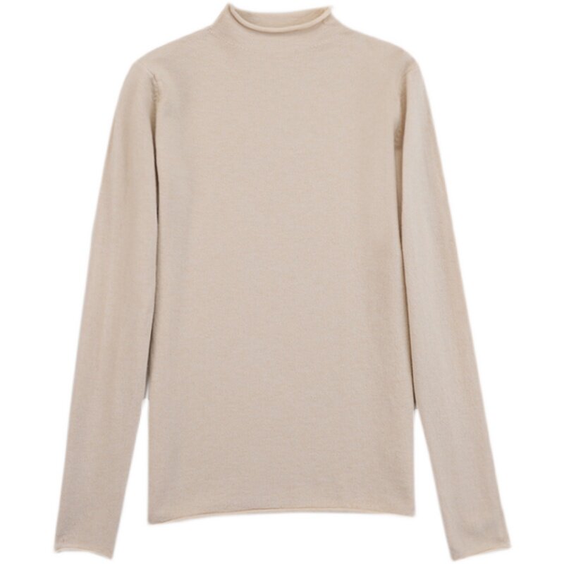 Демисезонный кашемировый короткий трикотажный шерстяной свитер, высокий воротник, облегающий крой