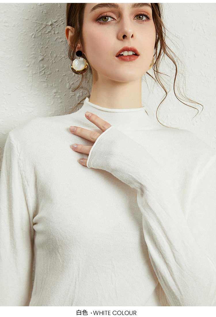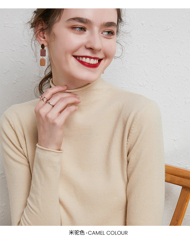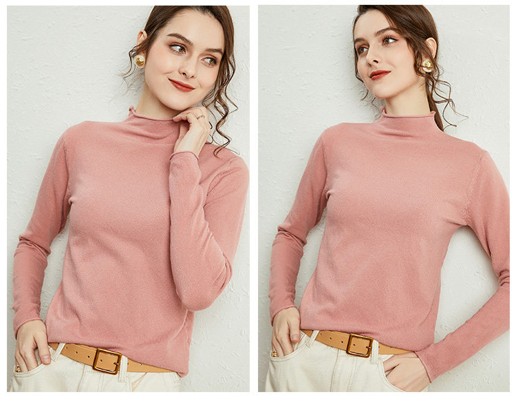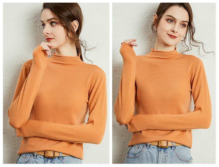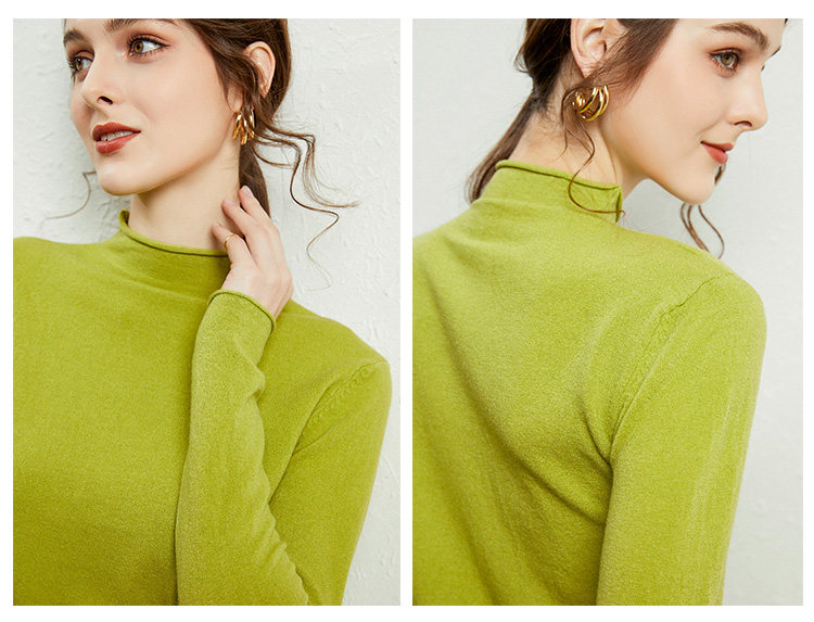 Демисезонный кашемировый короткий трикотажный шерстяной свитер, высокий воротник, облегающий крой