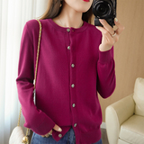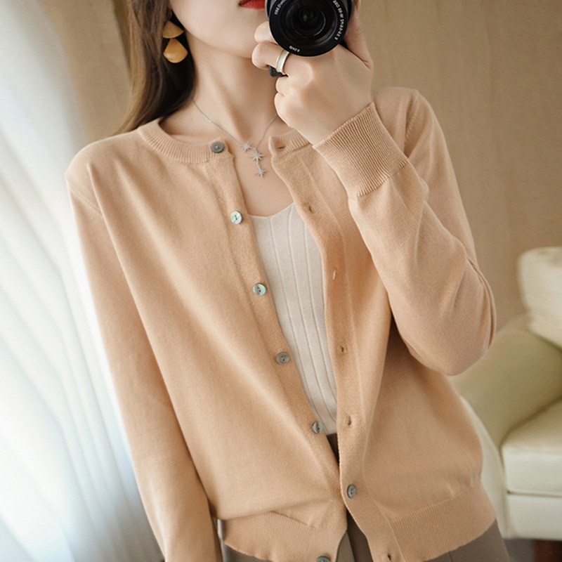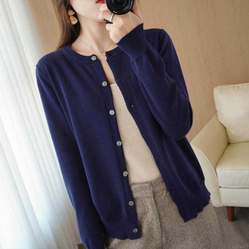 Хлопковый лонгслив с круглым воротником, кардиган, куртка, короткий свитер, 100% хлопок, оверсайз