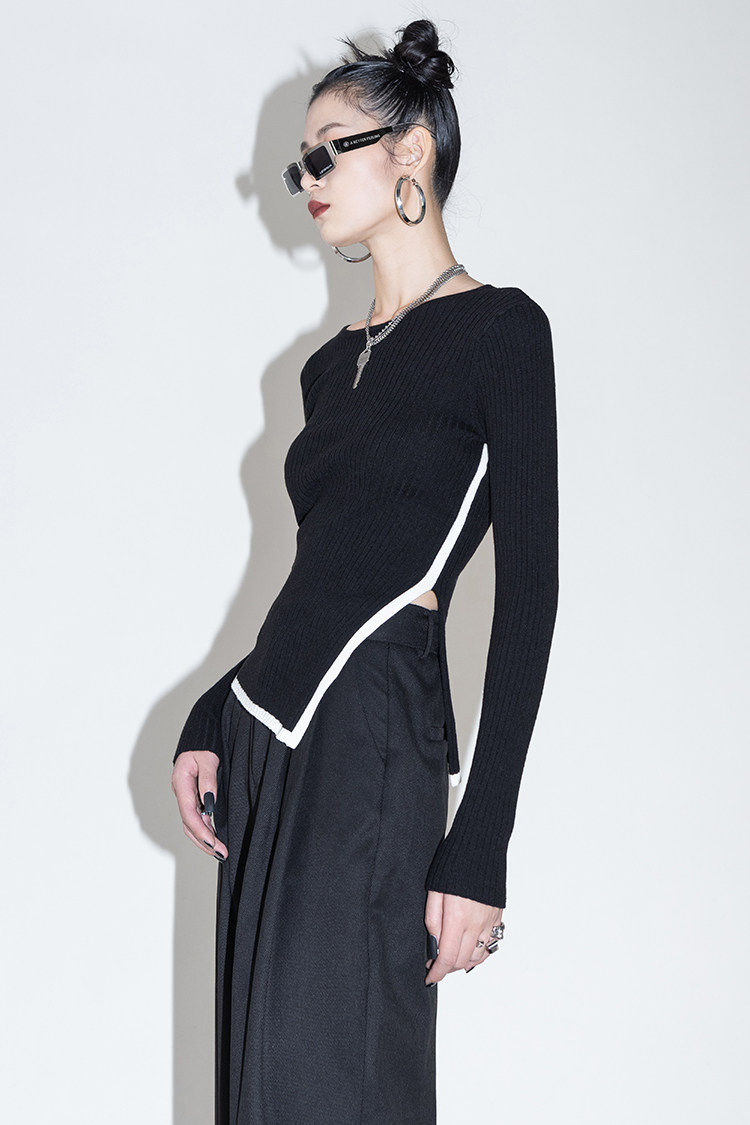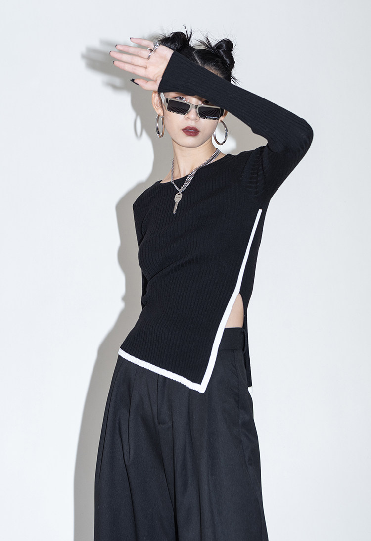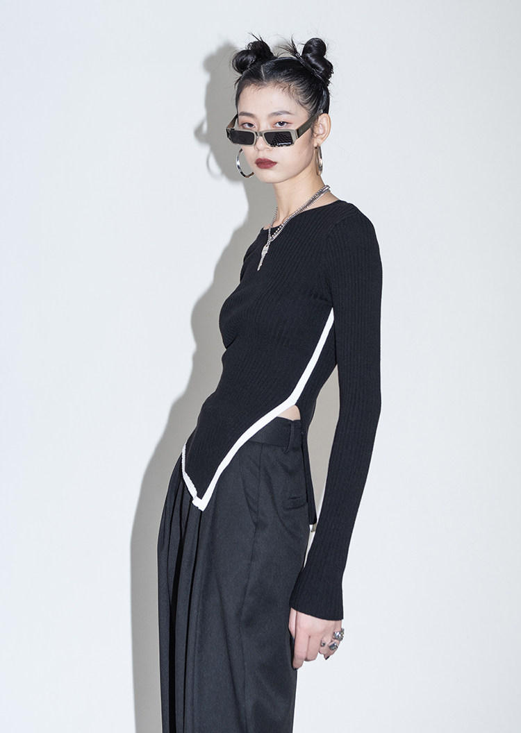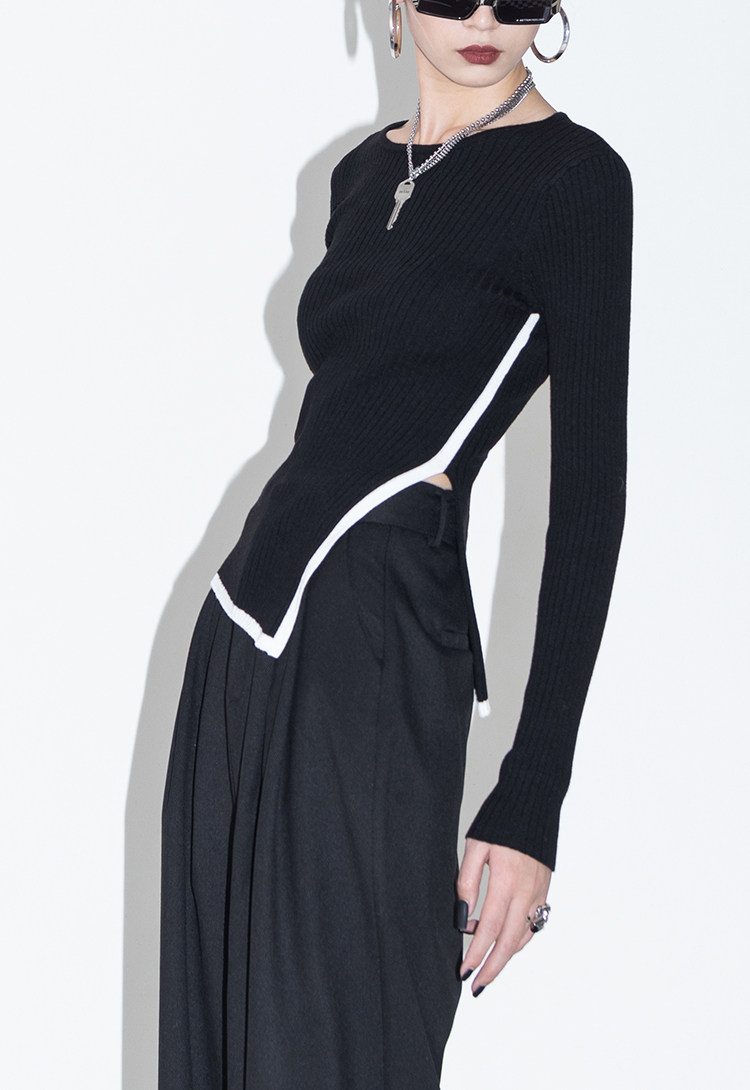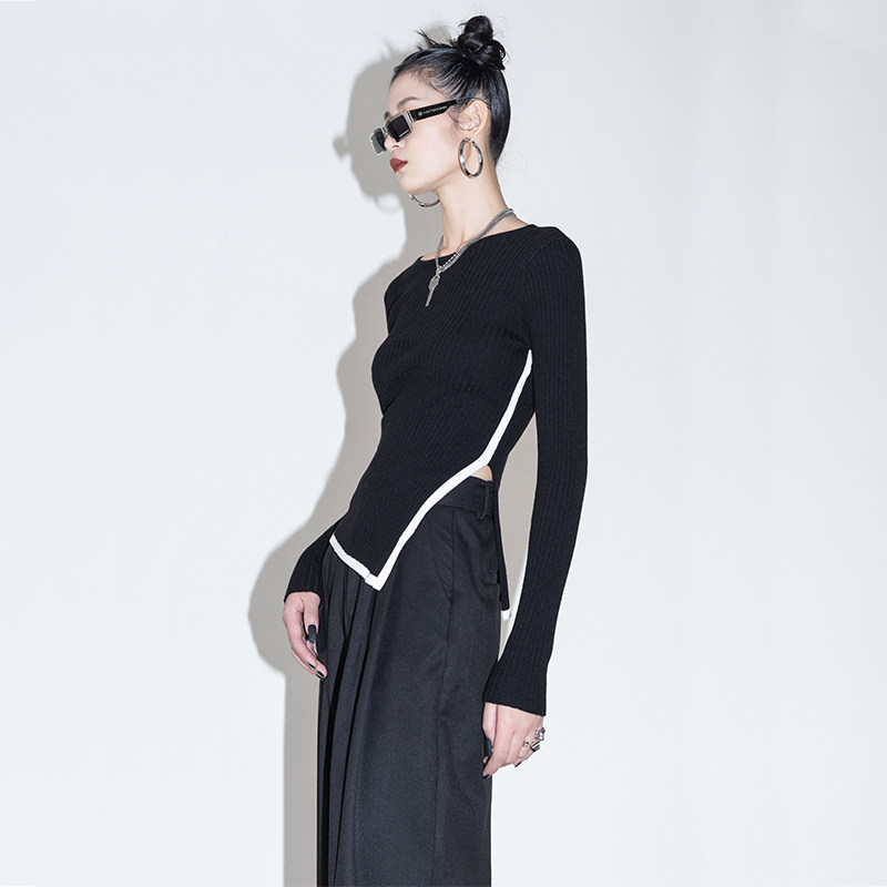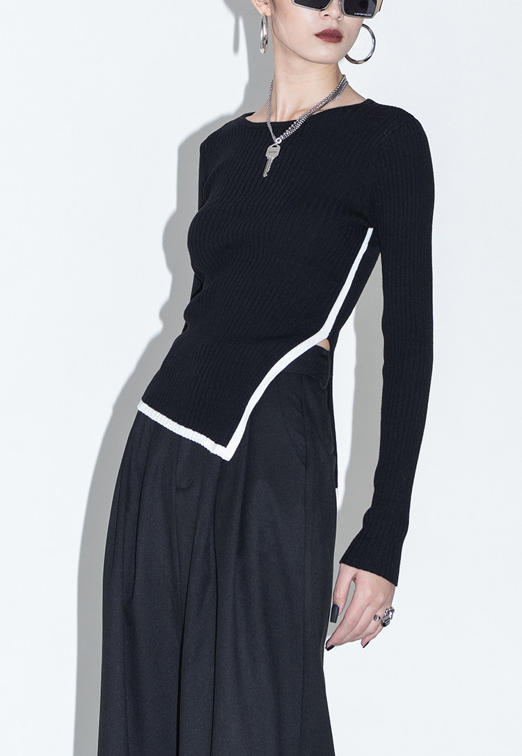 Оригинальный дизайнерский шерстяной асимметричный трикотажный зимний базовый свитер