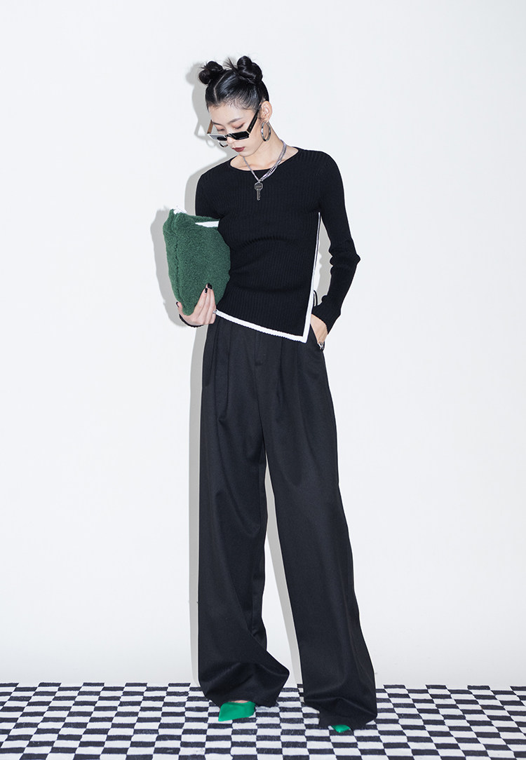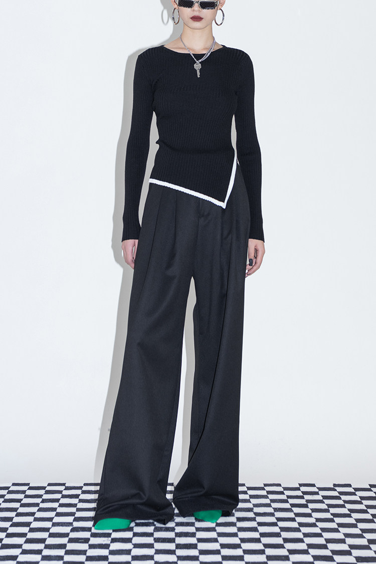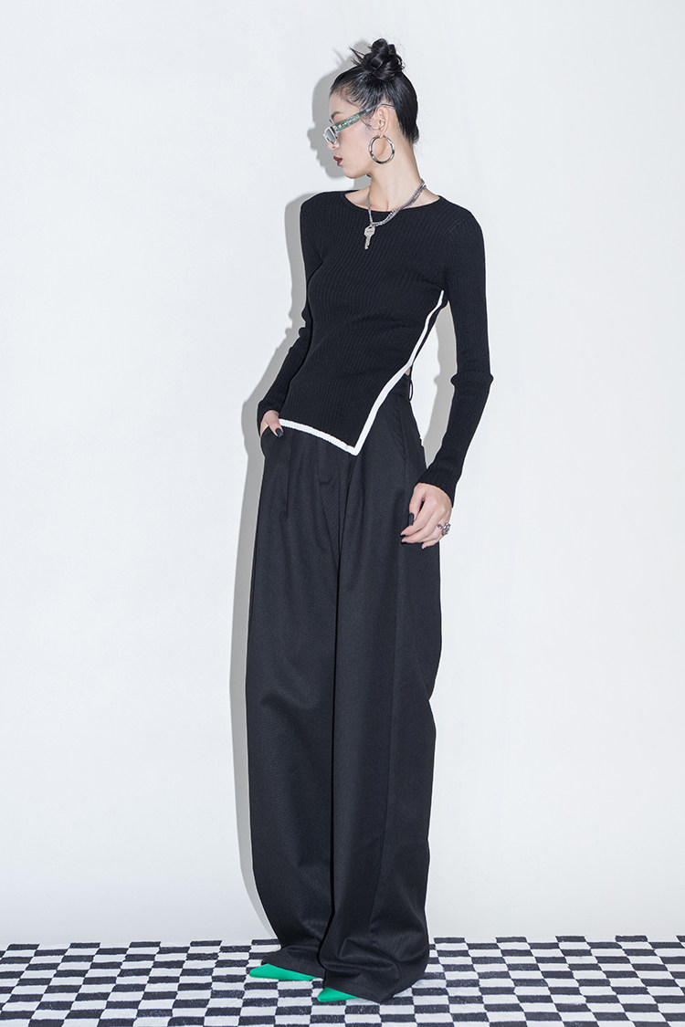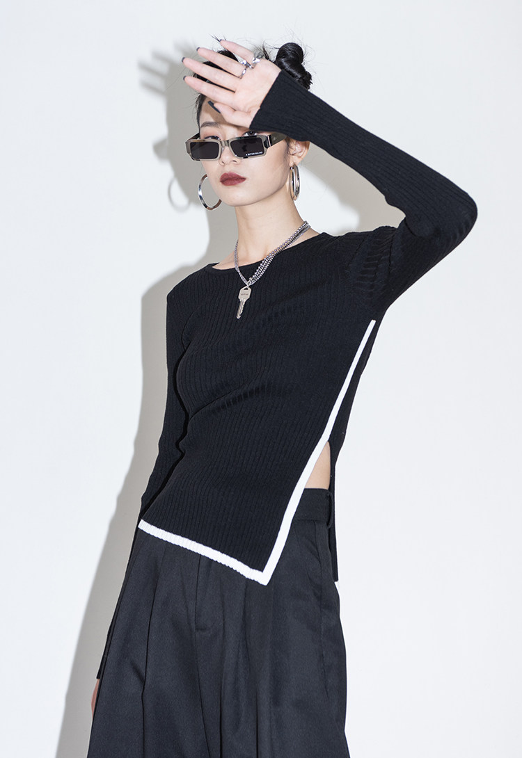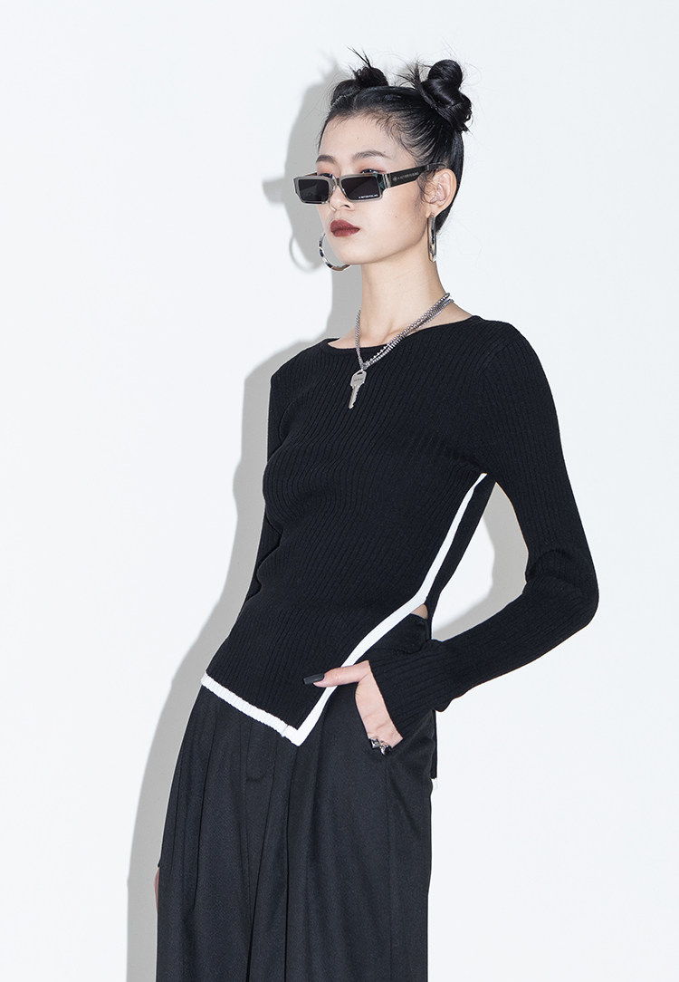 Оригинальный дизайнерский шерстяной асимметричный трикотажный зимний базовый свитер