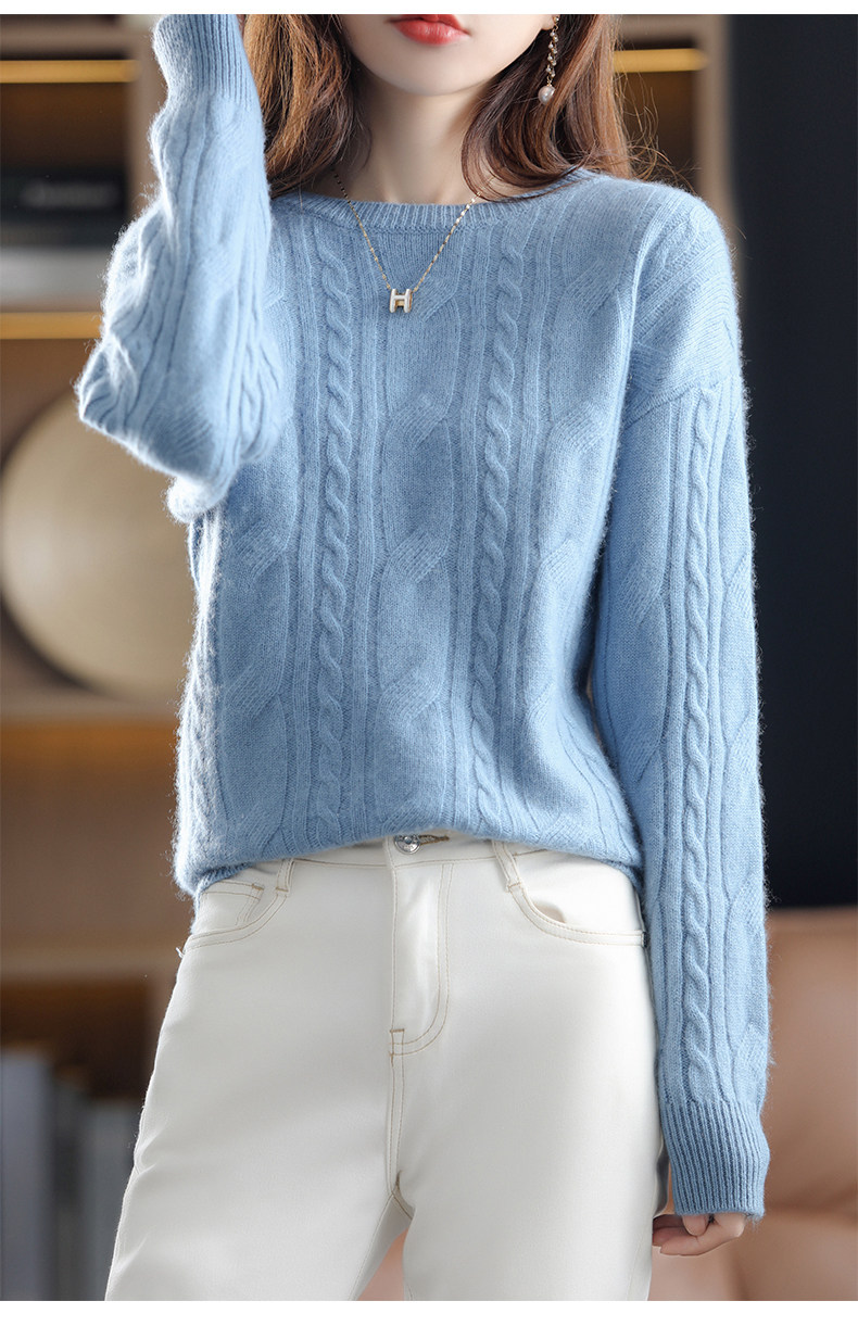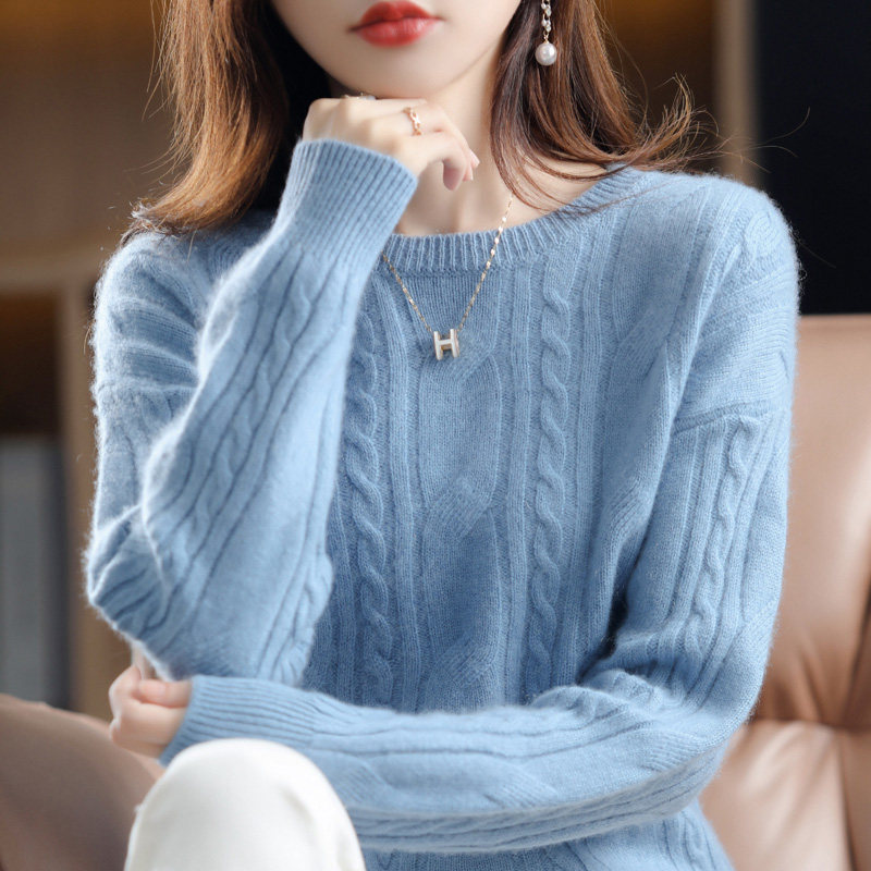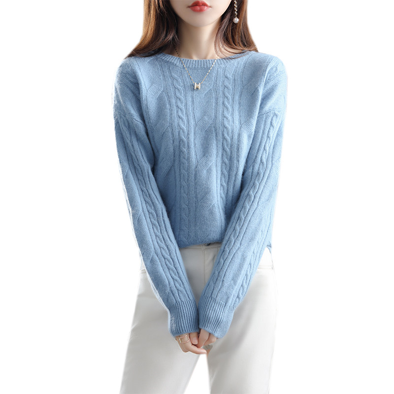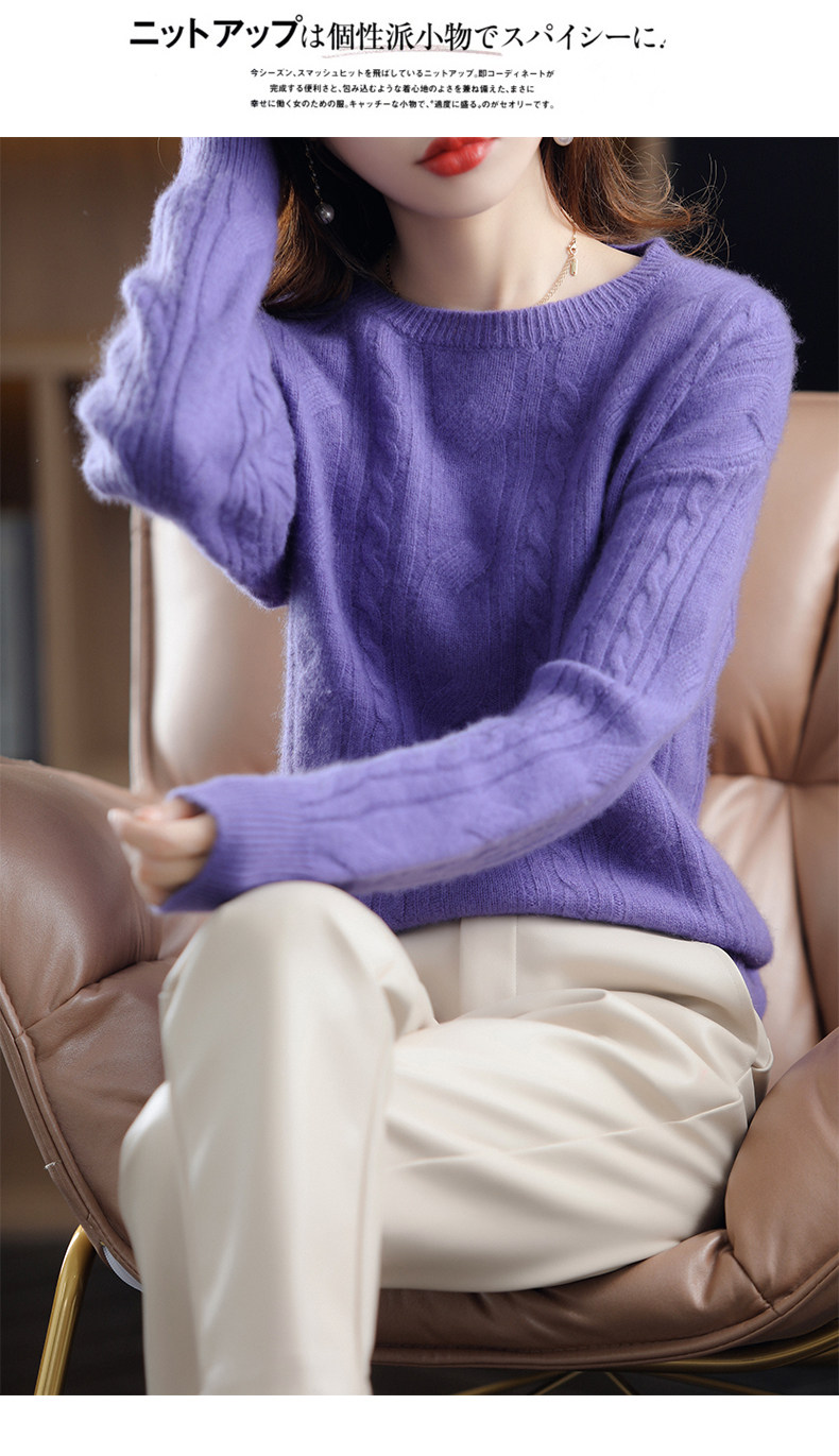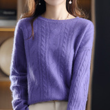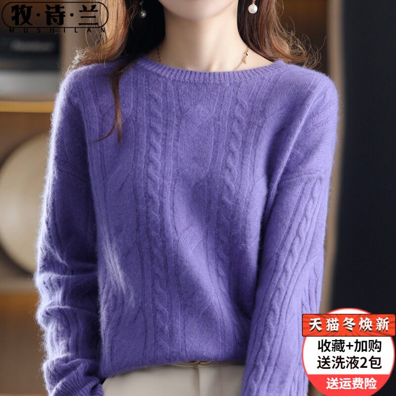 Ретро шерстяной свитер с круглым воротником, трикотажные демисезонные сиреневые джинсы с начесом