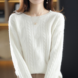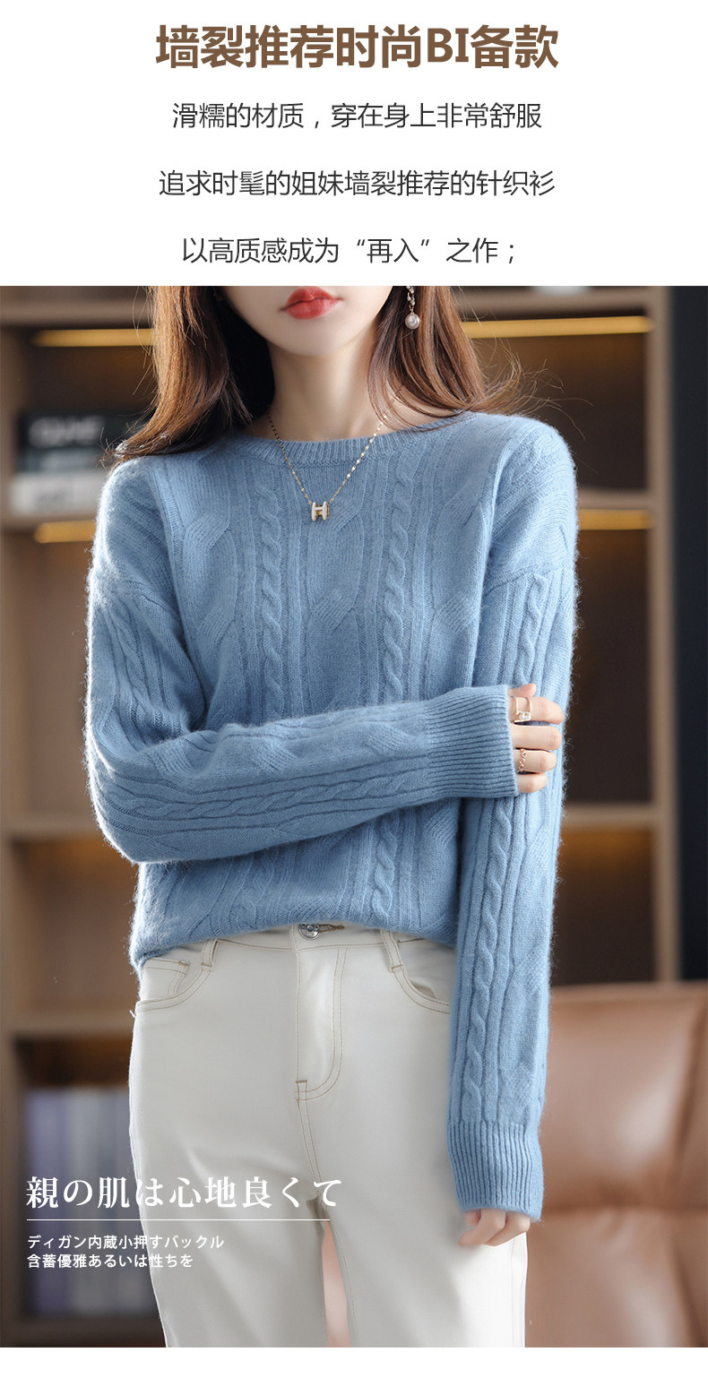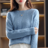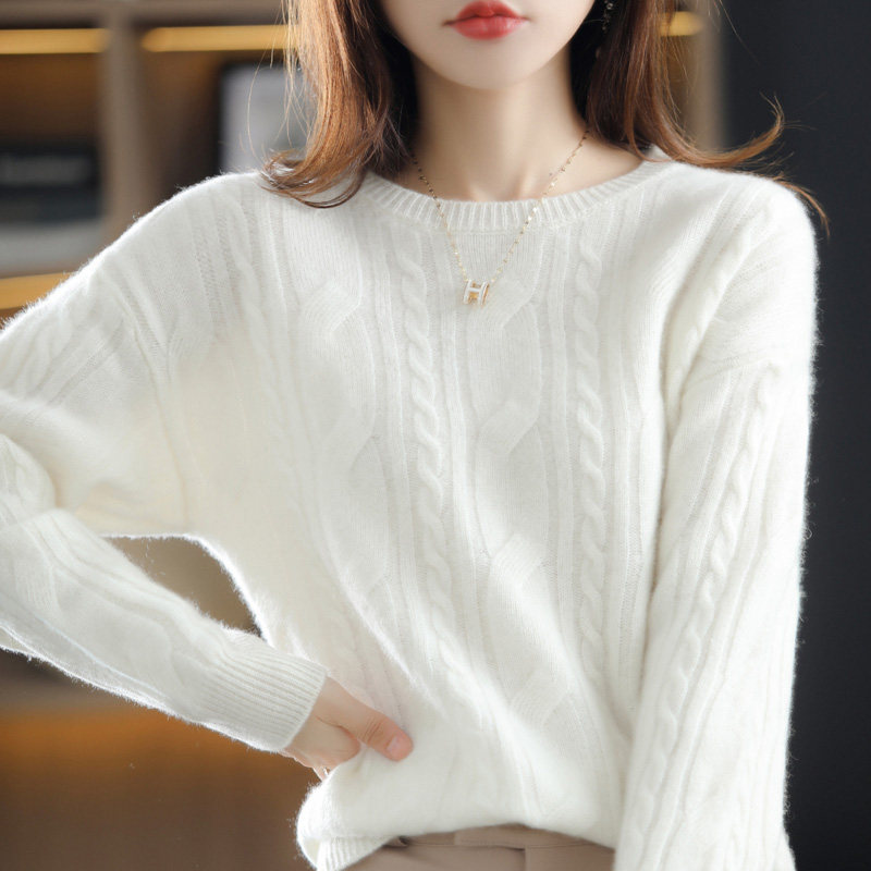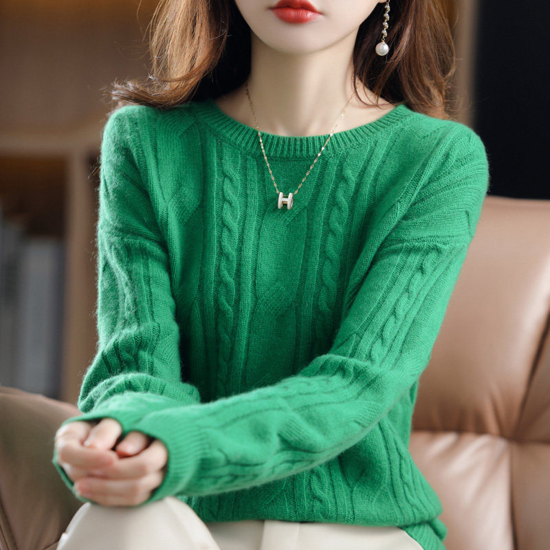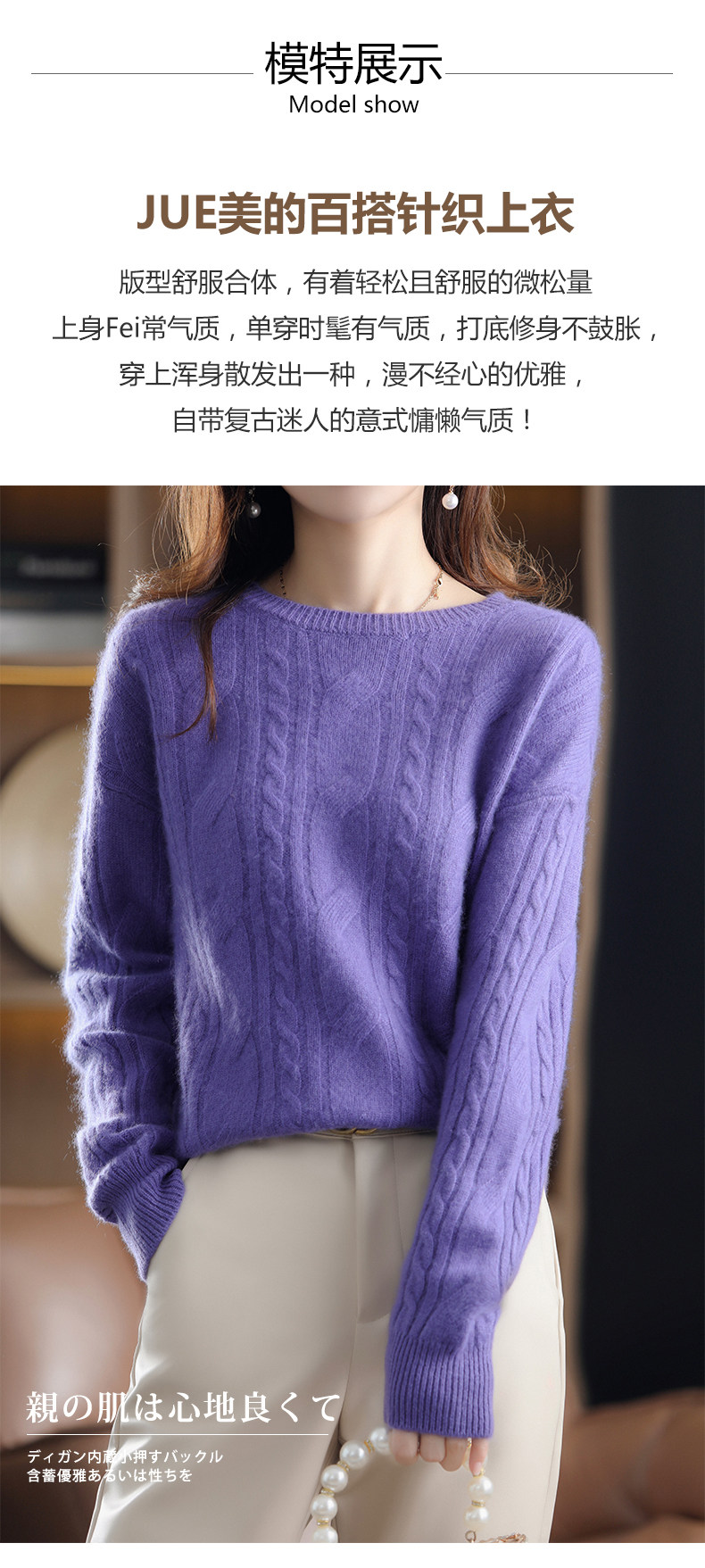 Ретро шерстяной свитер с круглым воротником, трикотажные демисезонные сиреневые джинсы с начесом