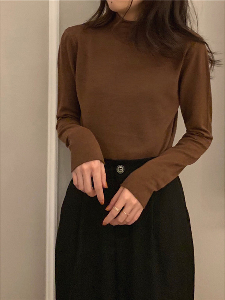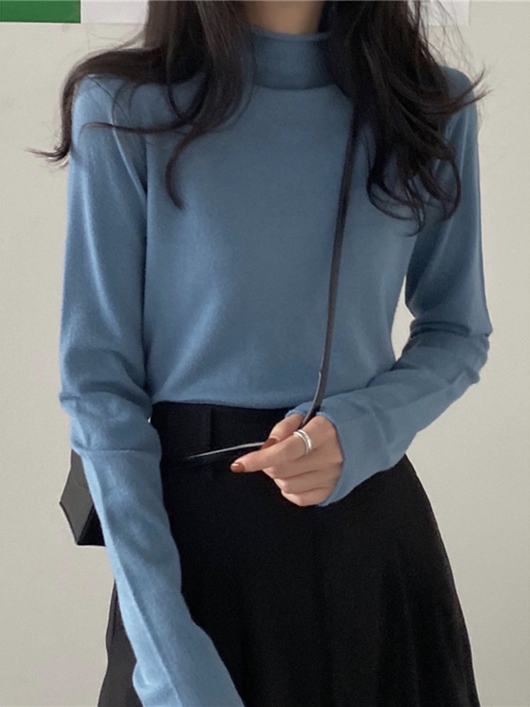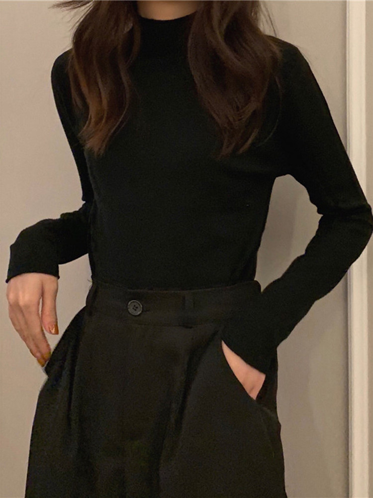 Приталенный трикотажный весенний базовый приятный телу свитер, в корейском стиле
