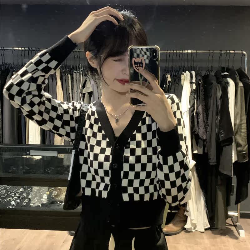 Шахматы, весенний кардиган, свитер, дизайнерская куртка, V-образный вырез, тренд сезона