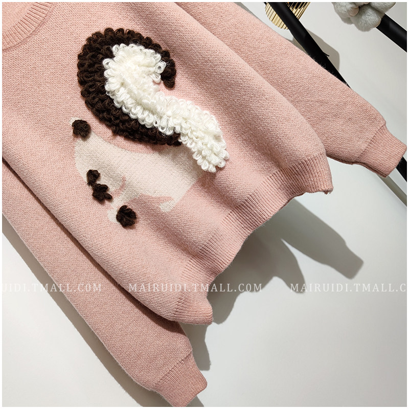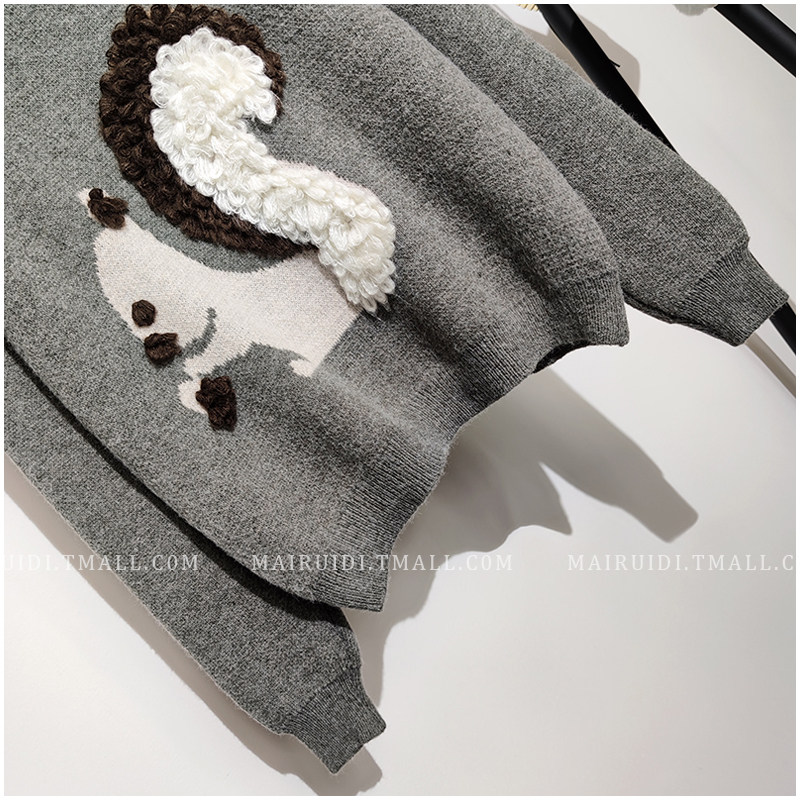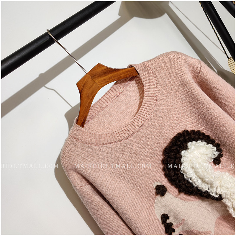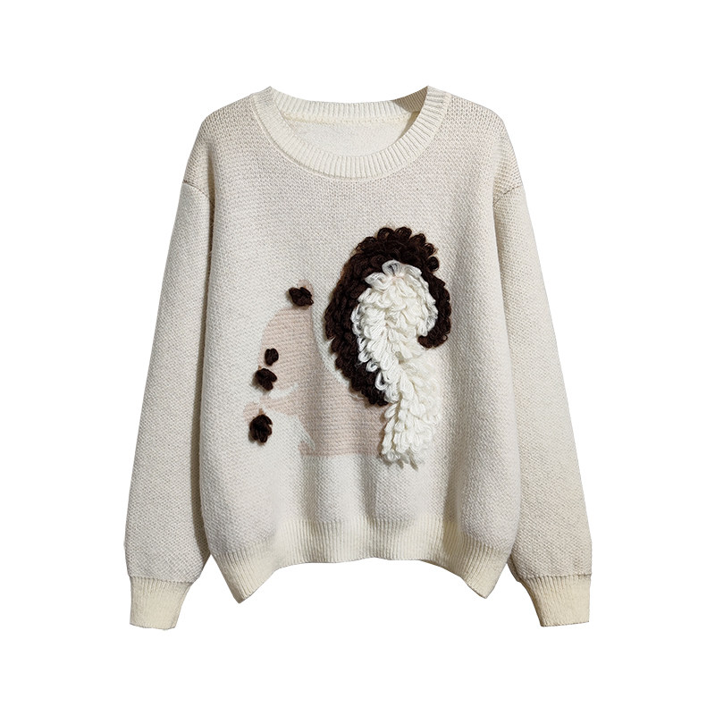 Мультяшный демисезонный милый трикотажный свитер с круглым воротником, оверсайз, в корейском стиле, в западном стиле