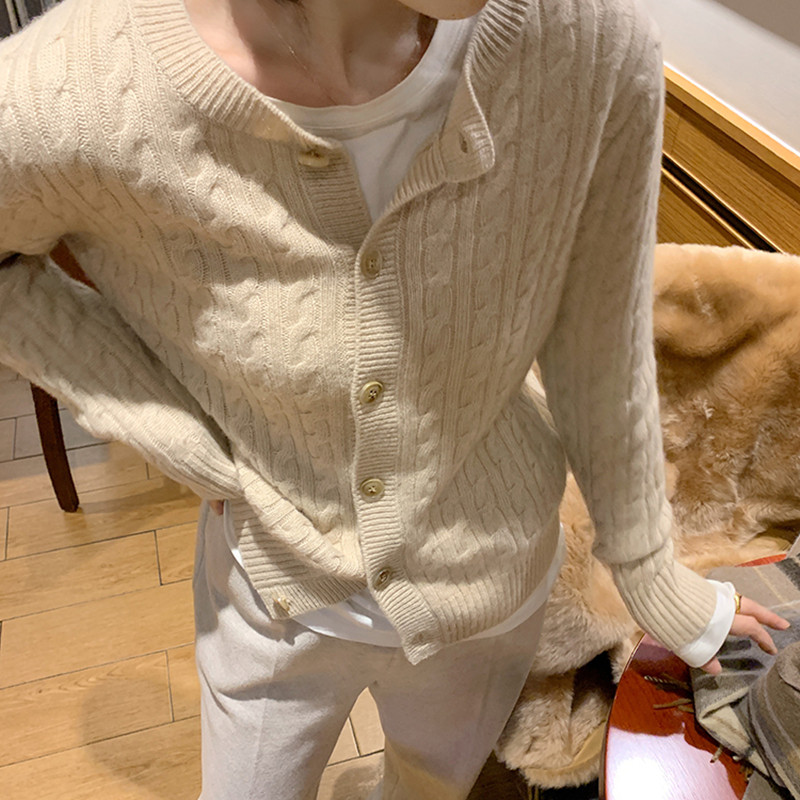 Кашемировый короткий свитер с круглым воротником, куртка, демисезонный кардиган