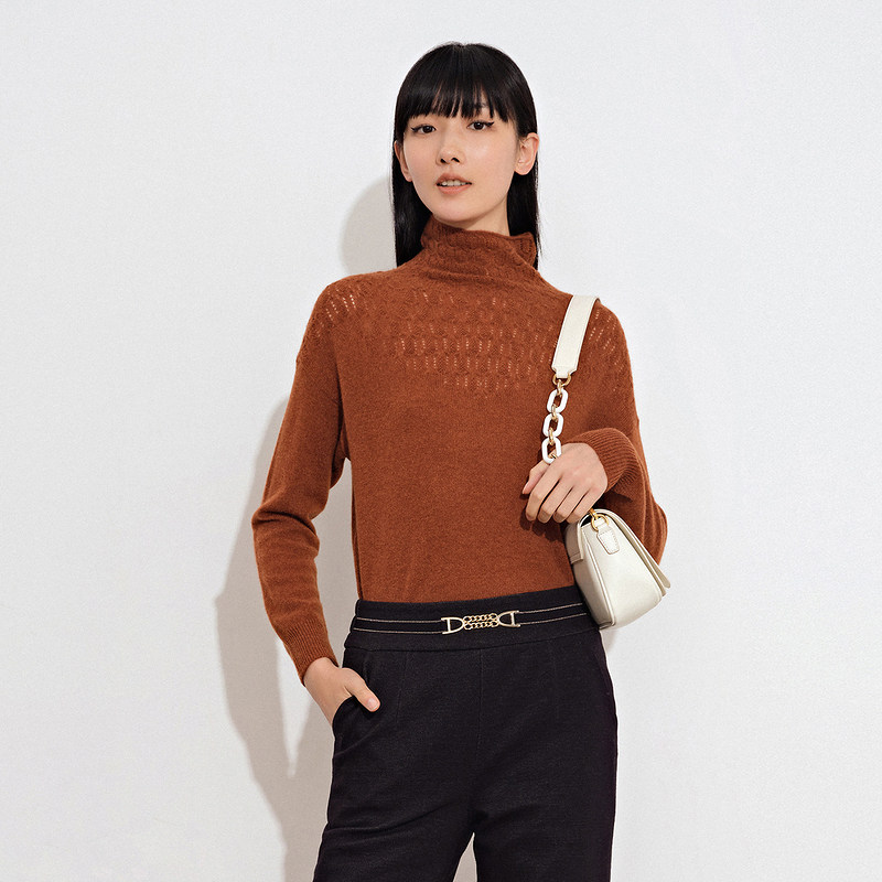 Осенний модный кашемировый удерживающий тепло трикотажный свитер, коллекция 2021, высокий воротник, облегающий крой