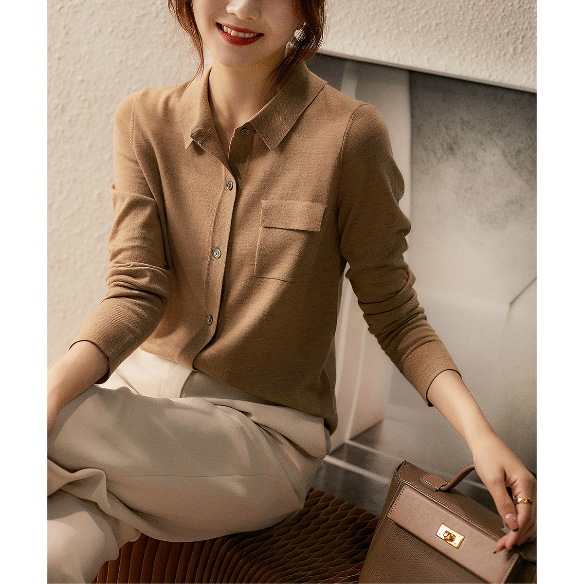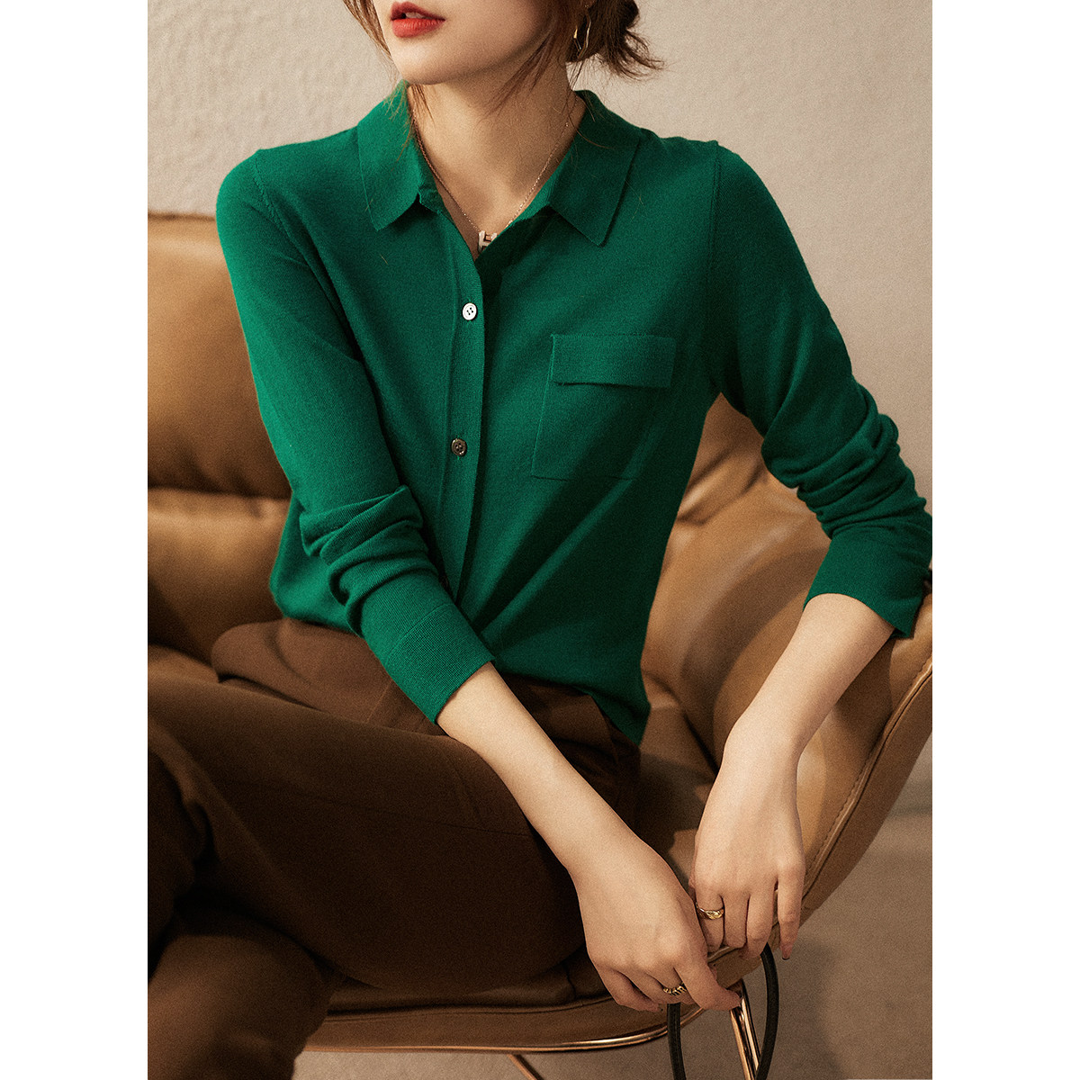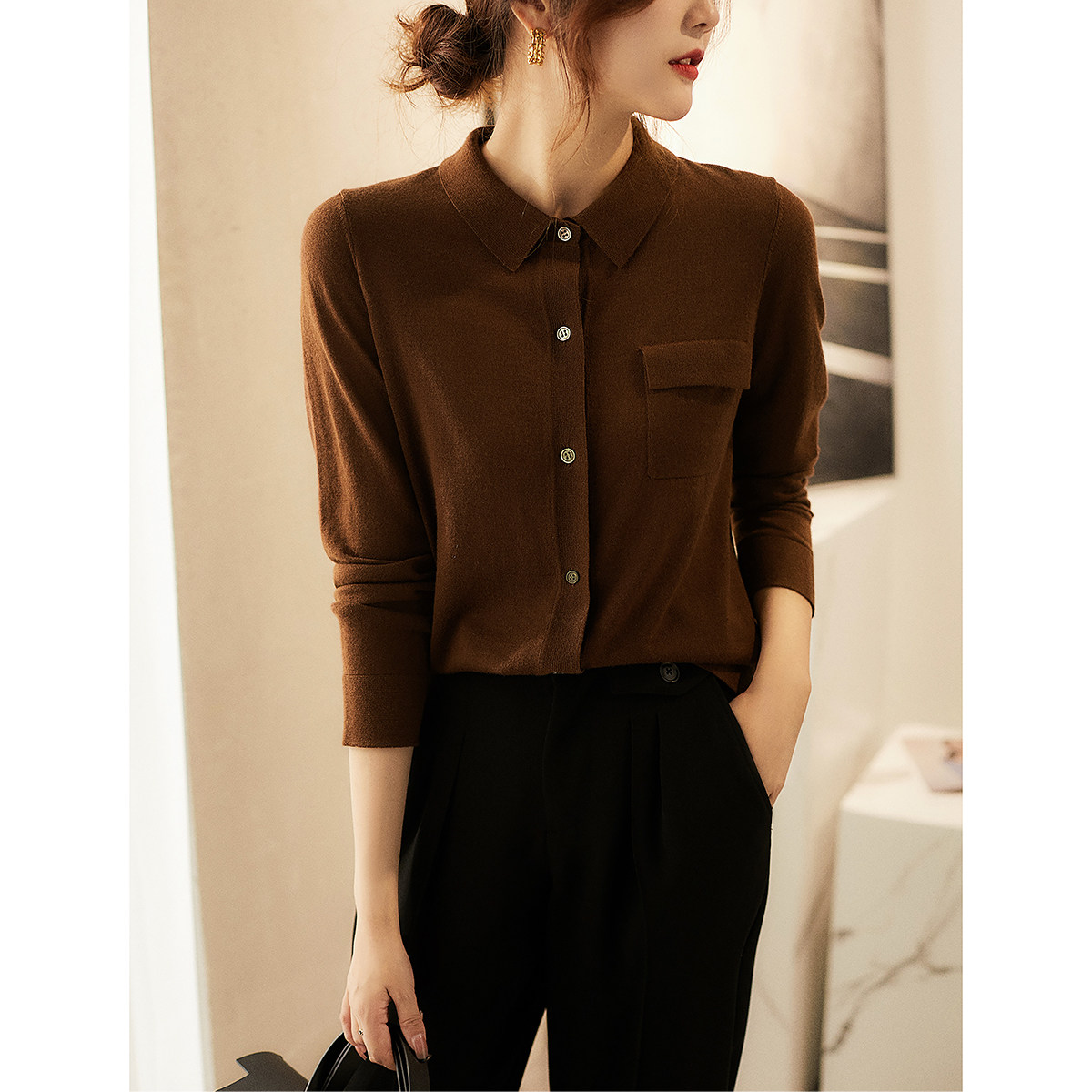 Pre- [Zwi464888ag] Элегантный французский шик!Ретро -растяжка в стиле рубашка для рубашки с рубашкой для рубашки