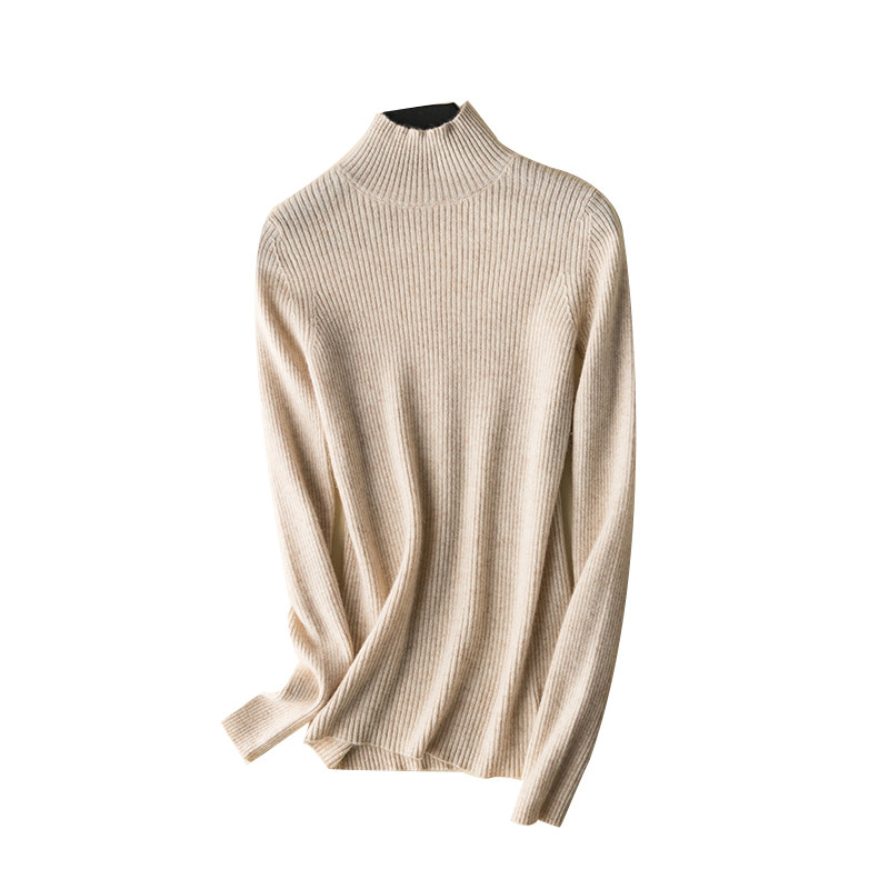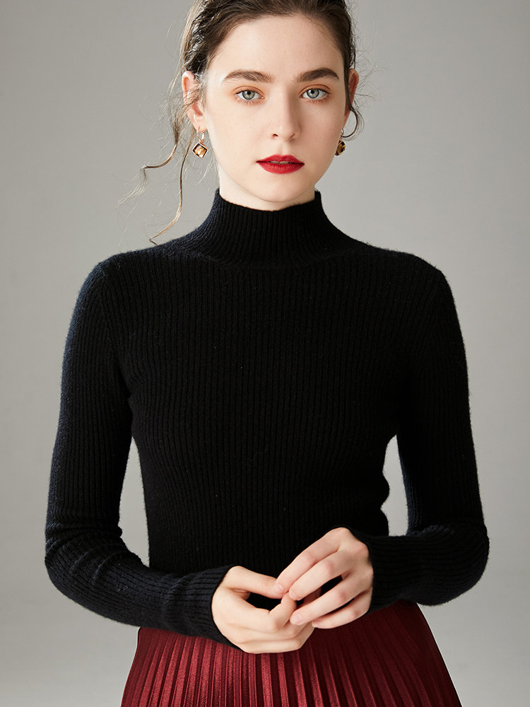 Шерстяной трикотажный кашемировый приталенный свитер, высокий воротник, в западном стиле