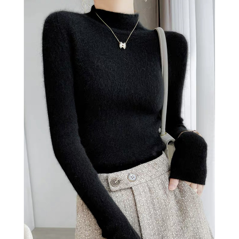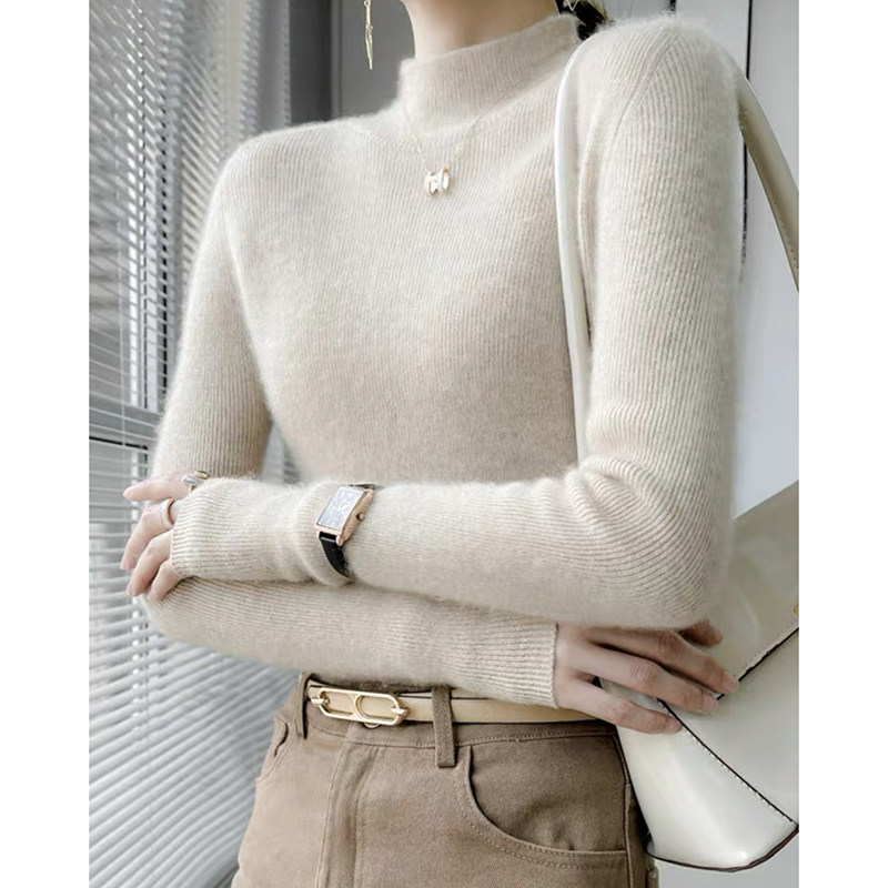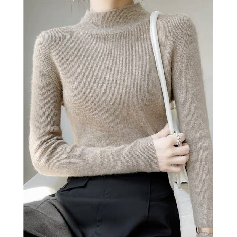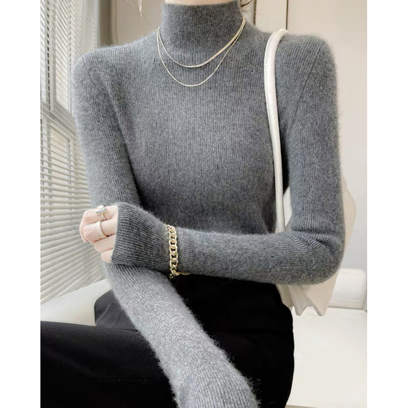 Демисезонный шерстяной удерживающий тепло базовый свитер, высокий воротник, облегающий крой, в западном стиле, увеличенная толщина