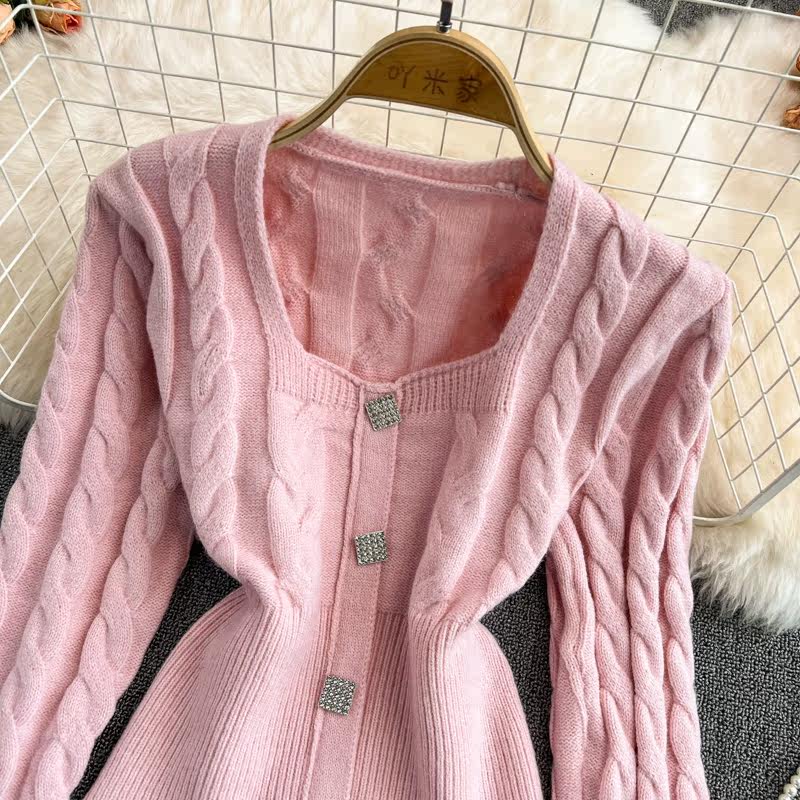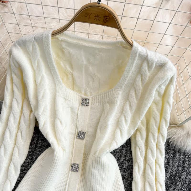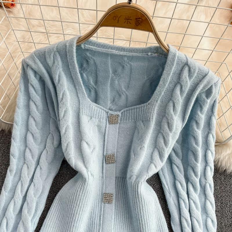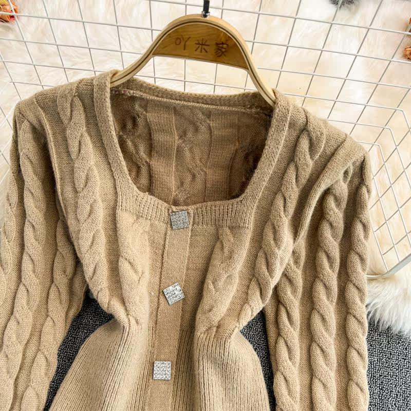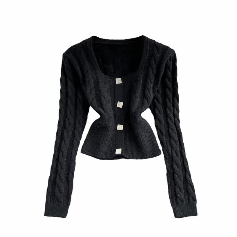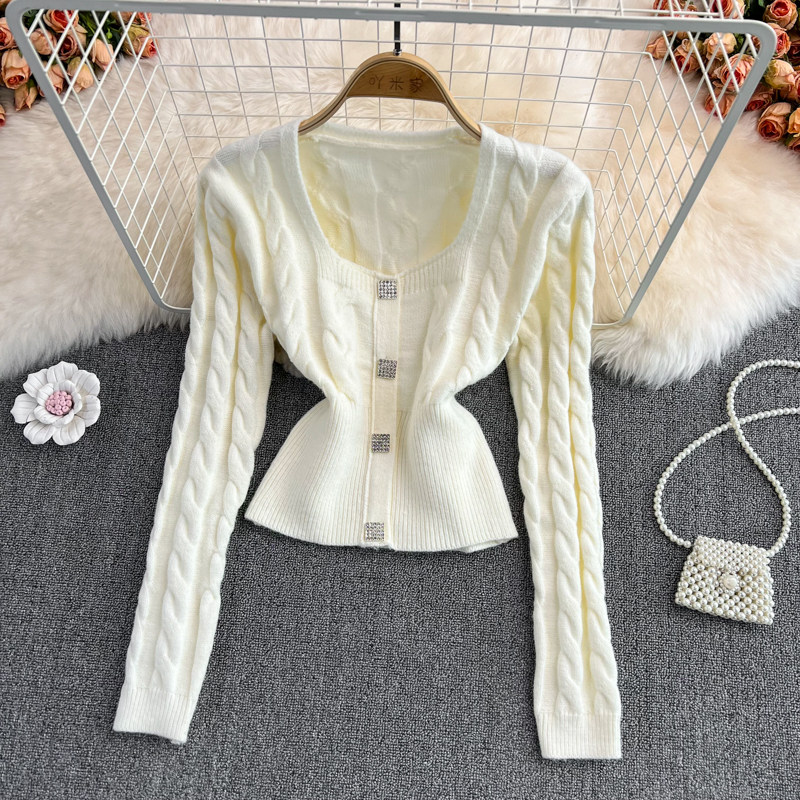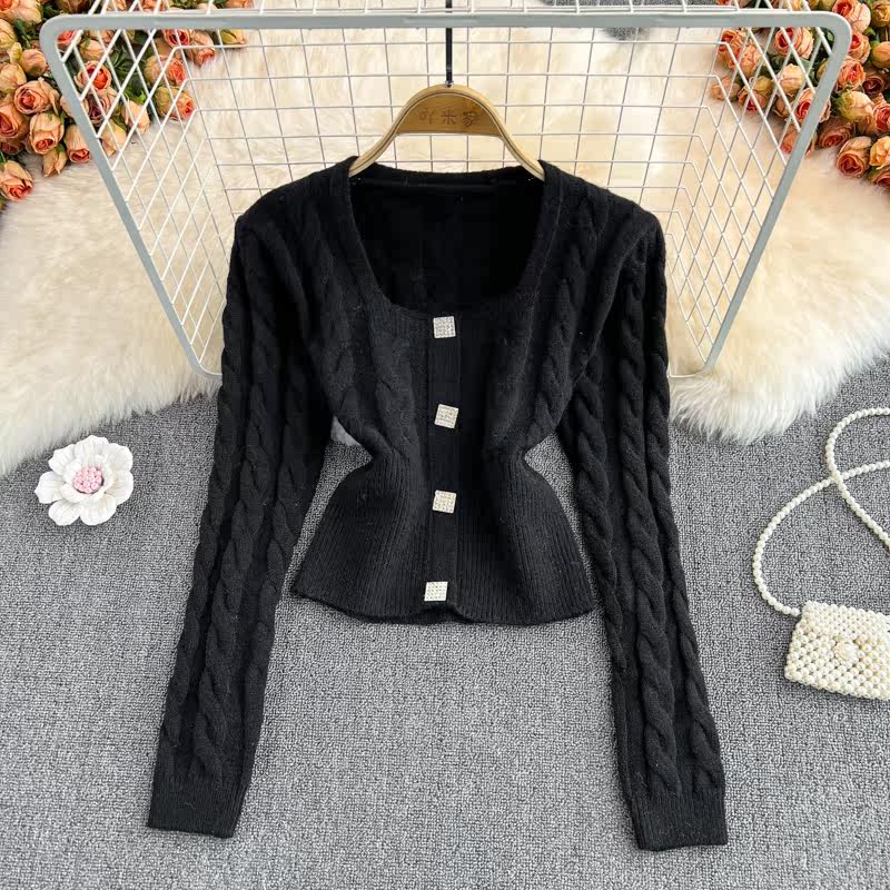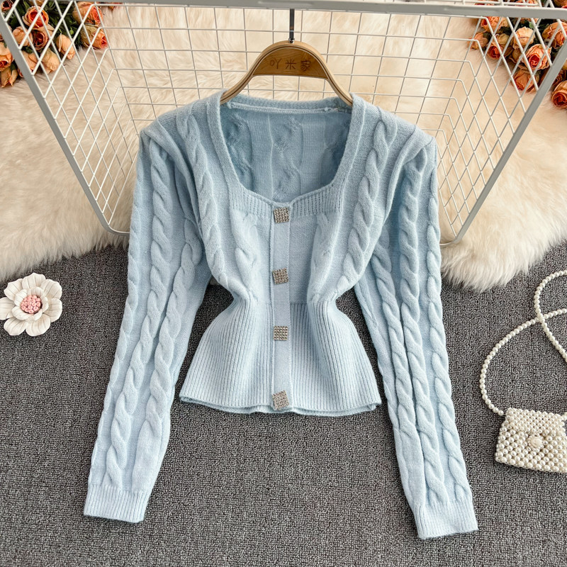 Демисезонный ретро дизайнерский короткий модный свитер, коллекция 2021, в корейском стиле, квадратный вырез, в западном стиле