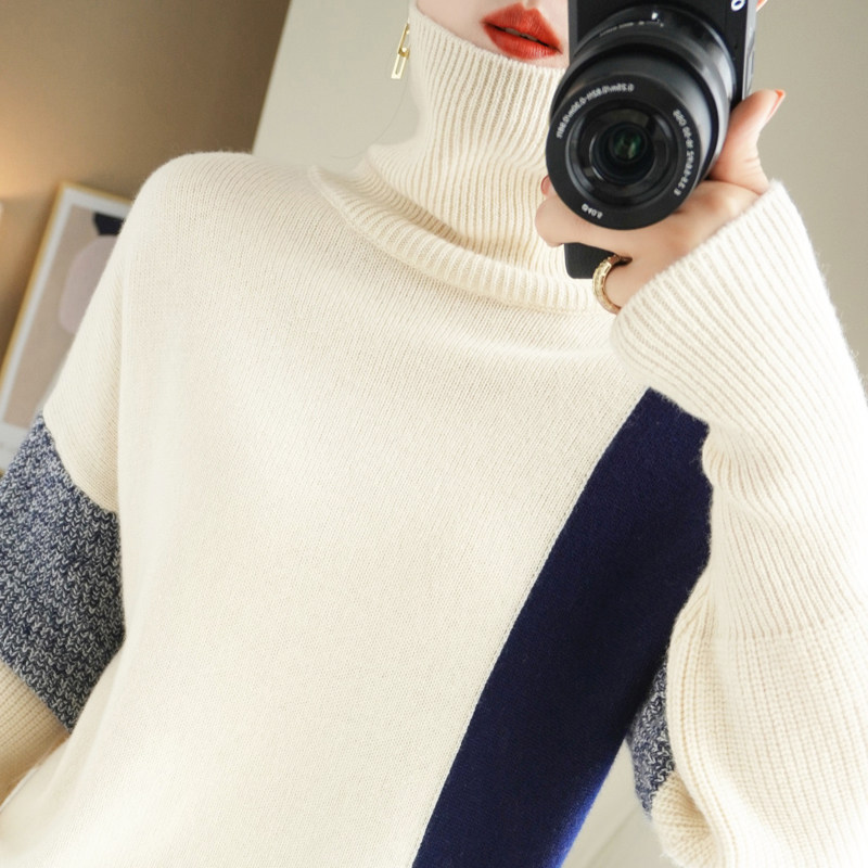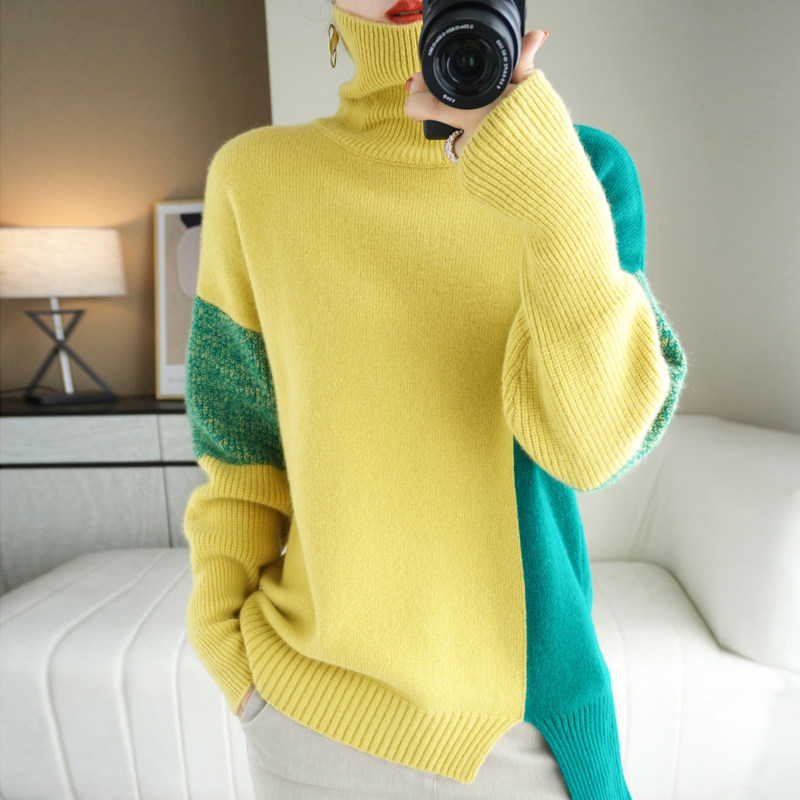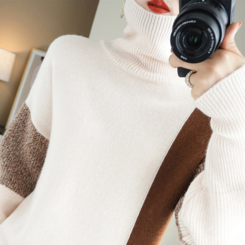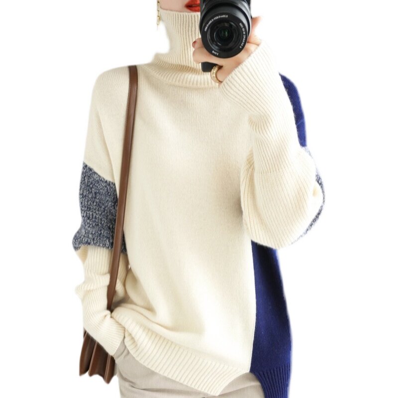 Демисезонный кашемировый трикотажный свитер, шерстяной лонгслив, свободный крой, увеличенная толщина