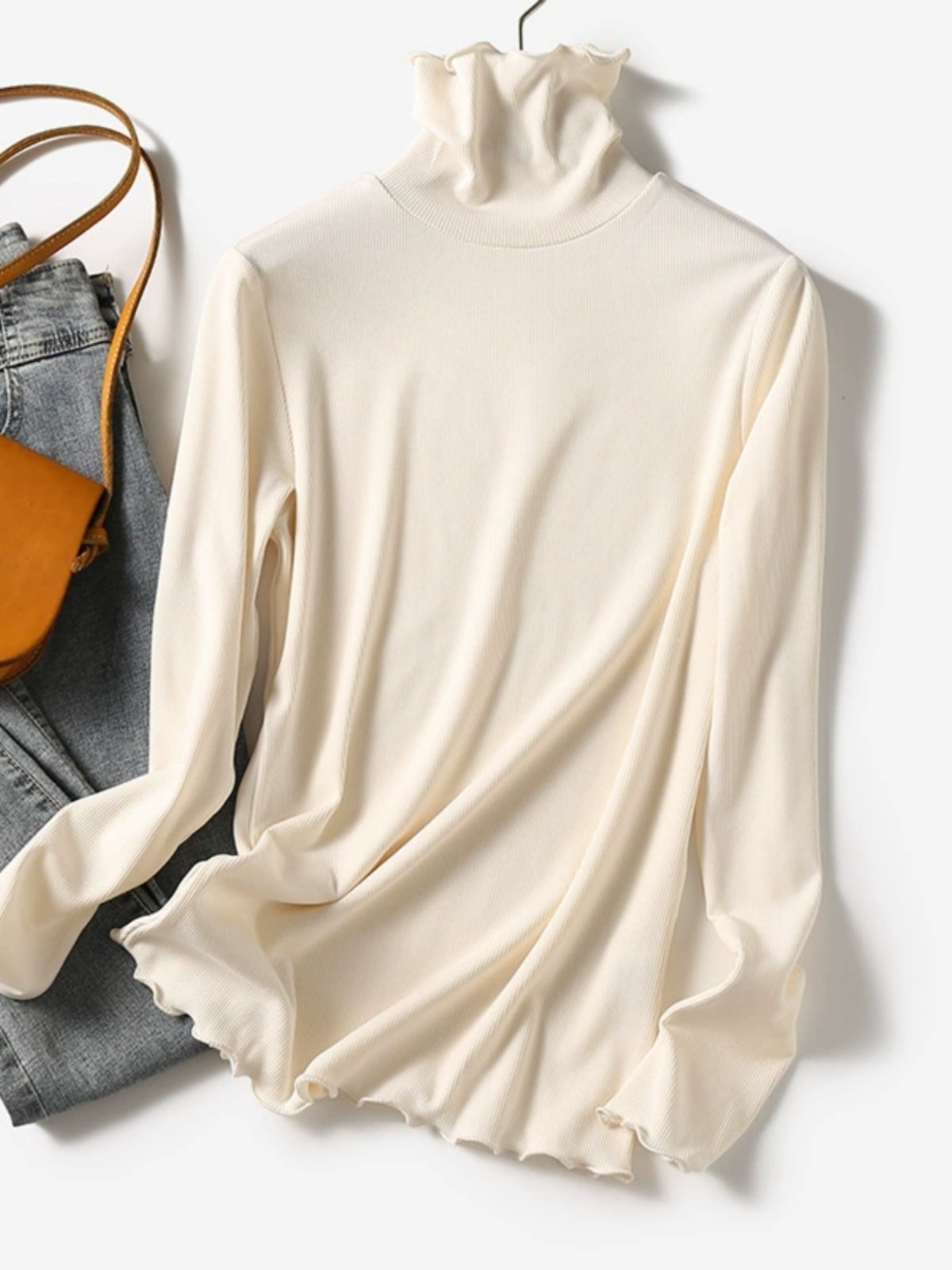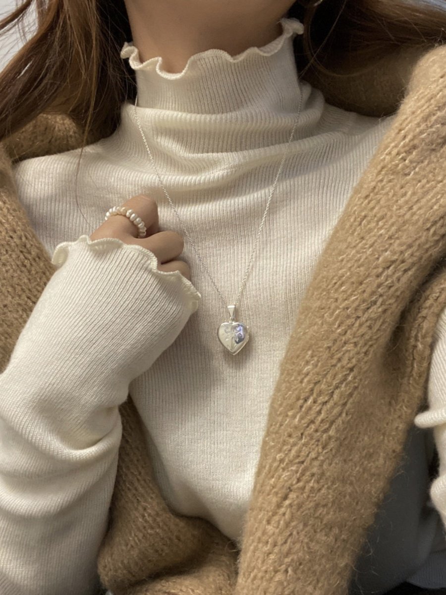 Модный черный ушной топ с высоким шером с тонкой воротничкой, осенью и зимой, а также бархатная белая вязаная базовая рубашка для женщин