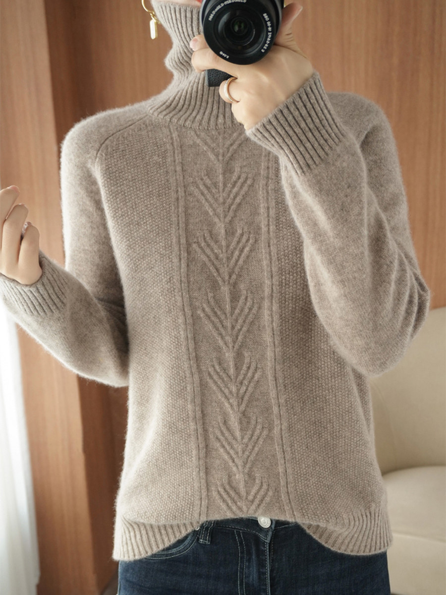 Кашемировый свитер для женщин 2023, осень и зима, новый стильный пуловер с высоким воротником, модный и универсальный свитер шерстяной вязки косой вязки