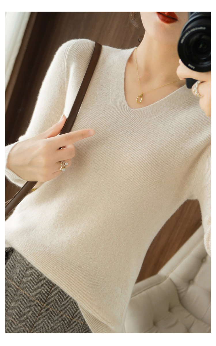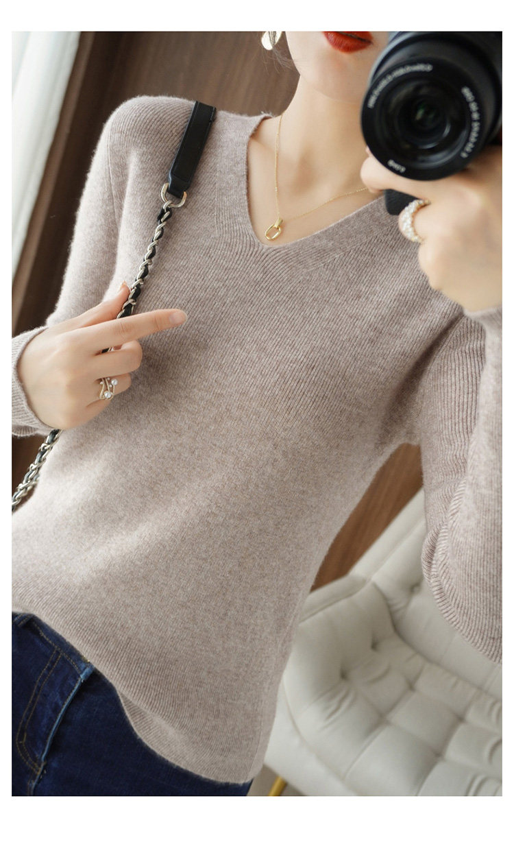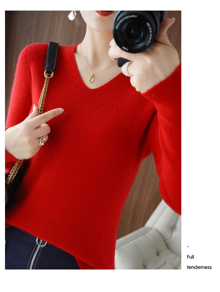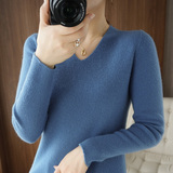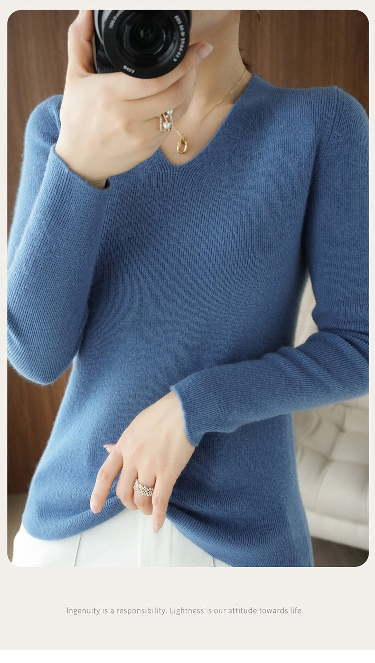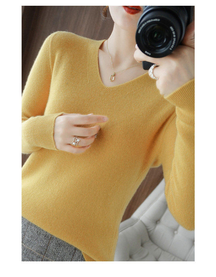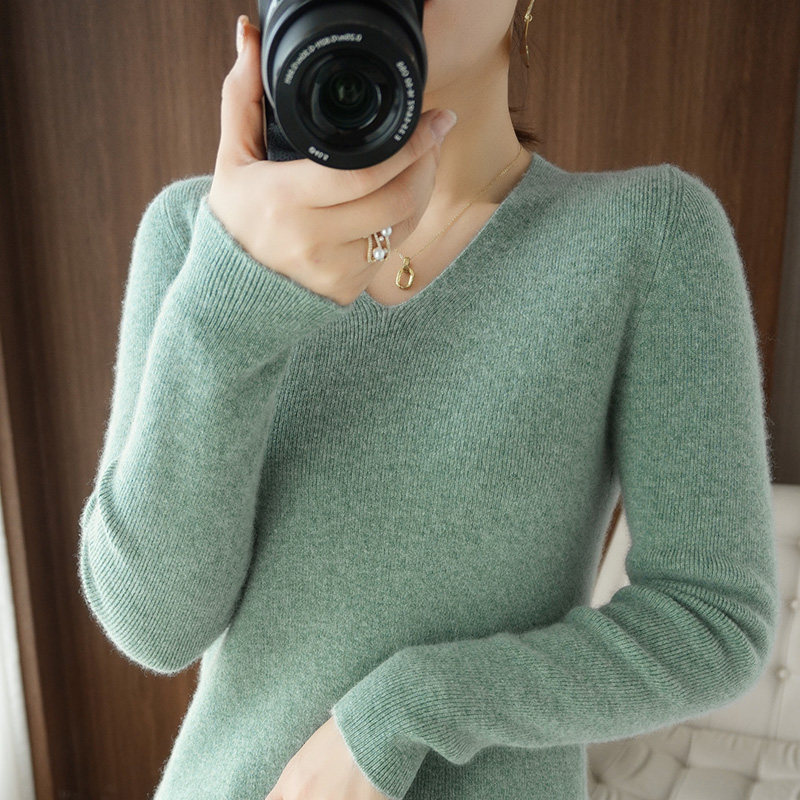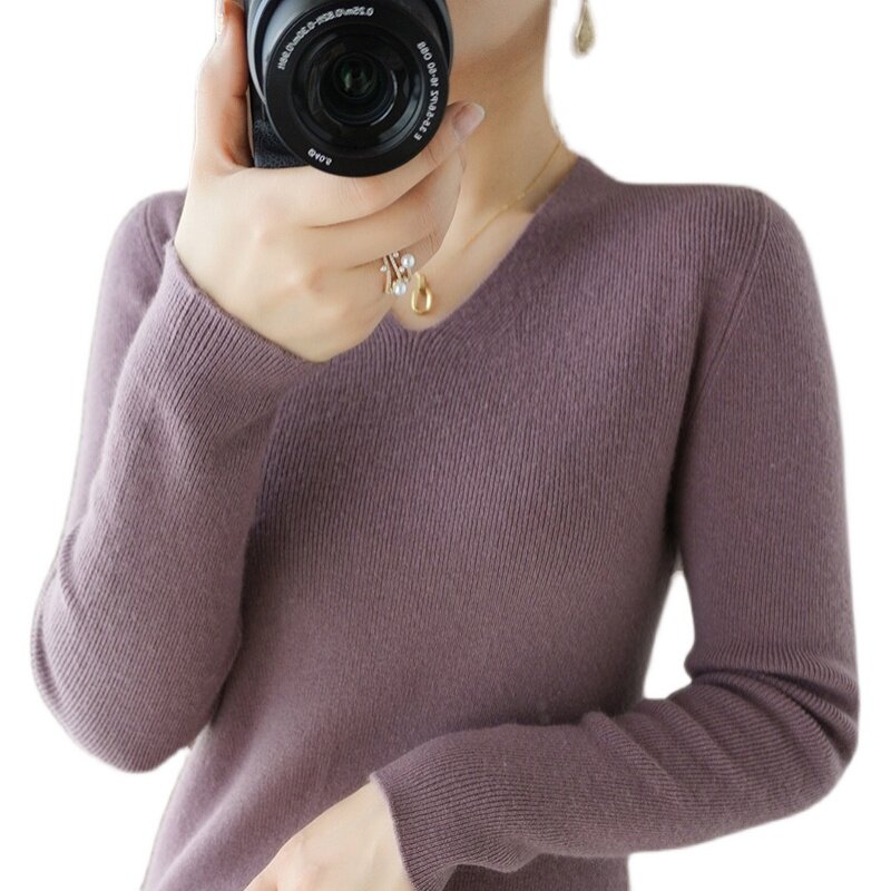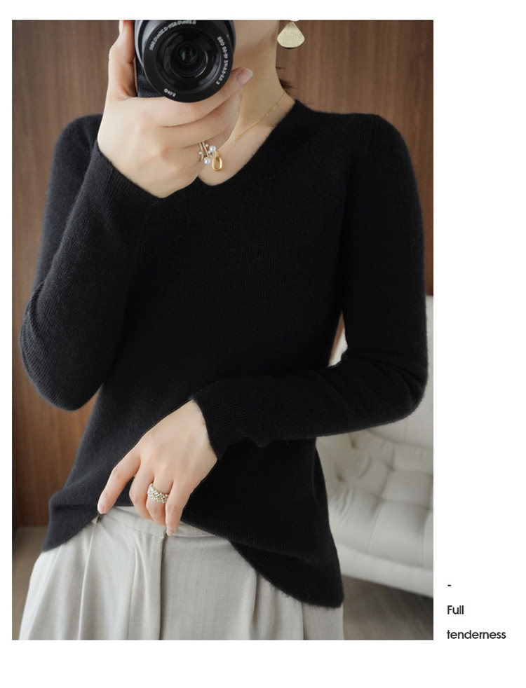 Черный базовый приятный телу шерстяной демисезонный свитер, трикотажный лонгслив, V-образный вырез, облегающий крой, 2021 года