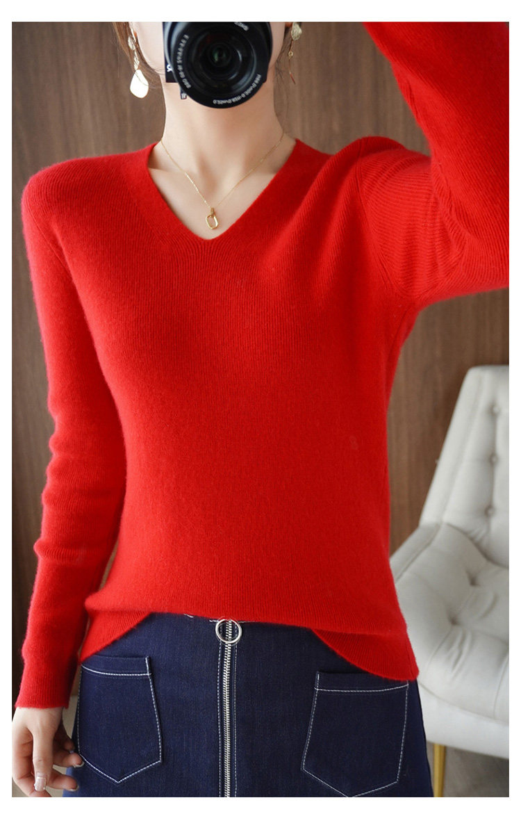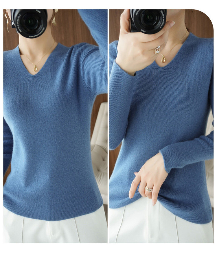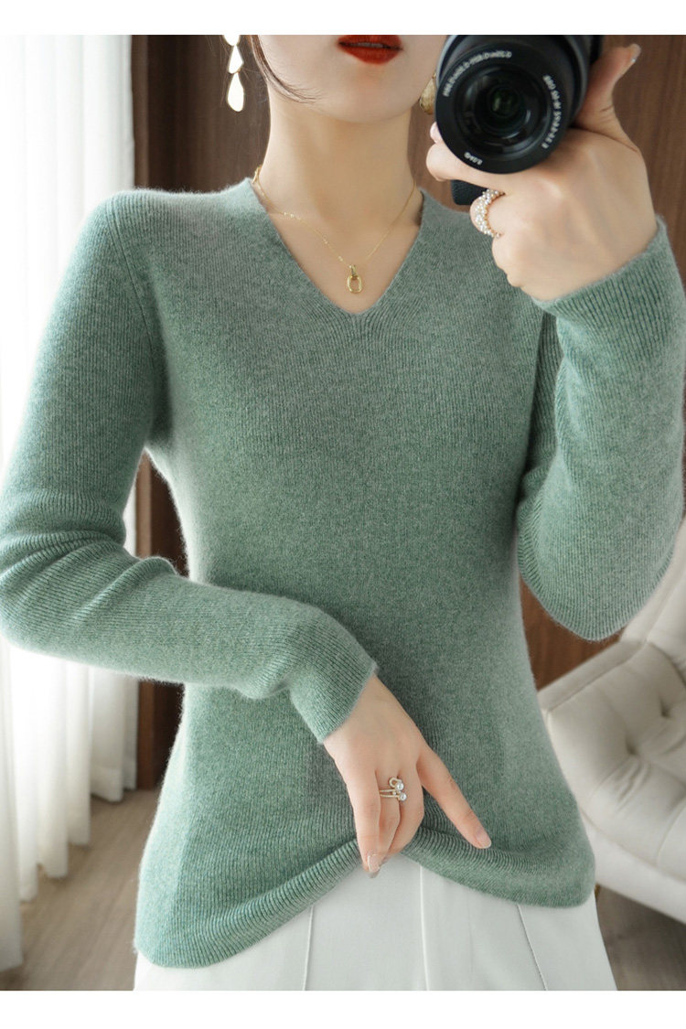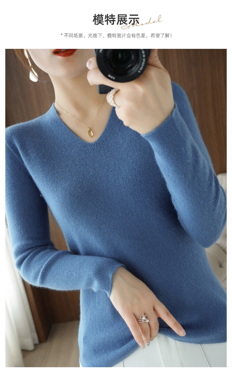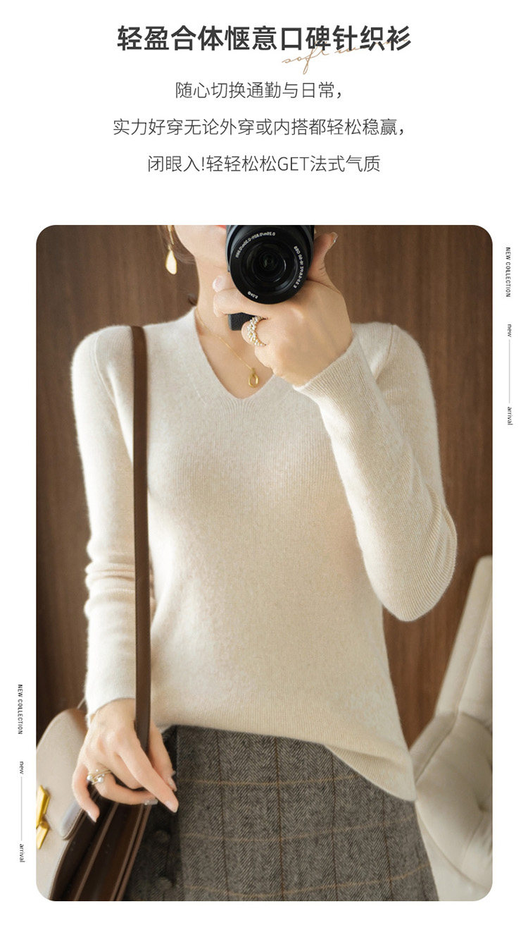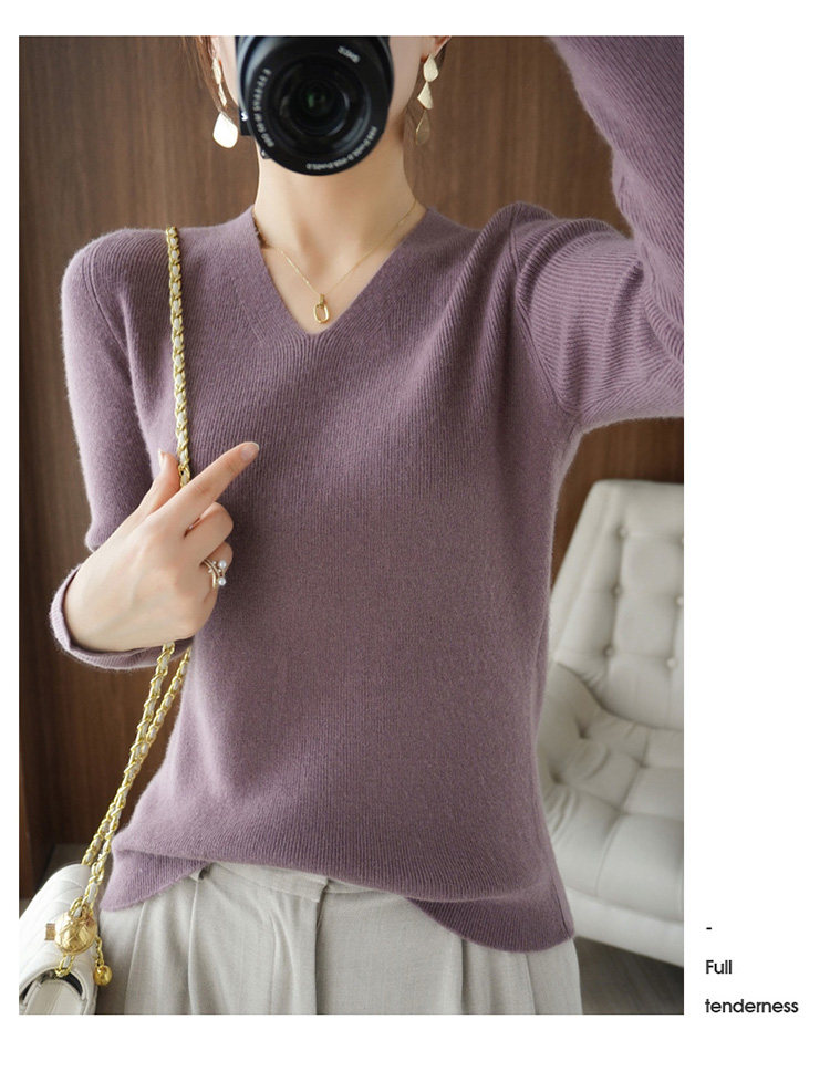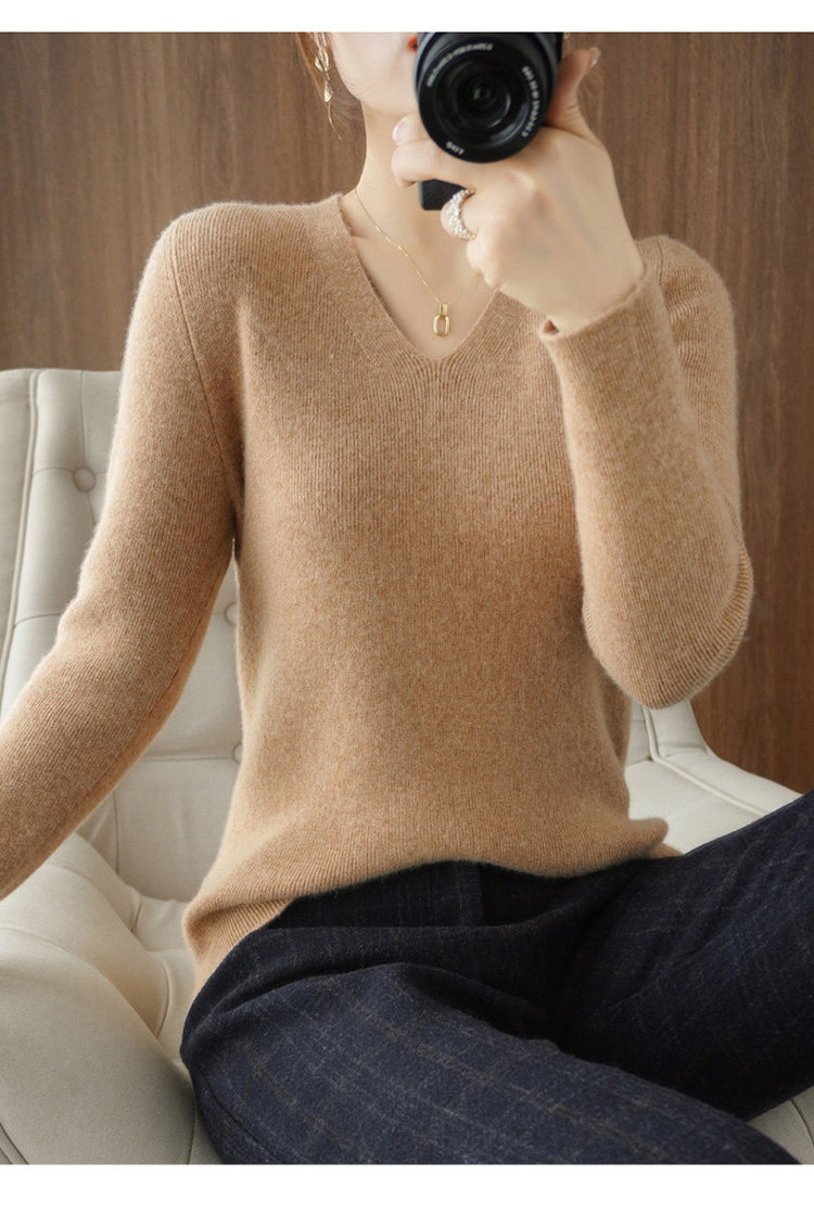 Черный базовый приятный телу шерстяной демисезонный свитер, трикотажный лонгслив, V-образный вырез, облегающий крой, 2021 года