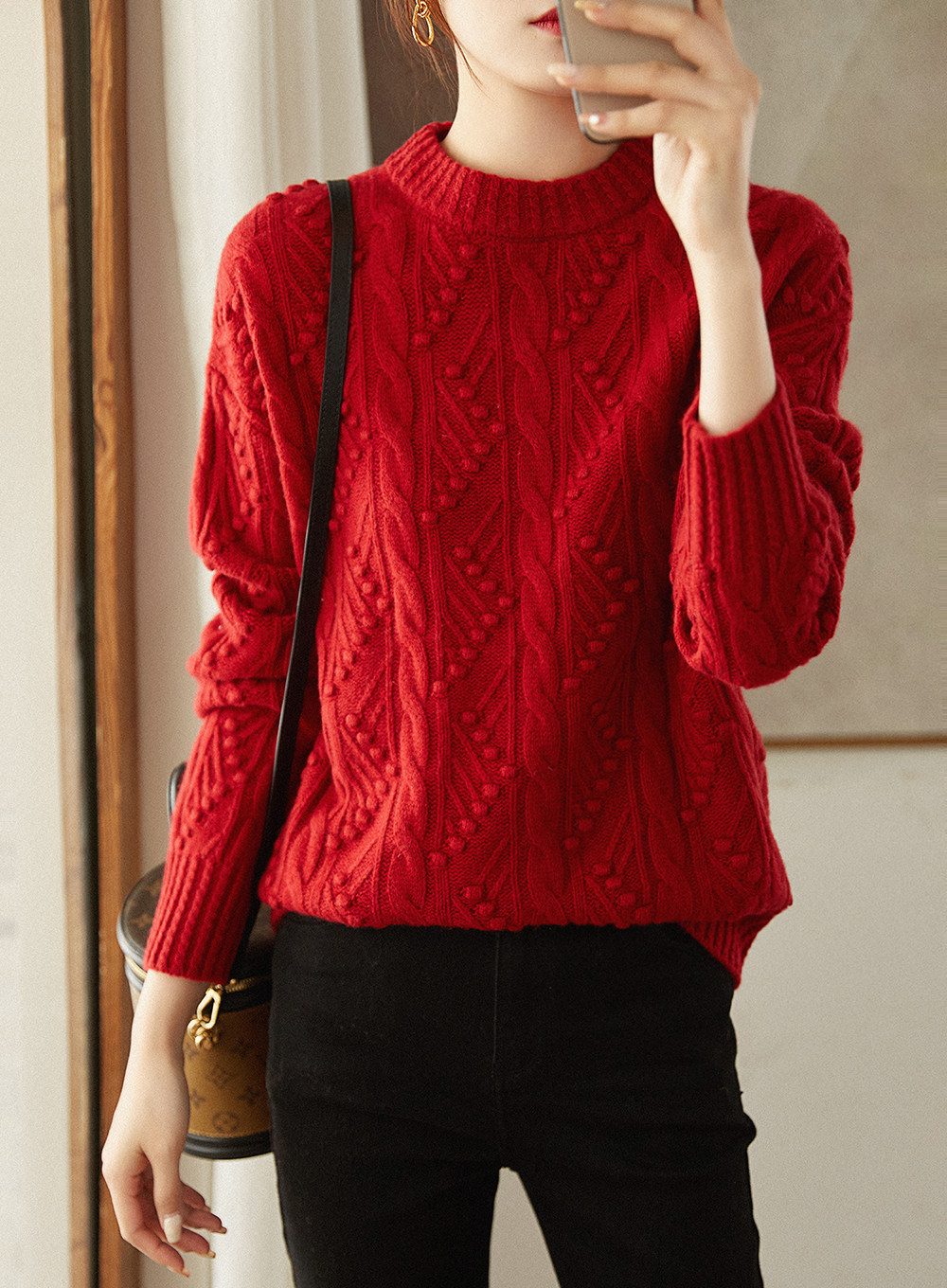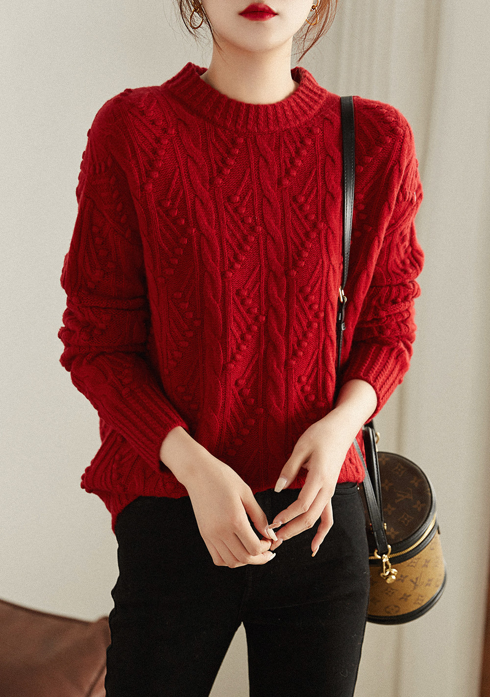 Теплый, мягкий, прокат, легкий, модный ретро -сенсорный скрученный круглый шерстяной вязаный свитер Mlzy53464