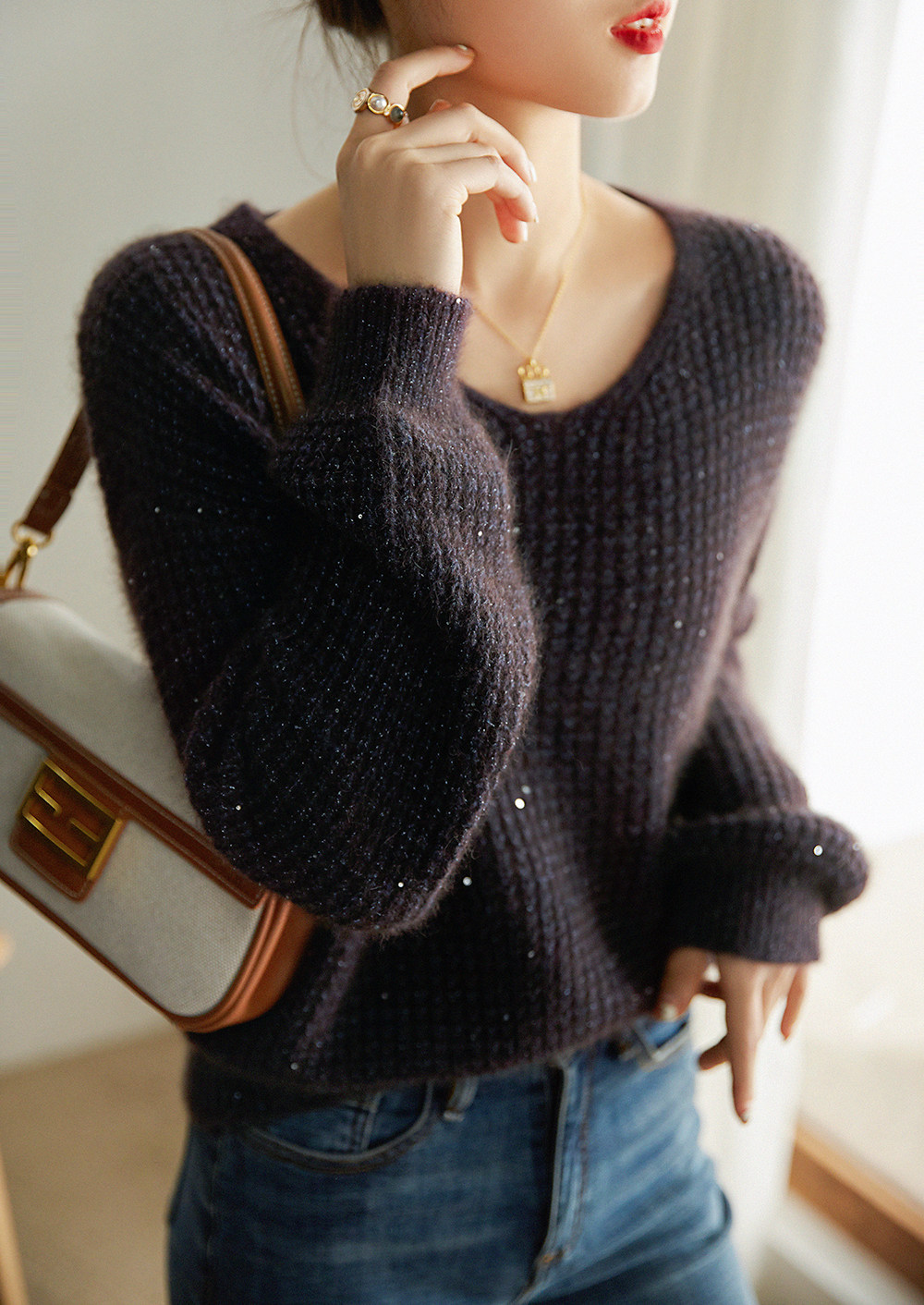 [Сломанный код Спайк,] Плед из Wastele, блестки Lazy v -neck Compelive Sweater