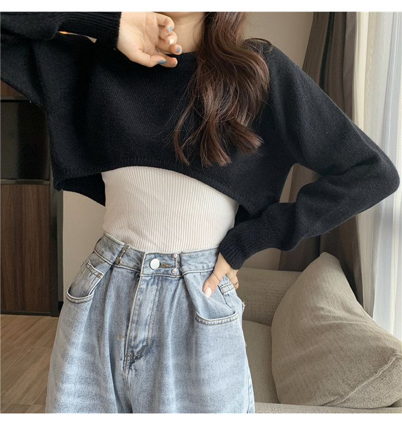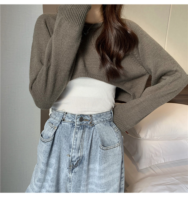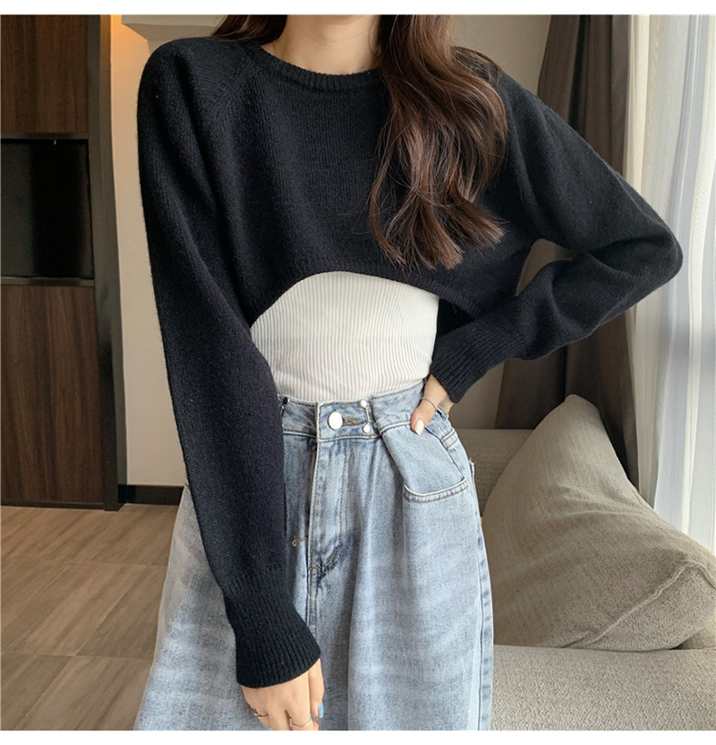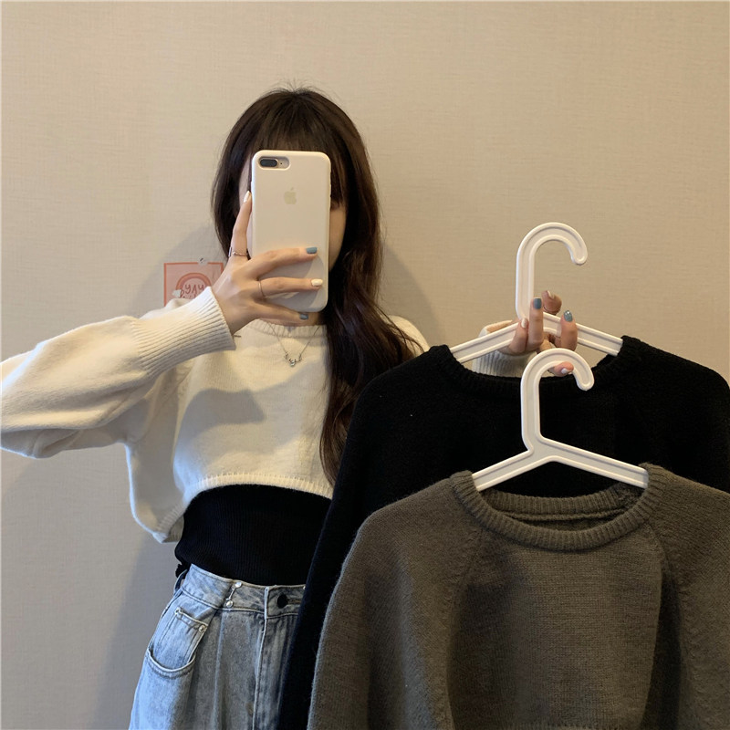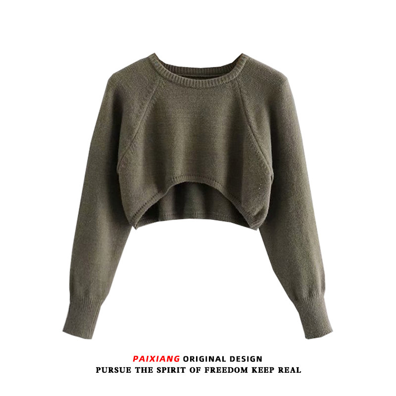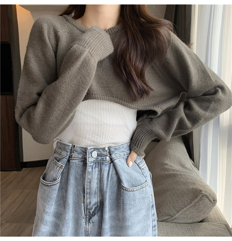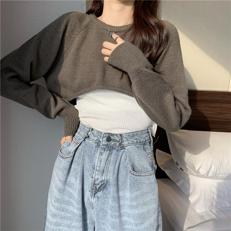 Короткий шерстяной демисезонный свитер, лонгслив с круглым воротником, 2024 года, оверсайз