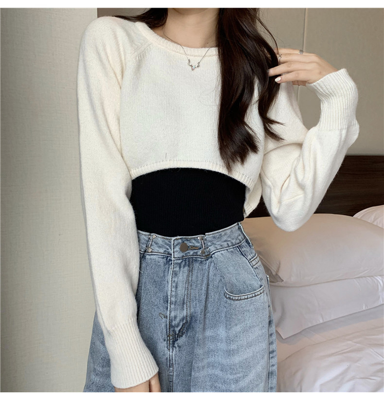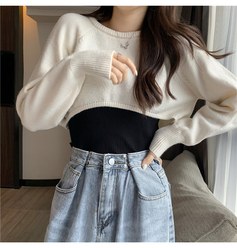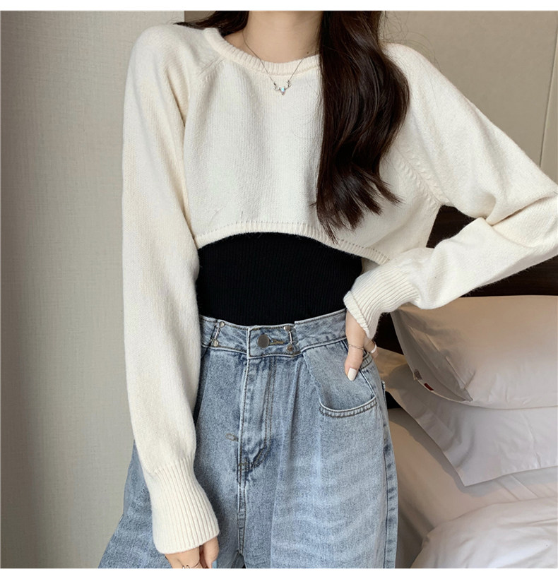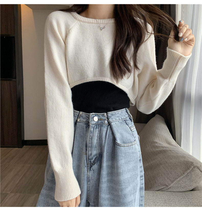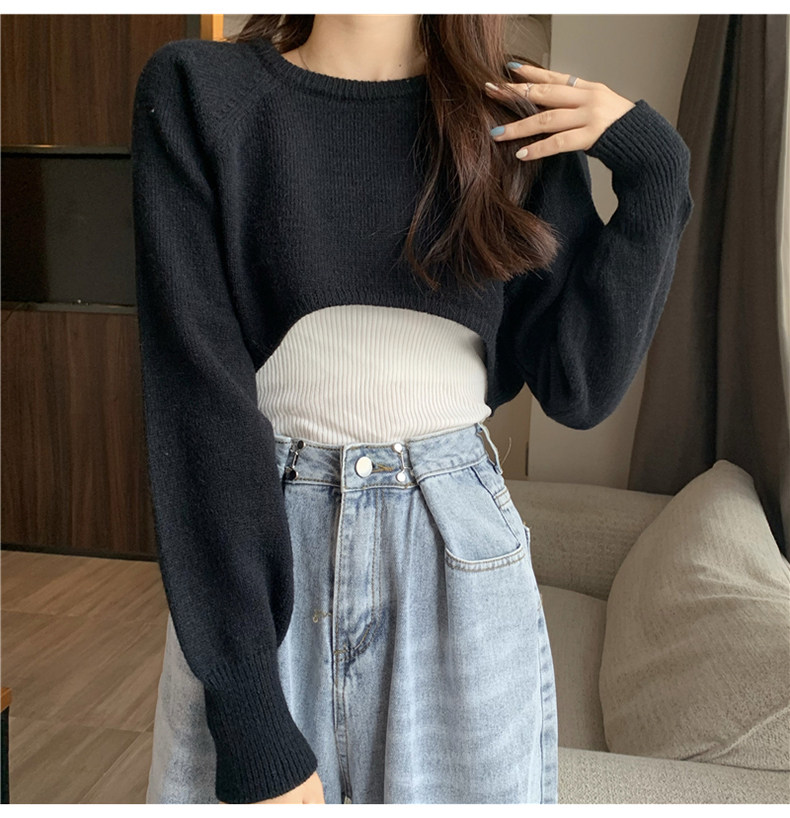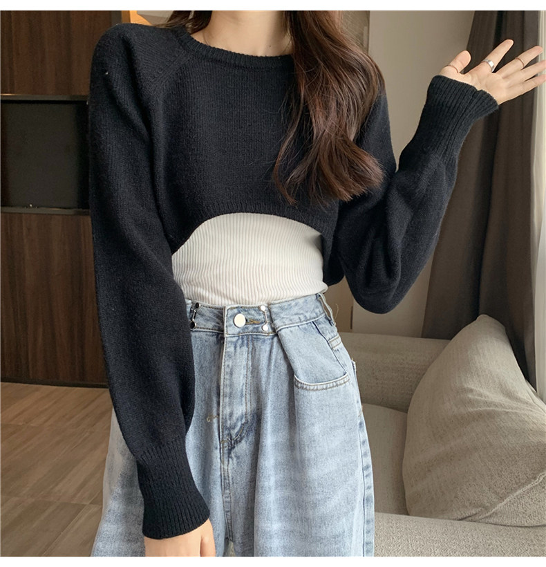 Короткий шерстяной демисезонный свитер, лонгслив с круглым воротником, 2024 года, оверсайз