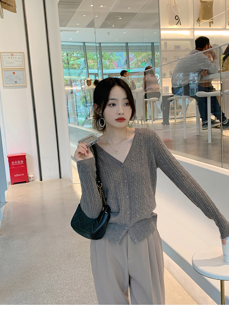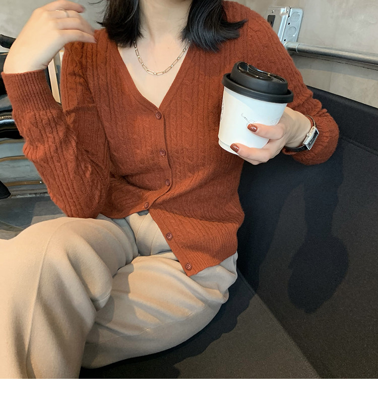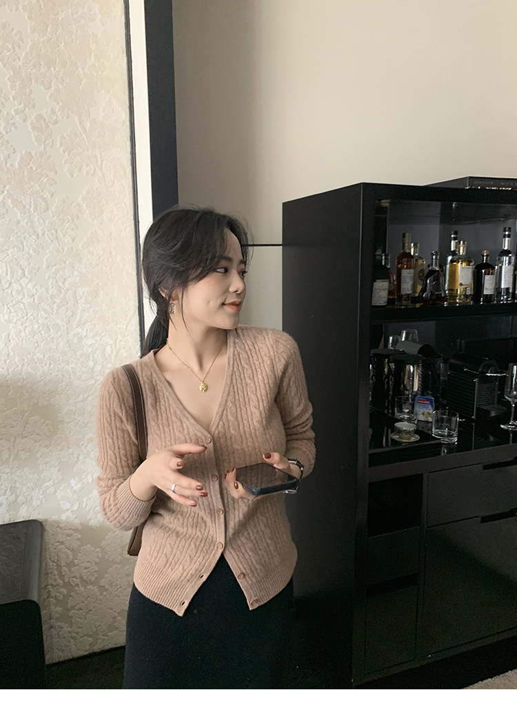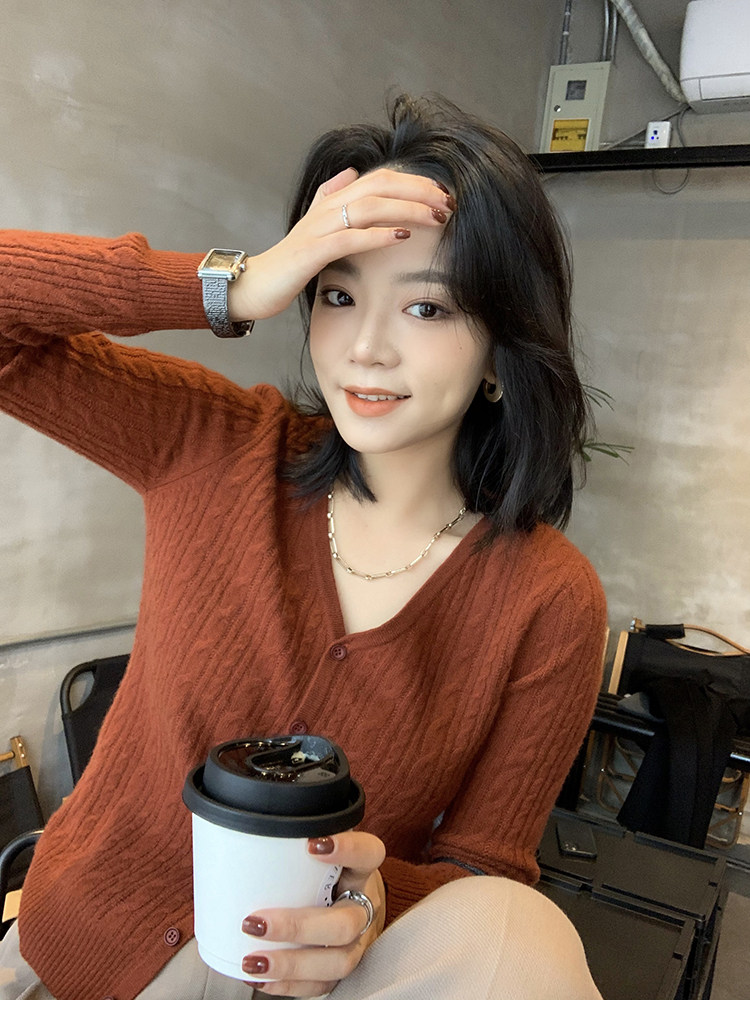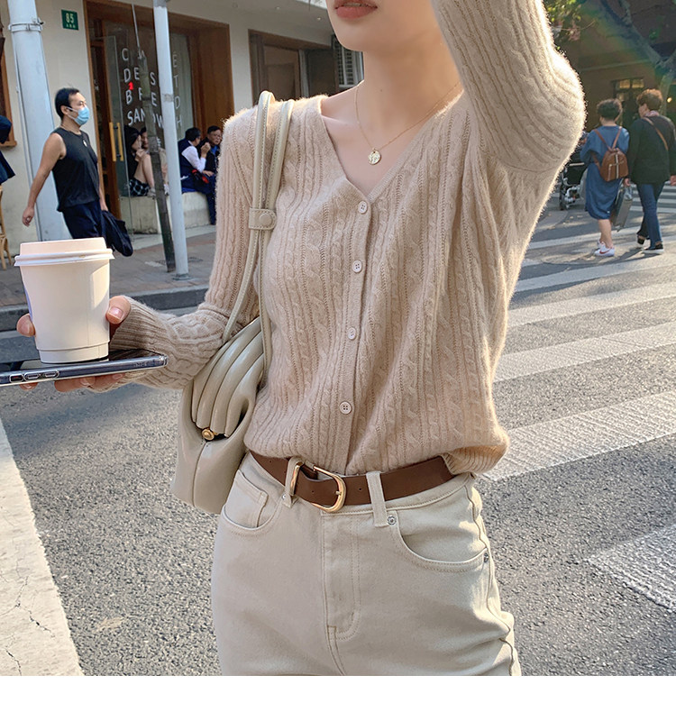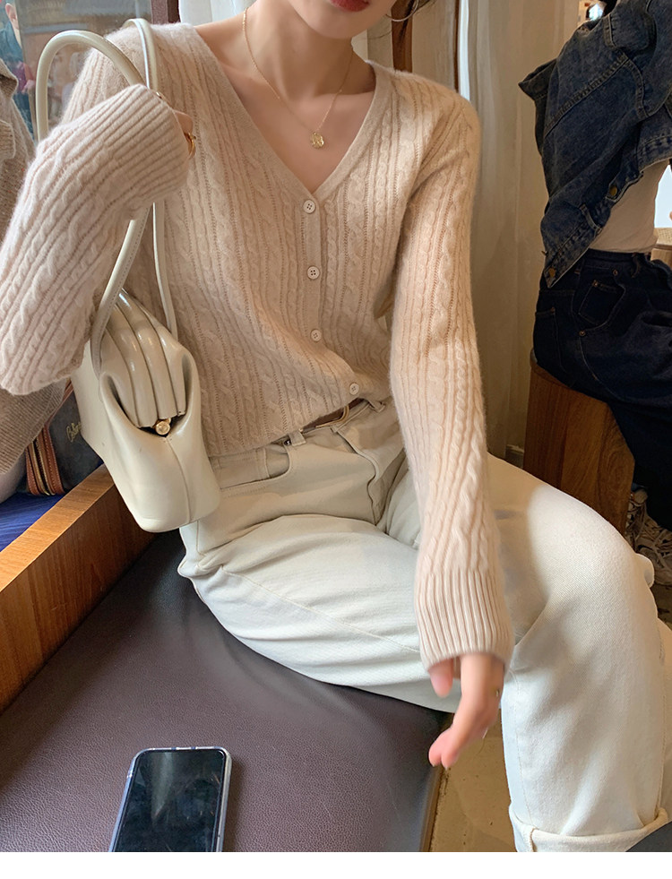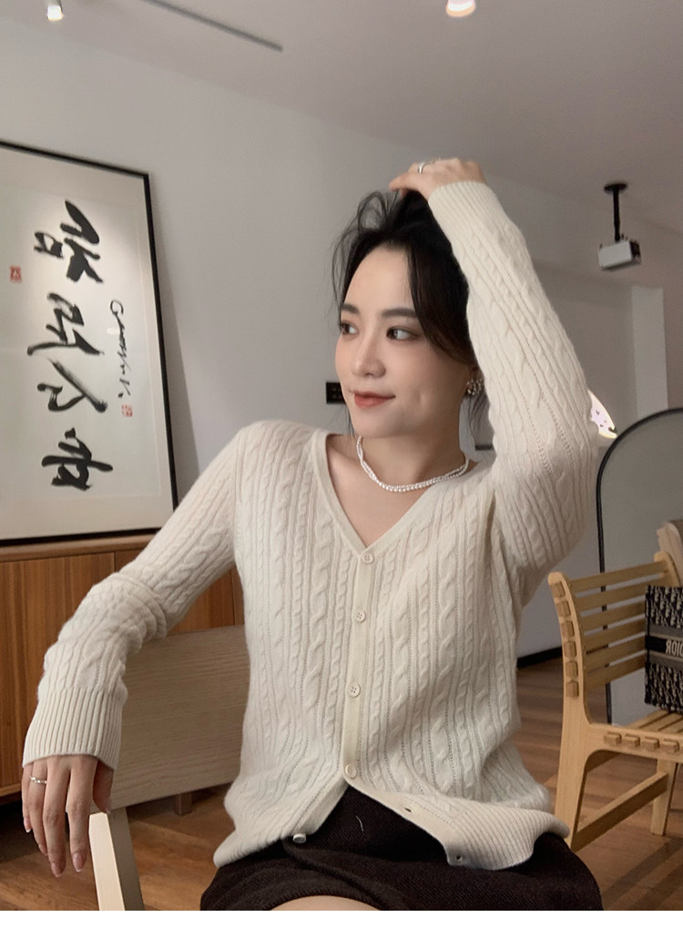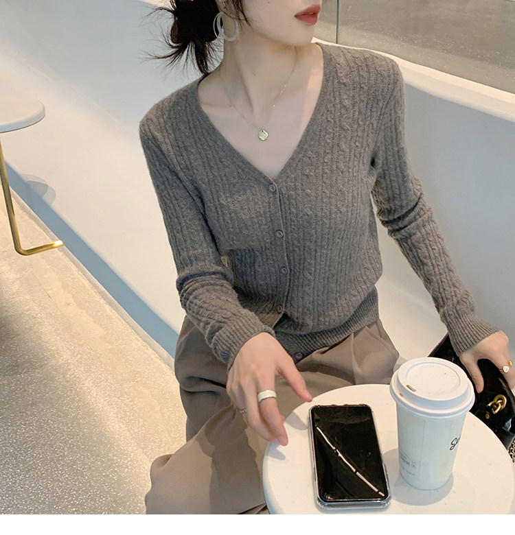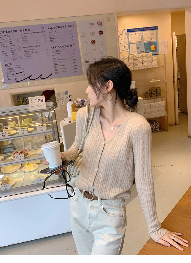 Кашемировый демисезонный кардиган, трикотажный свитер, куртка, V-образный вырез, 0669v