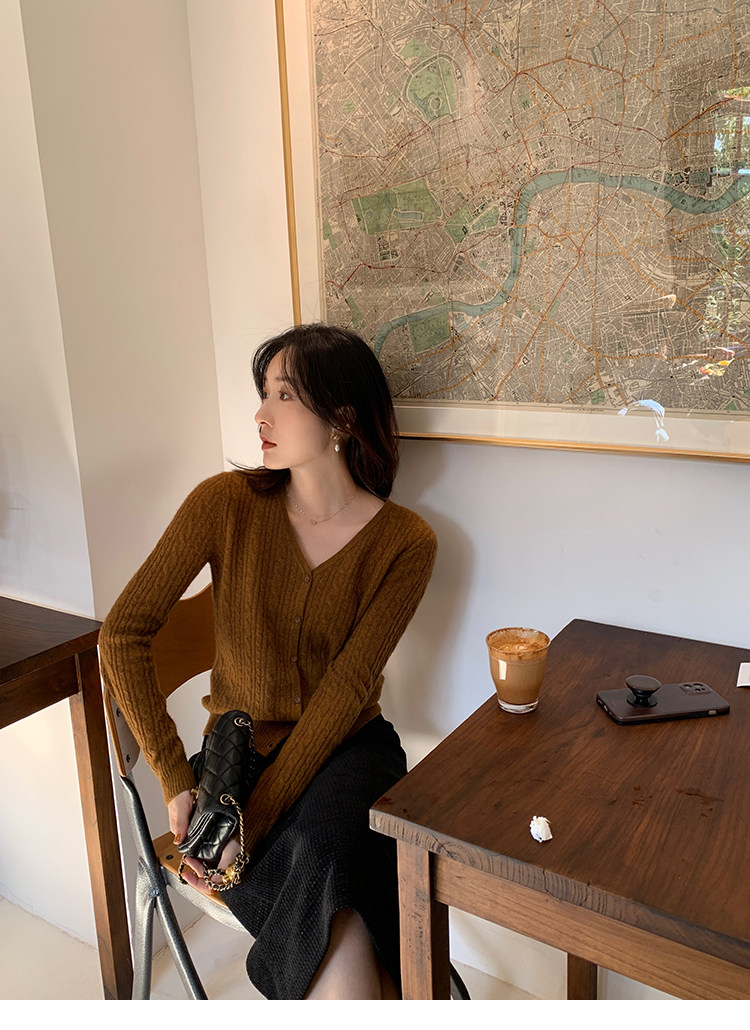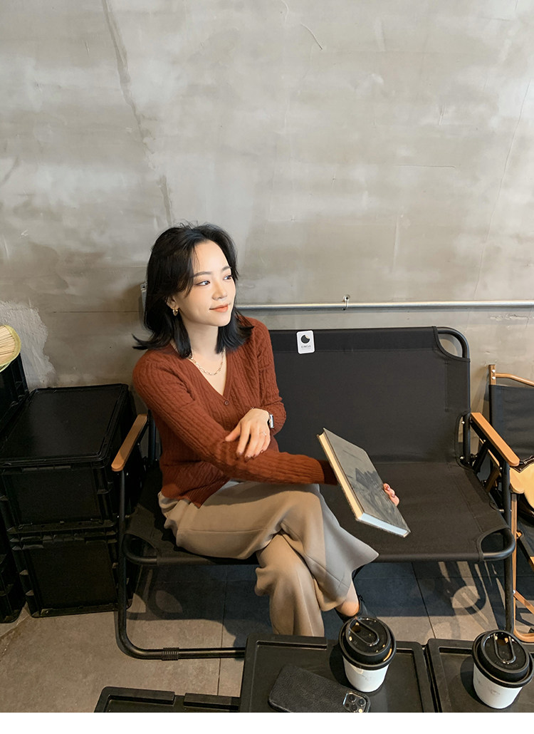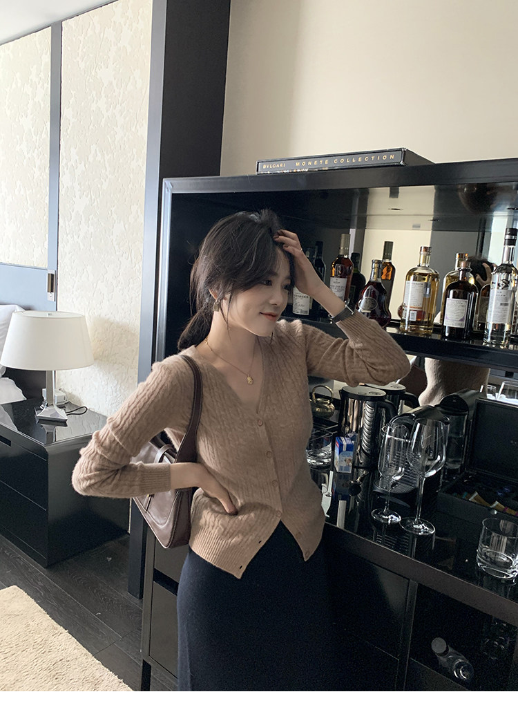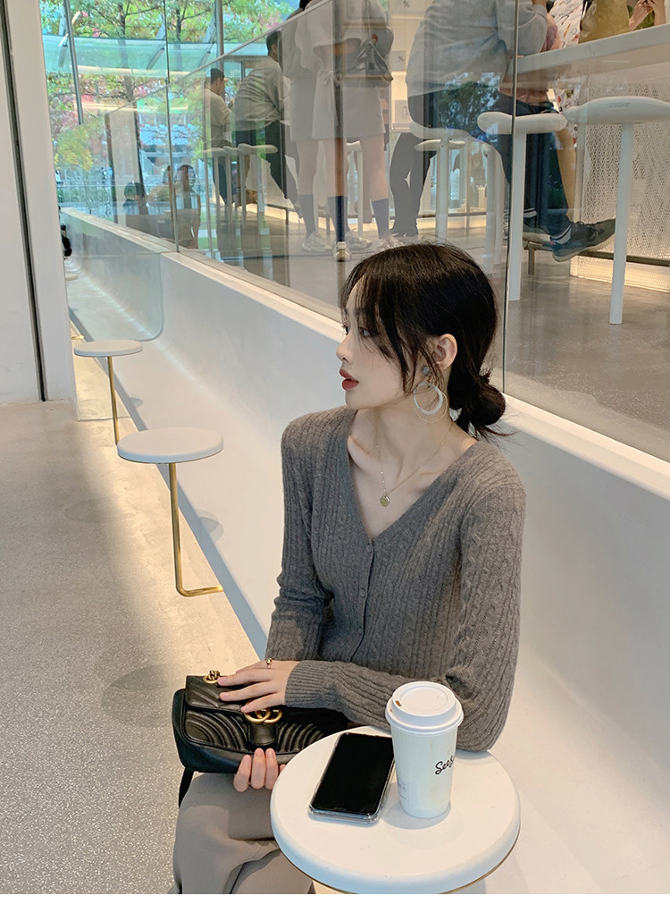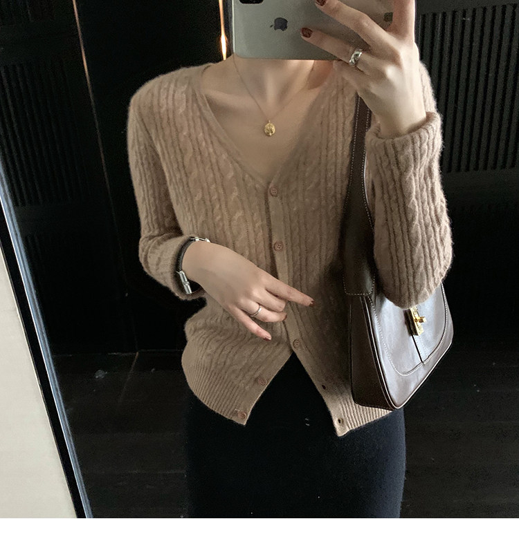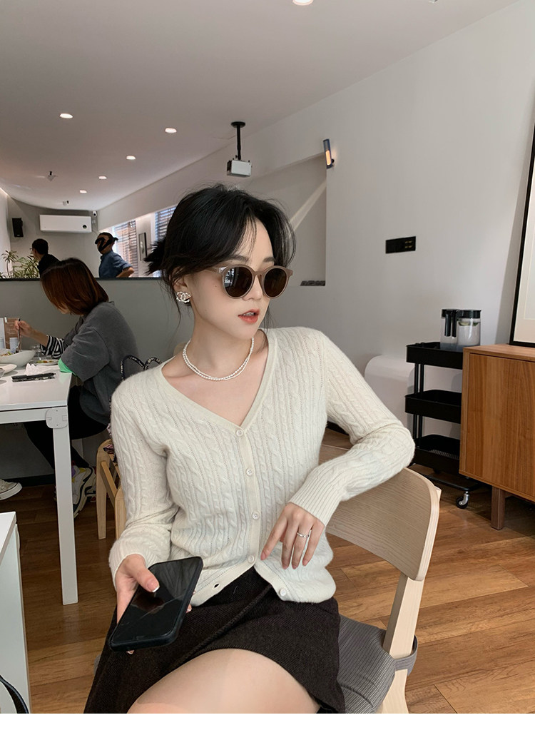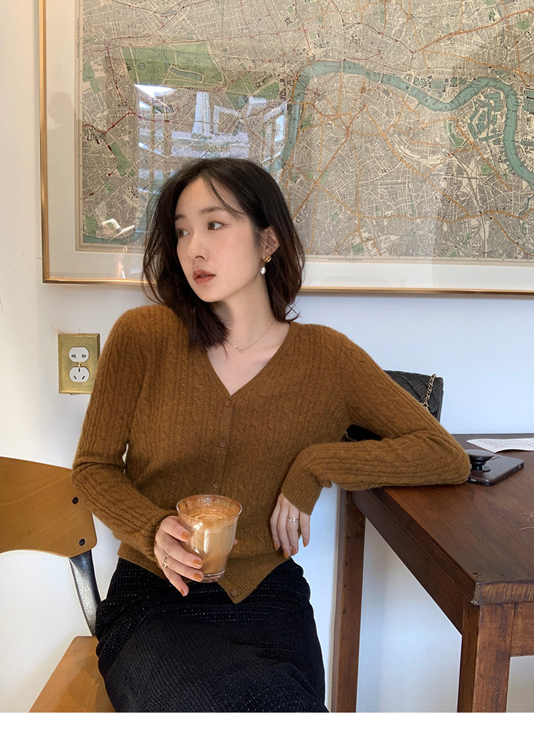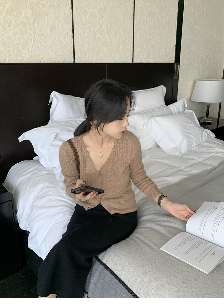 Кашемировый демисезонный кардиган, трикотажный свитер, куртка, V-образный вырез, 0669v