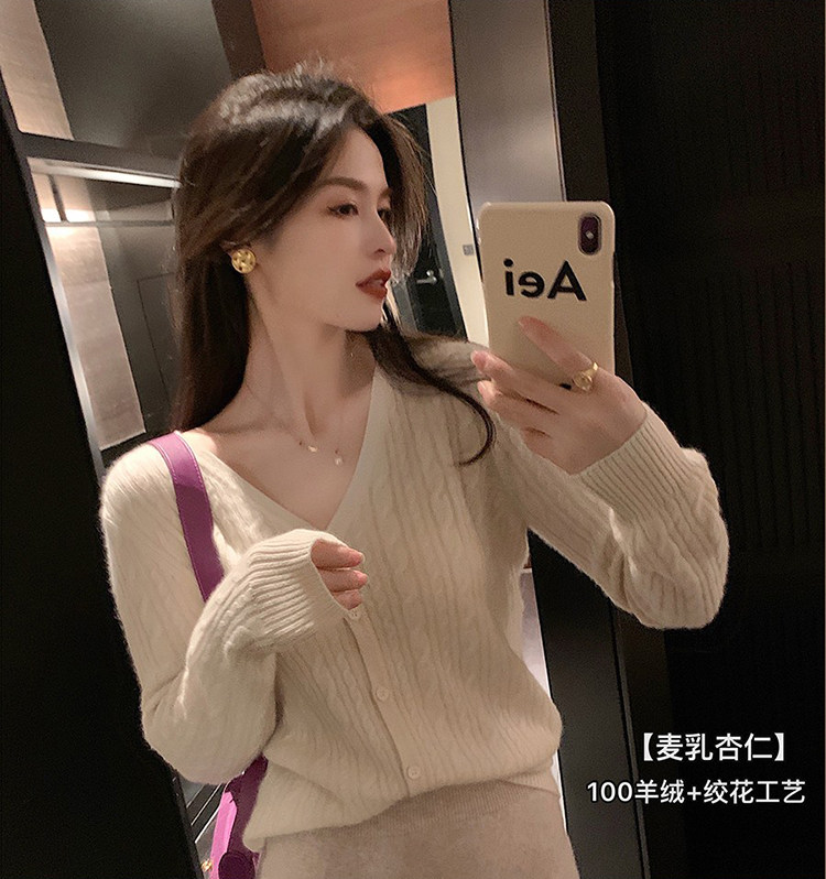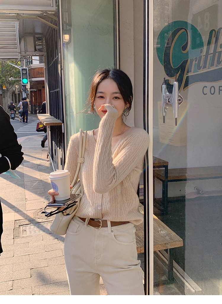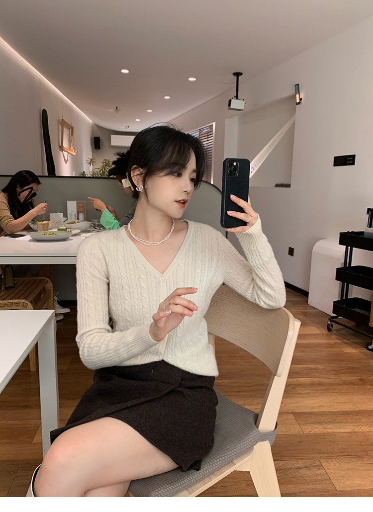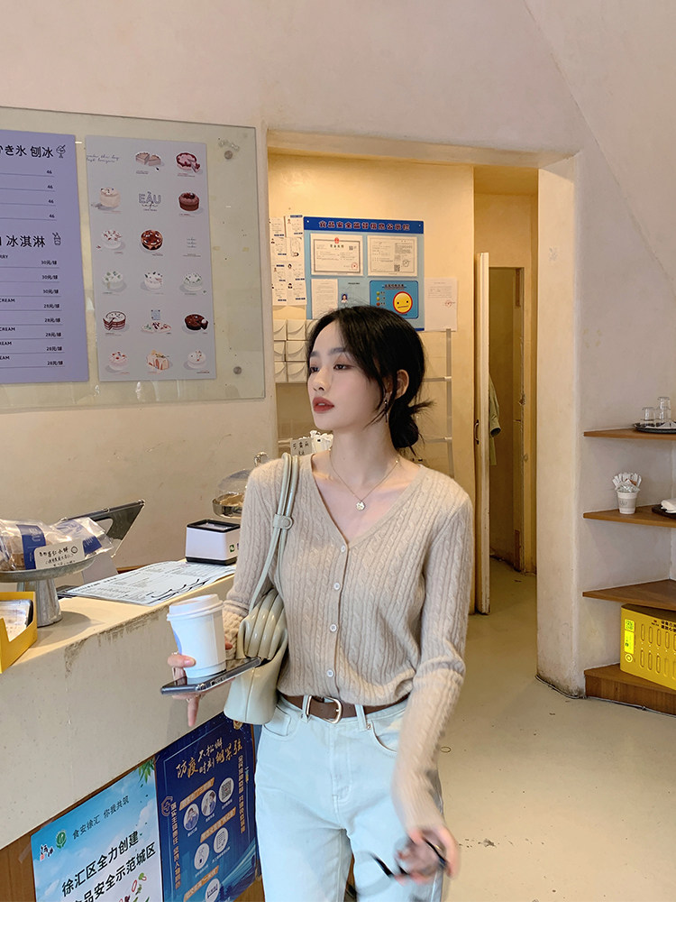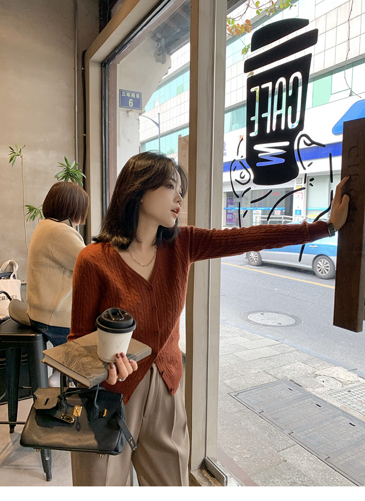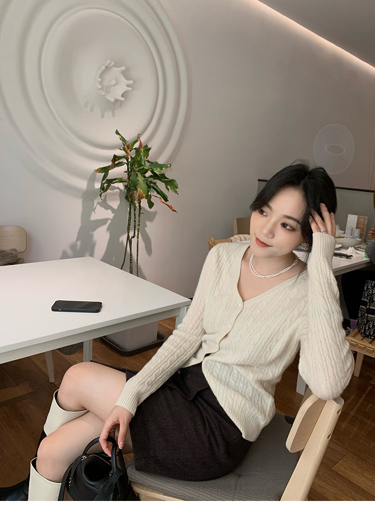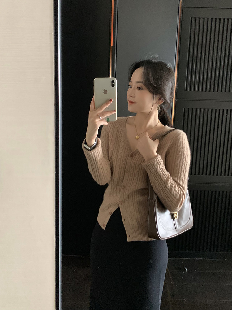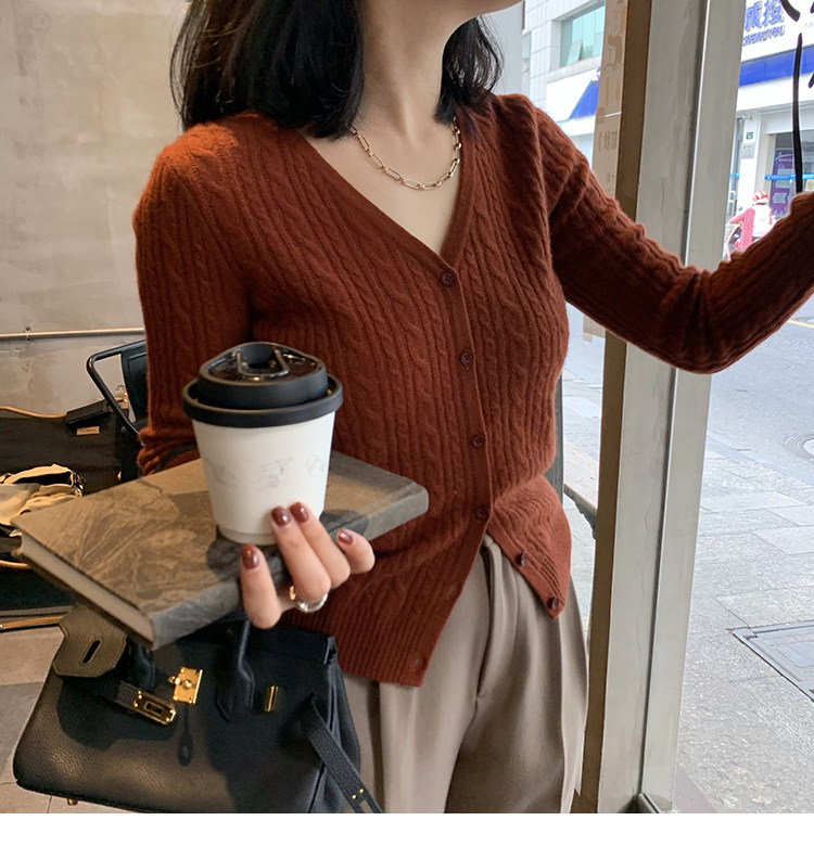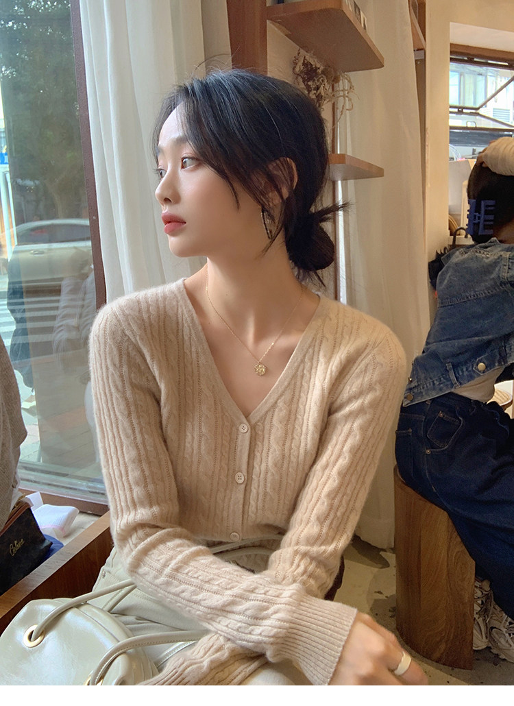 Кашемировый демисезонный кардиган, трикотажный свитер, куртка, V-образный вырез, 0669v