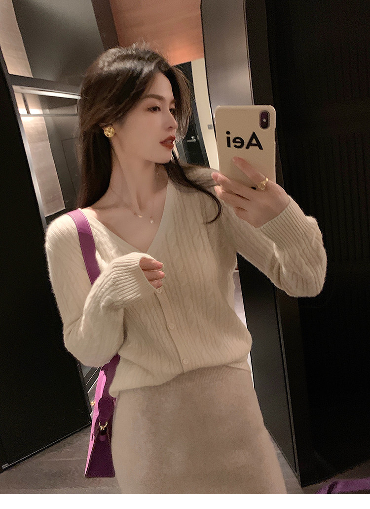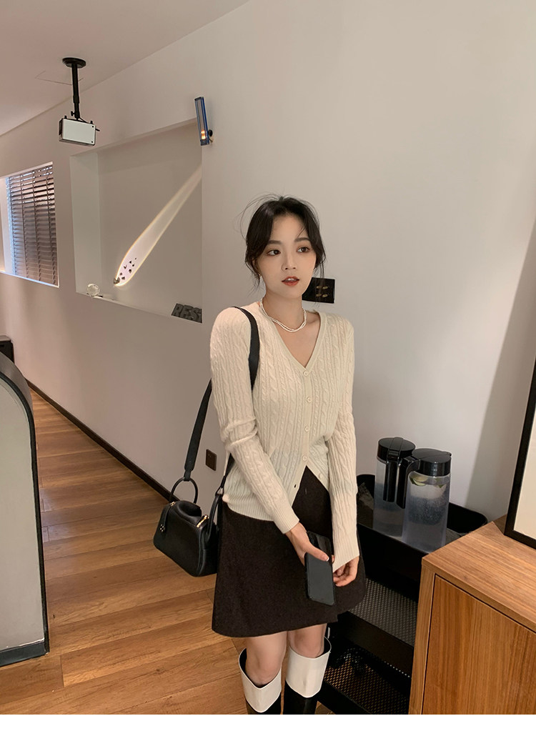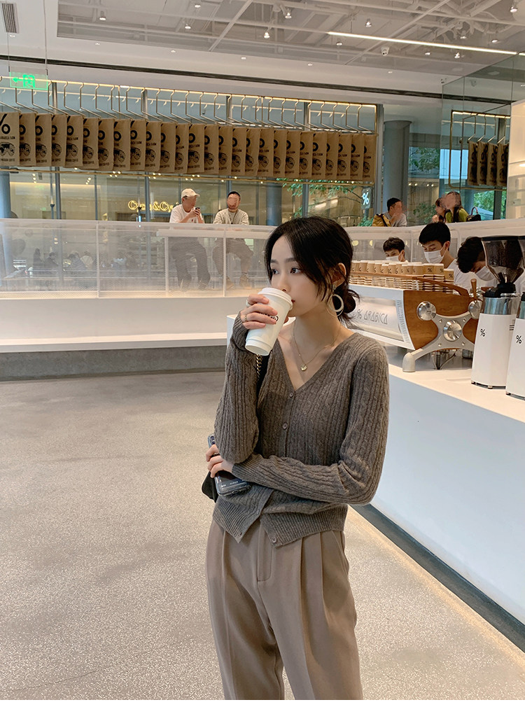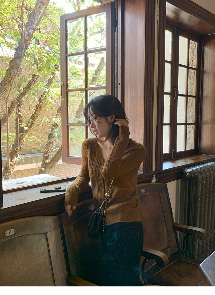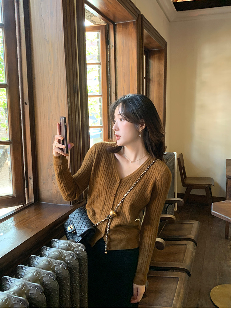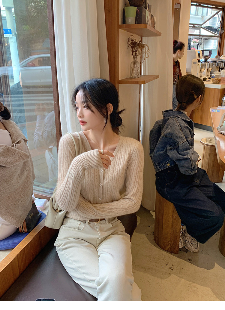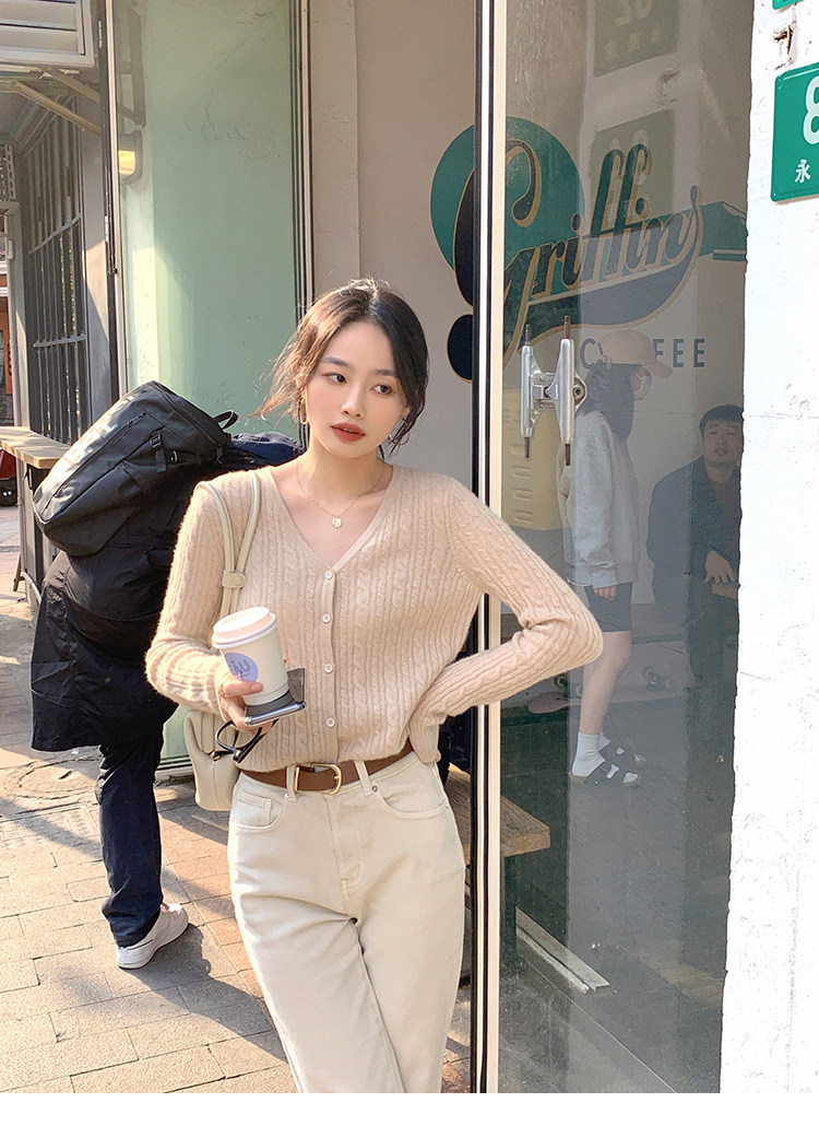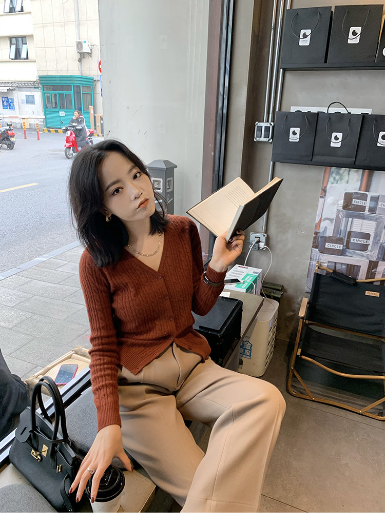 Кашемировый демисезонный кардиган, трикотажный свитер, куртка, V-образный вырез, 0669v