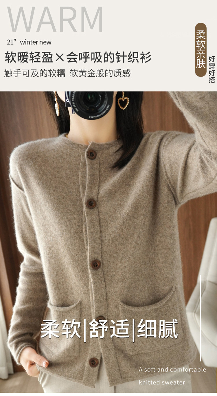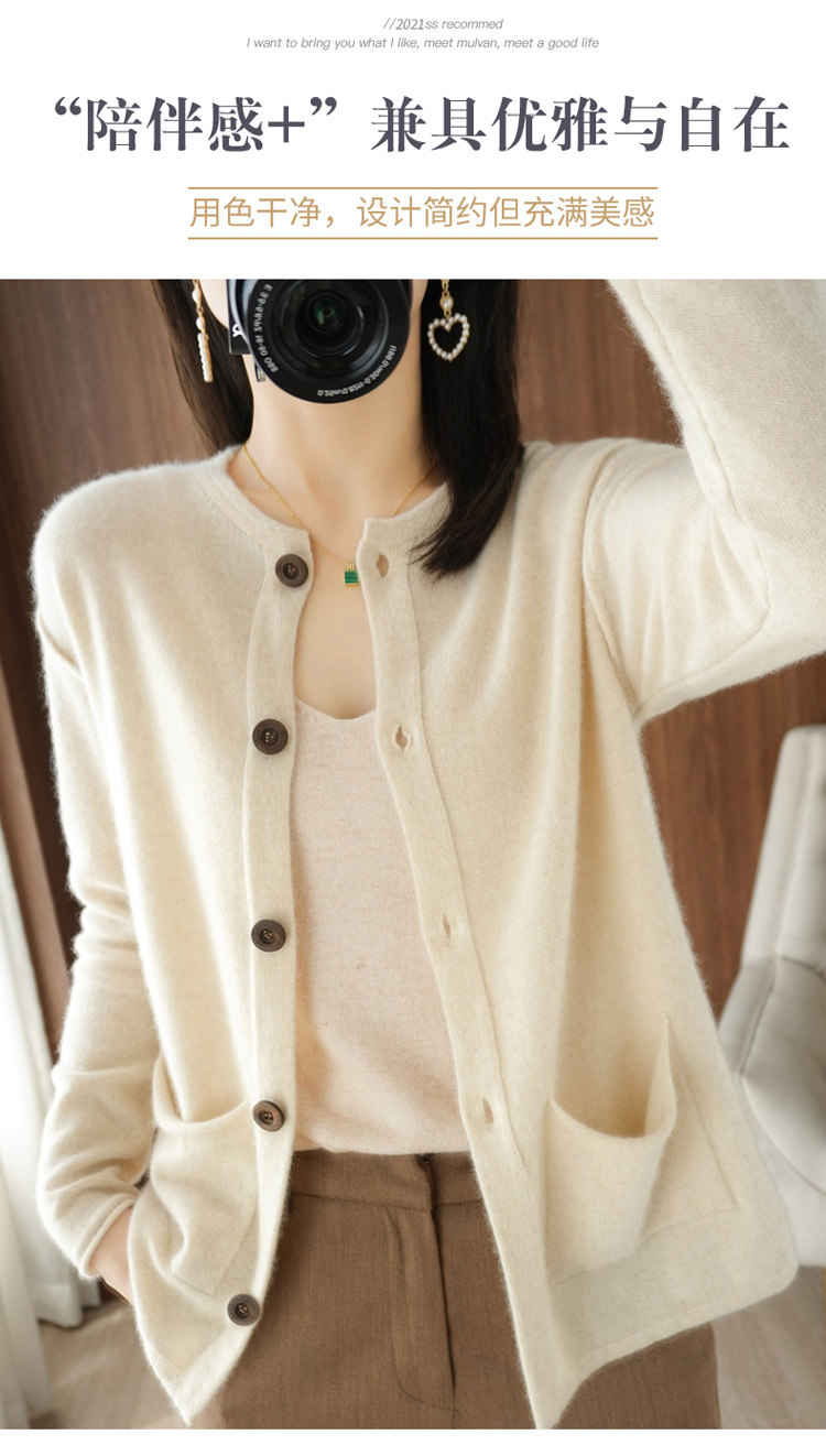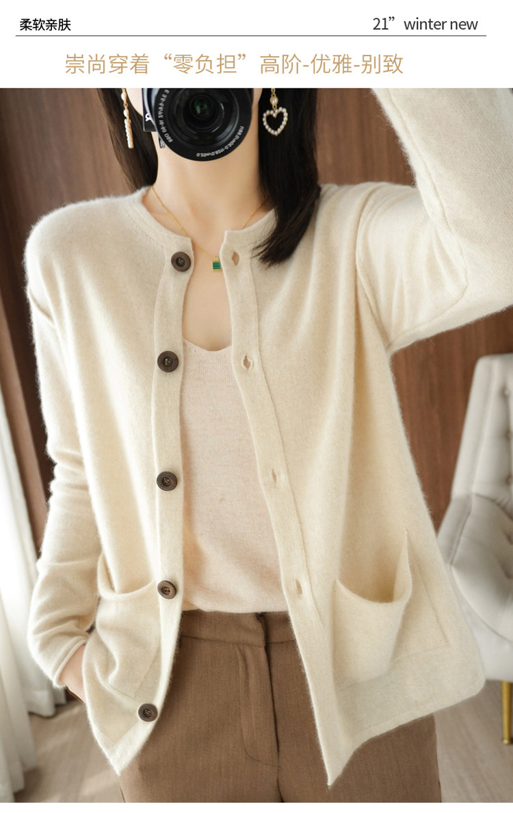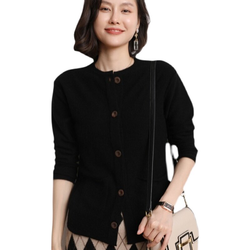 Кашемировый кардиган с круглым воротником, демисезонный трикотажный лонгслив, шерстяной базовый свитер, коллекция 2021, оверсайз