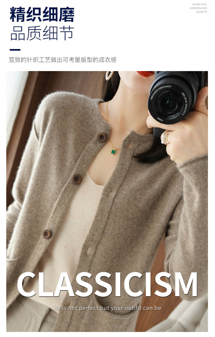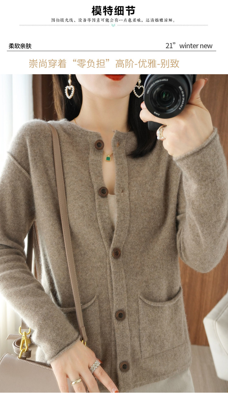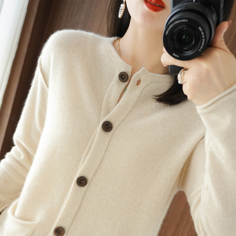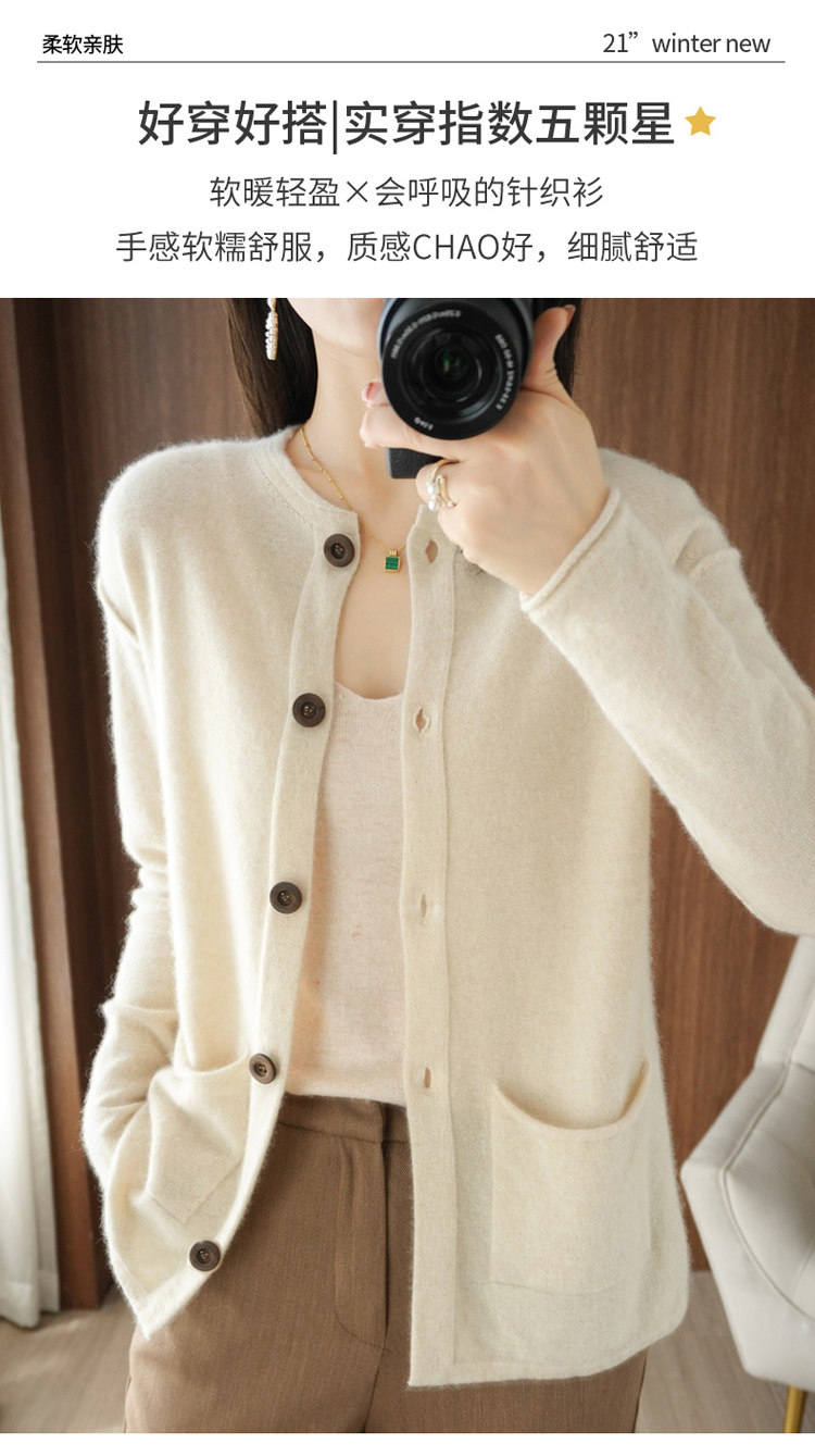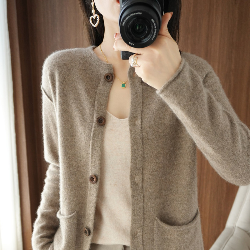 Кашемировый кардиган с круглым воротником, демисезонный трикотажный лонгслив, шерстяной базовый свитер, коллекция 2021, оверсайз