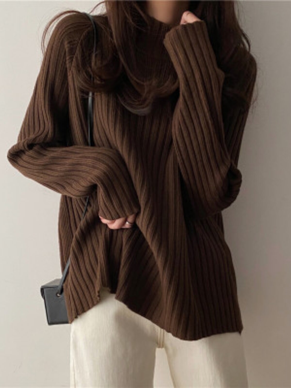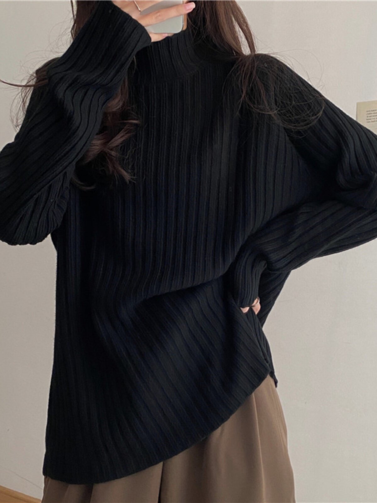Демисезонный свитер, базовое приятное телу трикотажное белье для повседневной носки, большой размер, высокий воротник, свободный крой, по фигуре