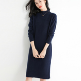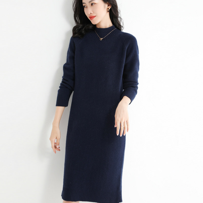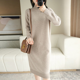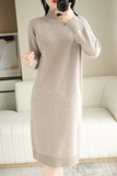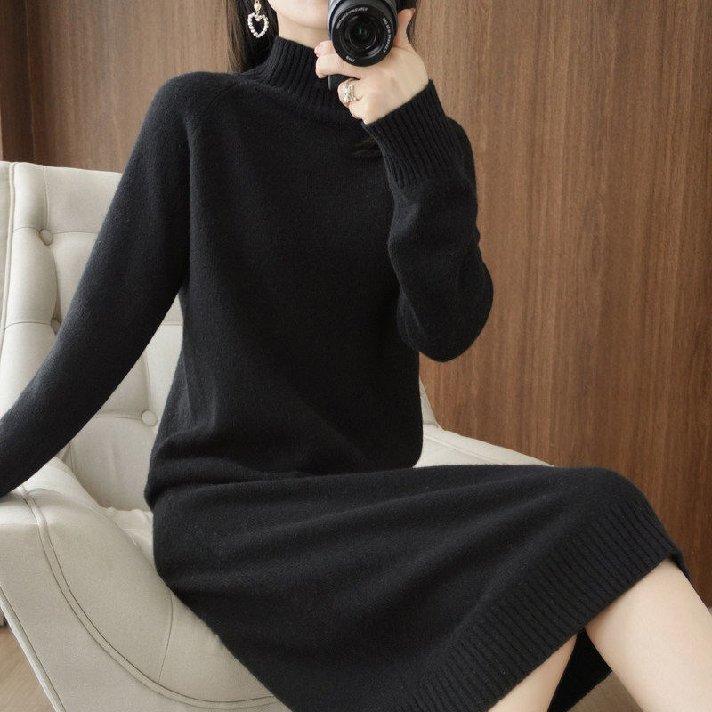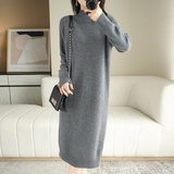 Длинное трикотажное шерстяное платье, средней длины, высокий воротник, в корейском стиле, свободный крой, с акцентом на бедрах, увеличенная толщина