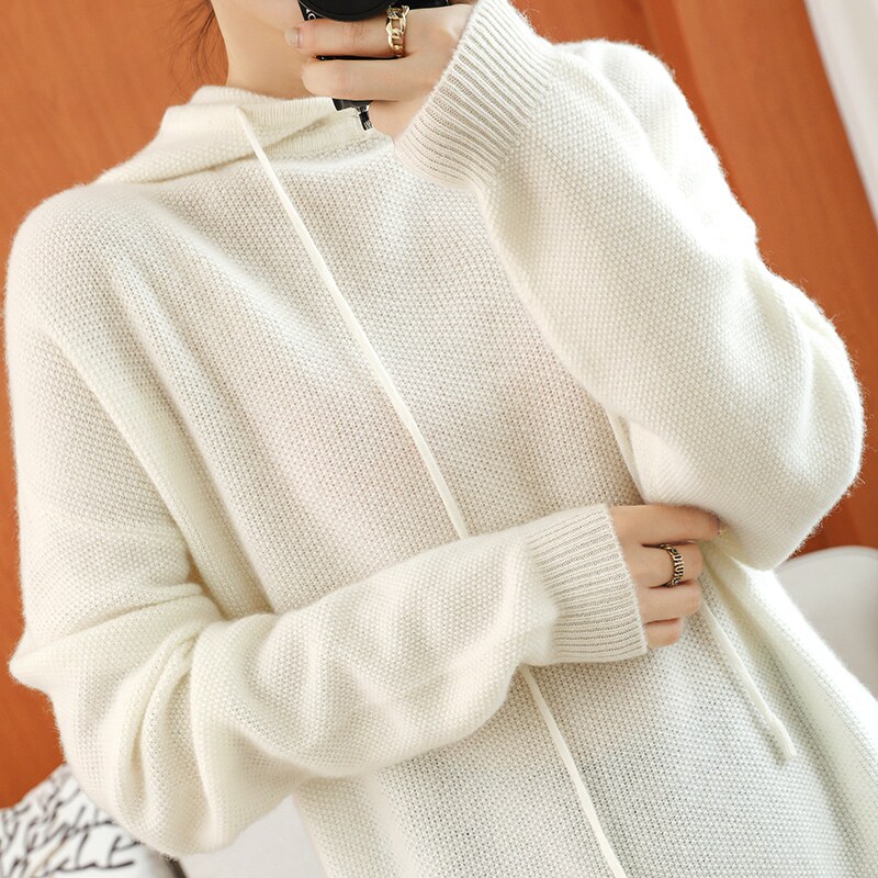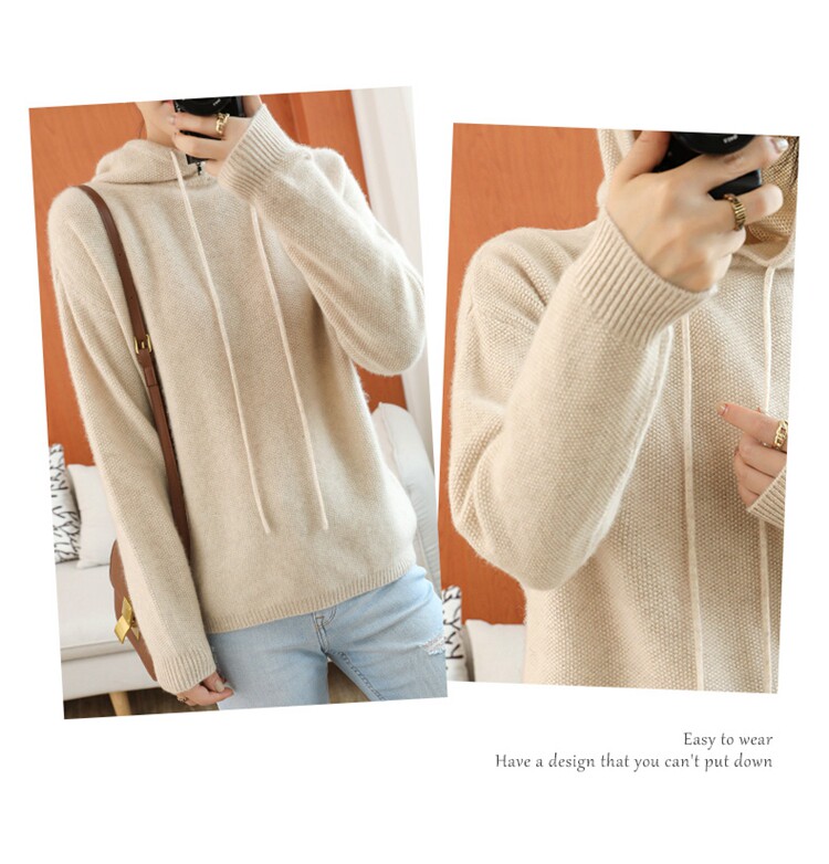 Кашемировый балахон, трикотажная толстовка с капюшоном, шерстяной свитер