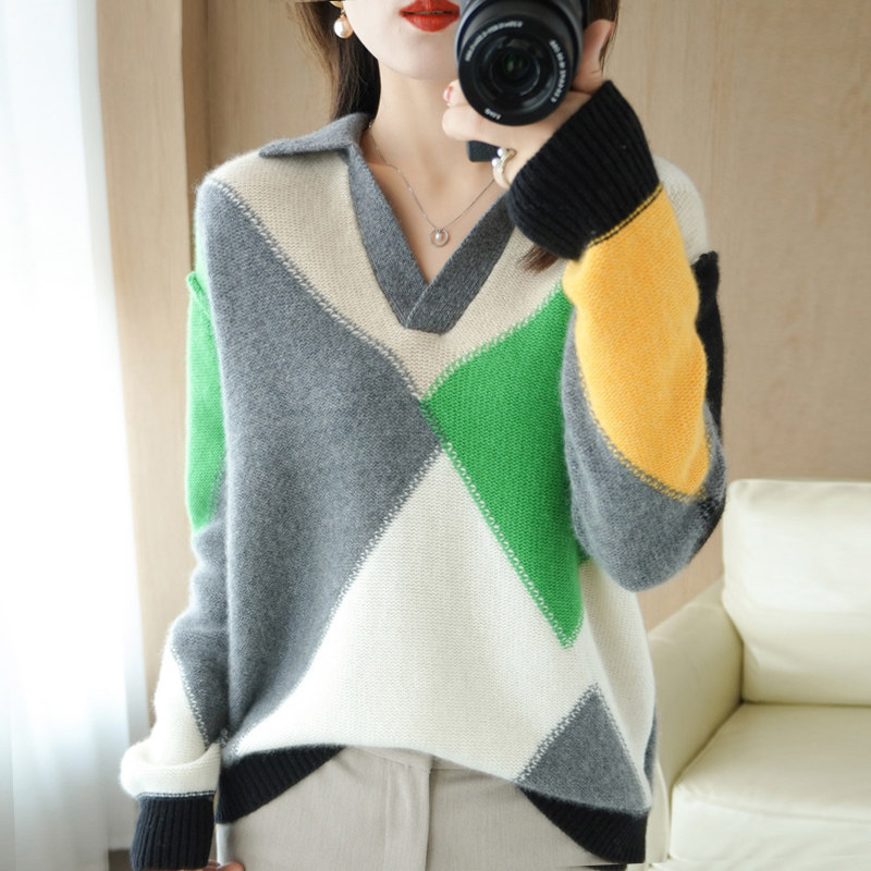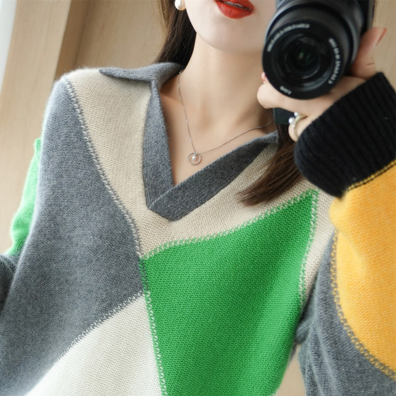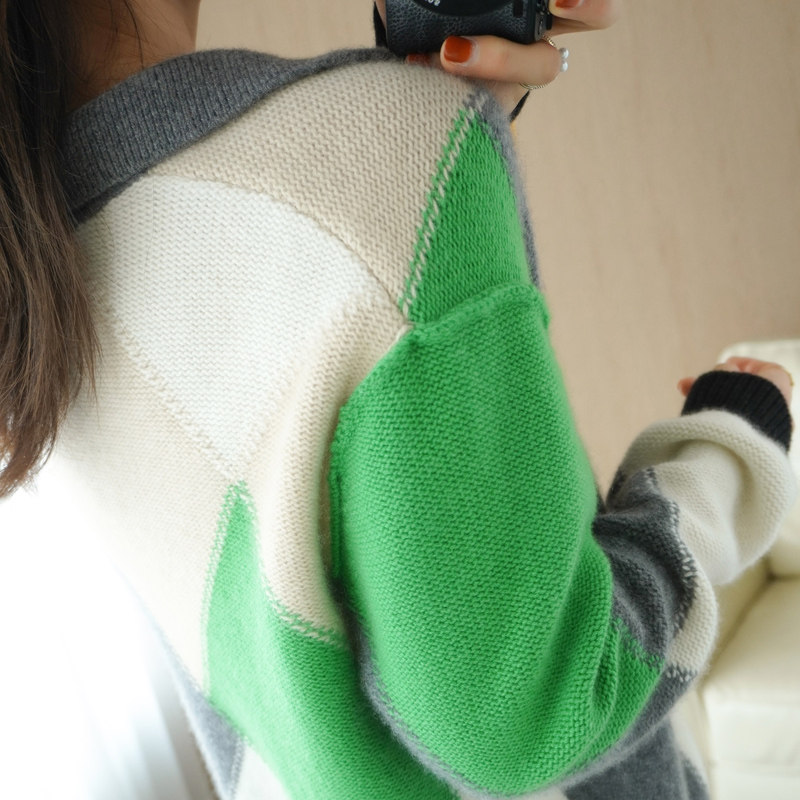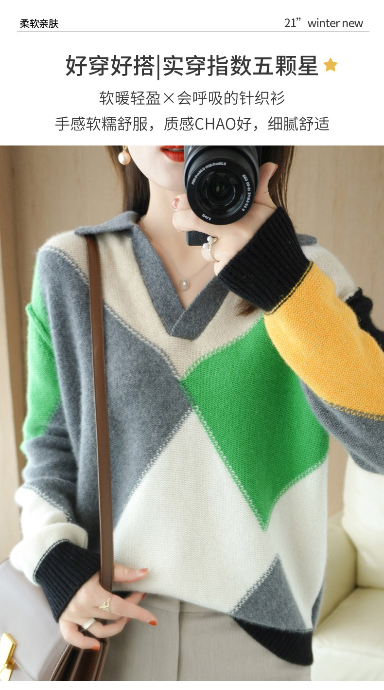 Демисезонный кашемировый свитер, трикотажный лонгслив, коллекция 2021, V-образный вырез, увеличенная толщина, оверсайз