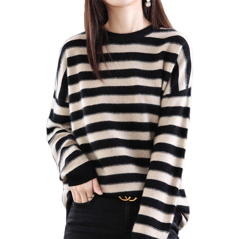 Демисезонный шерстяной трикотажный свитер с круглым воротником, лонгслив, базовые приятные телу нарукавники, коллекция 2021, оверсайз, большой размер