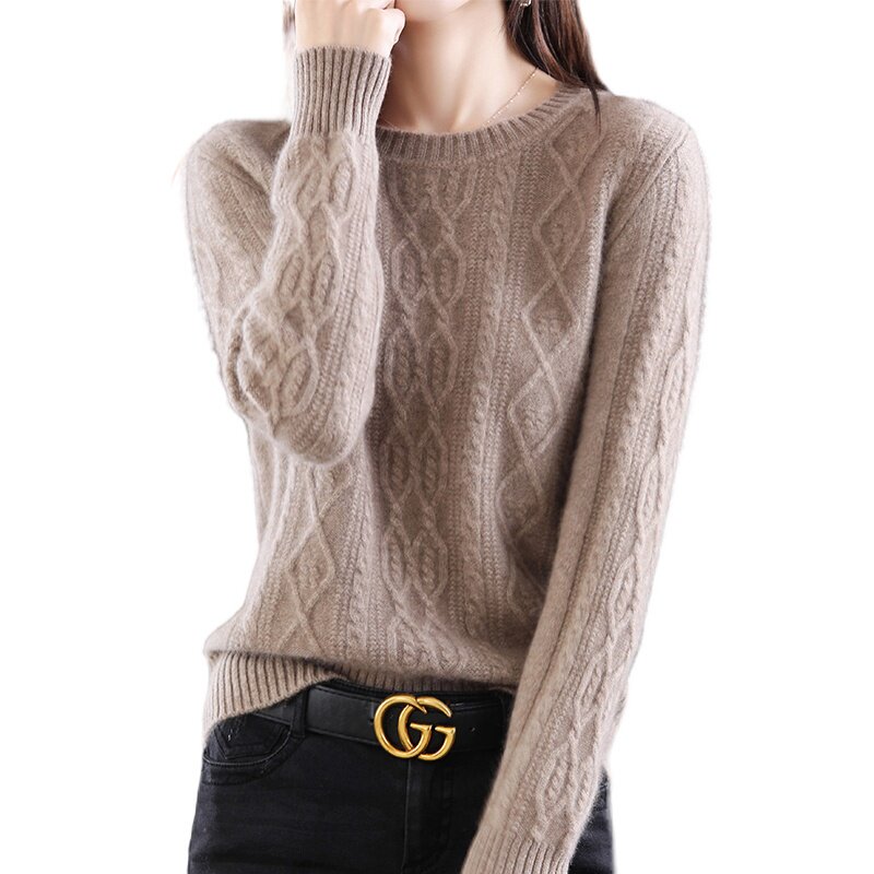 Весенний кашемировый ретро трикотажный шерстяной базовый свитер с круглым воротником, оверсайз, увеличенная толщина, большой размер
