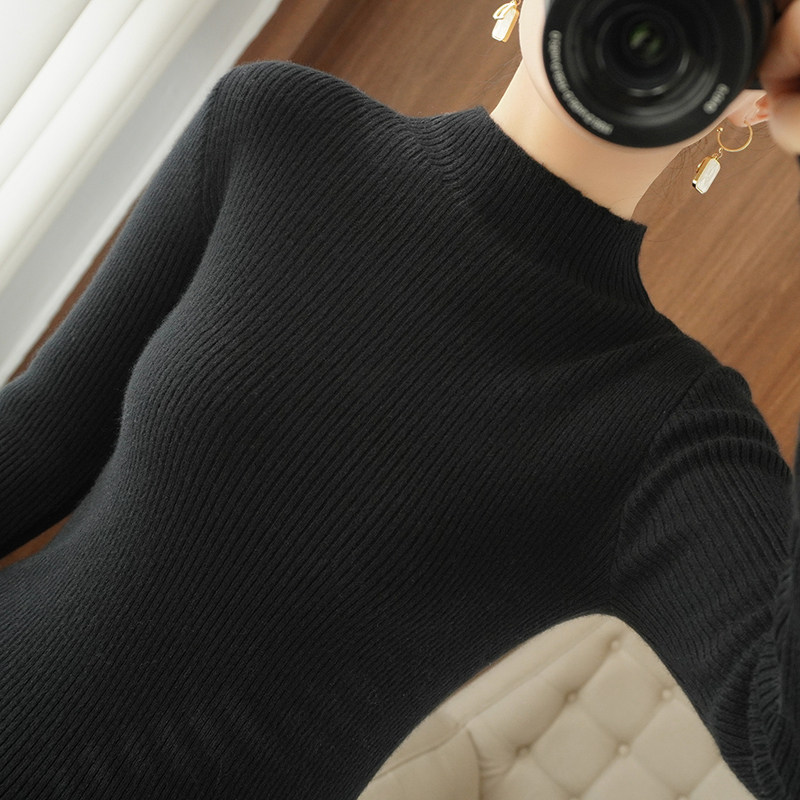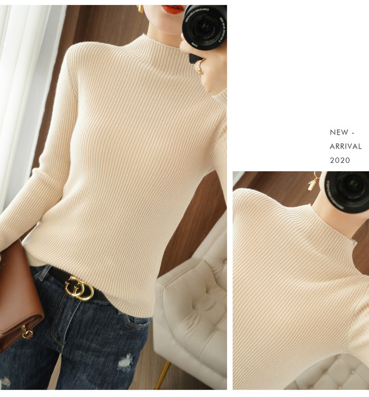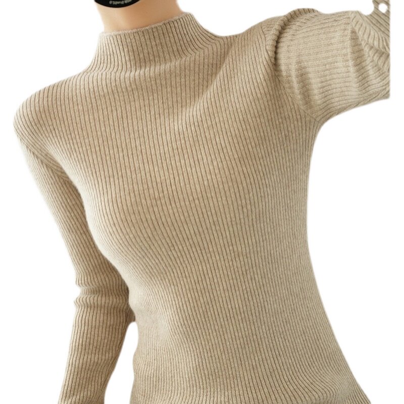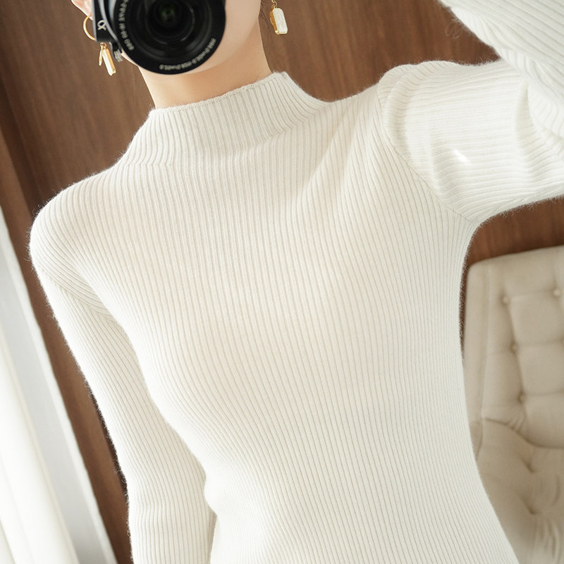 Шерстяной трикотажный свитер, базовый приятный телу белый удерживающий тепло лонгслив, высокий воротник, с рукавом
