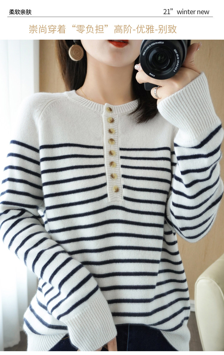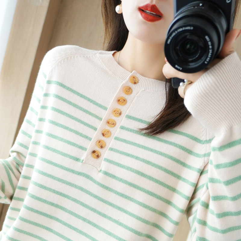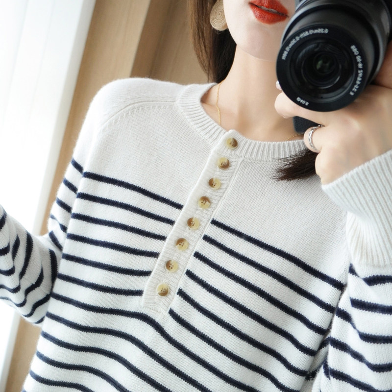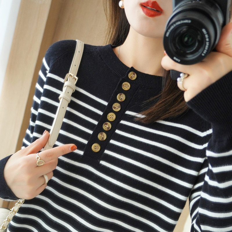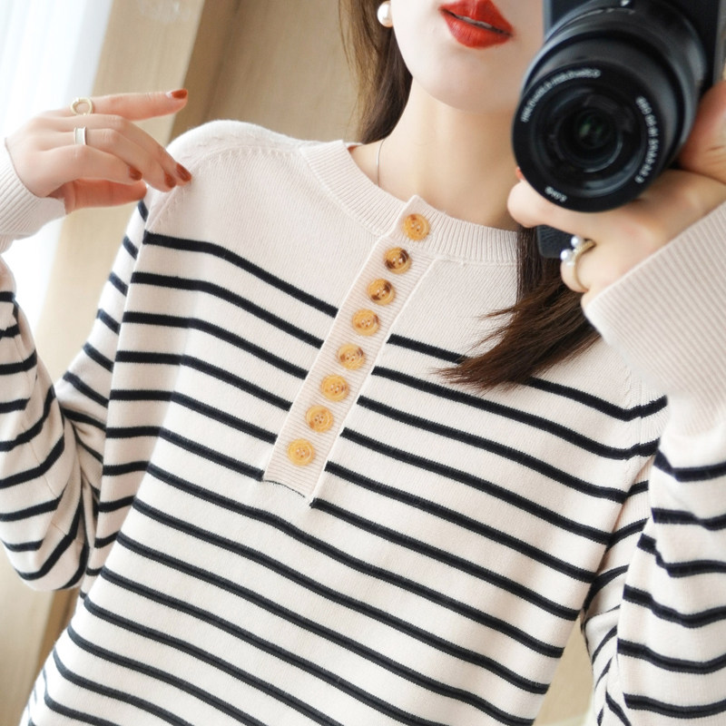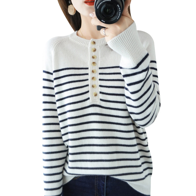 Демисезонный шерстяной трикотажный свитер с круглым воротником, французский стиль, свободный крой