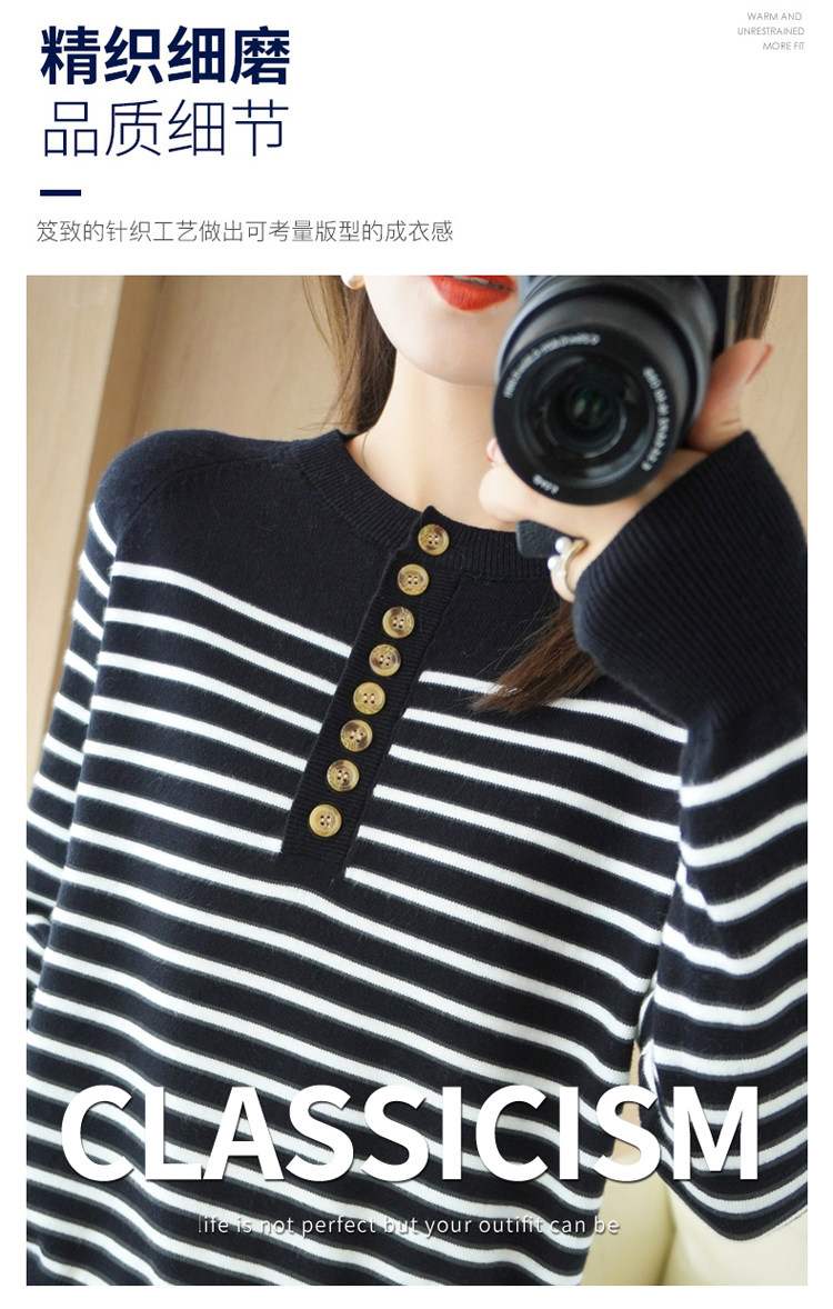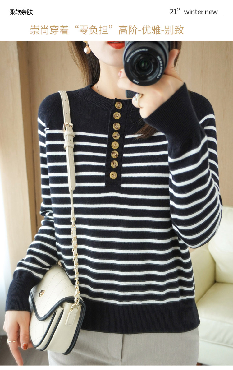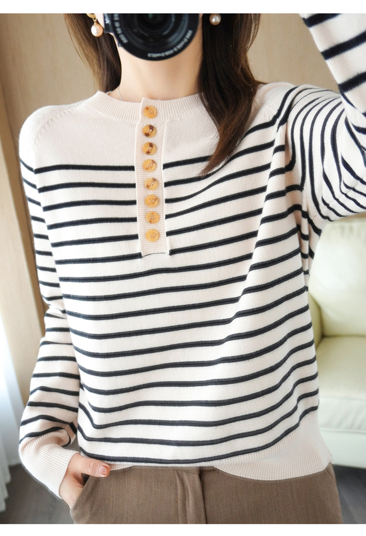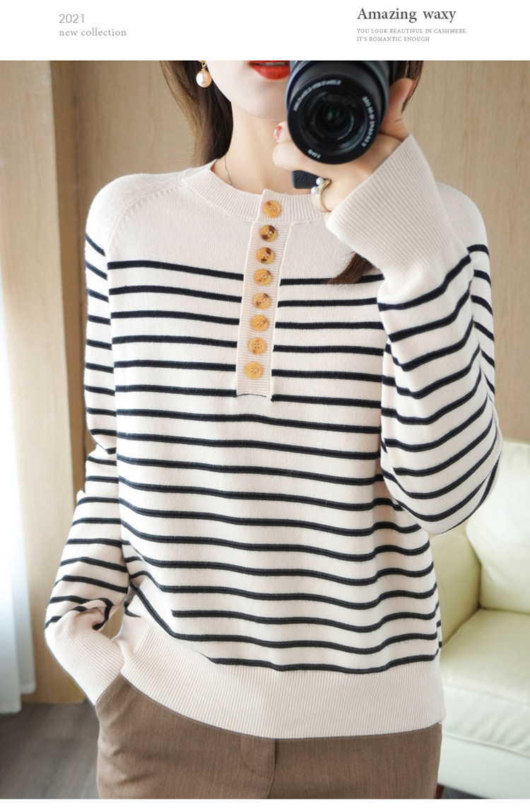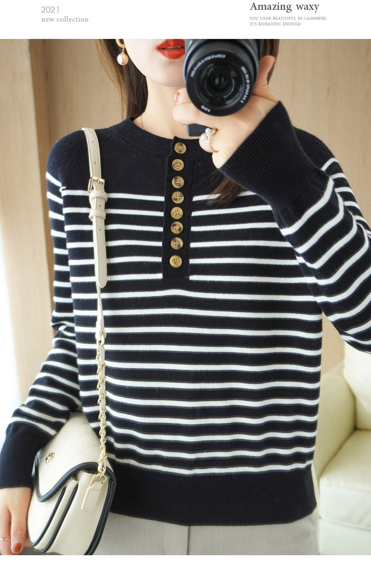 Демисезонный шерстяной трикотажный свитер с круглым воротником, французский стиль, свободный крой