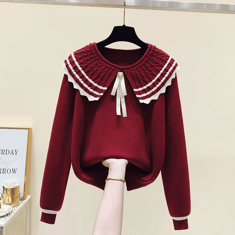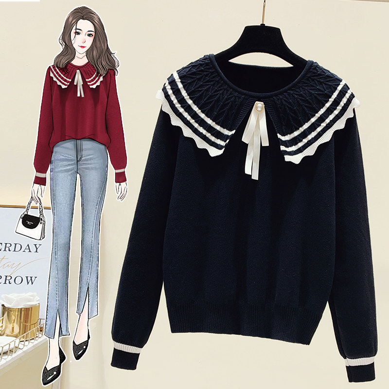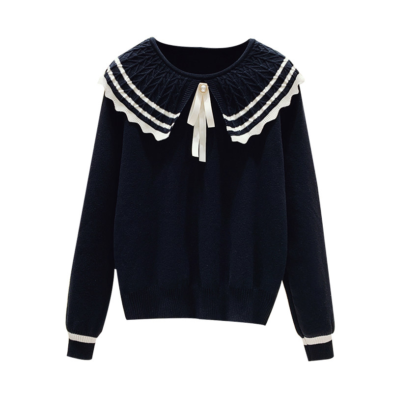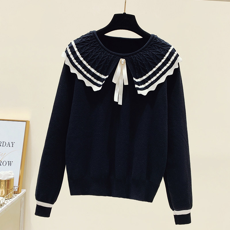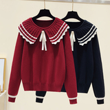 Трикотажная приятная телу короткая кукла с бантиком, свитер, большой размер, коллекция 2023, в западном стиле, кукольный воротник