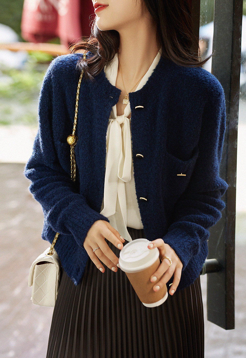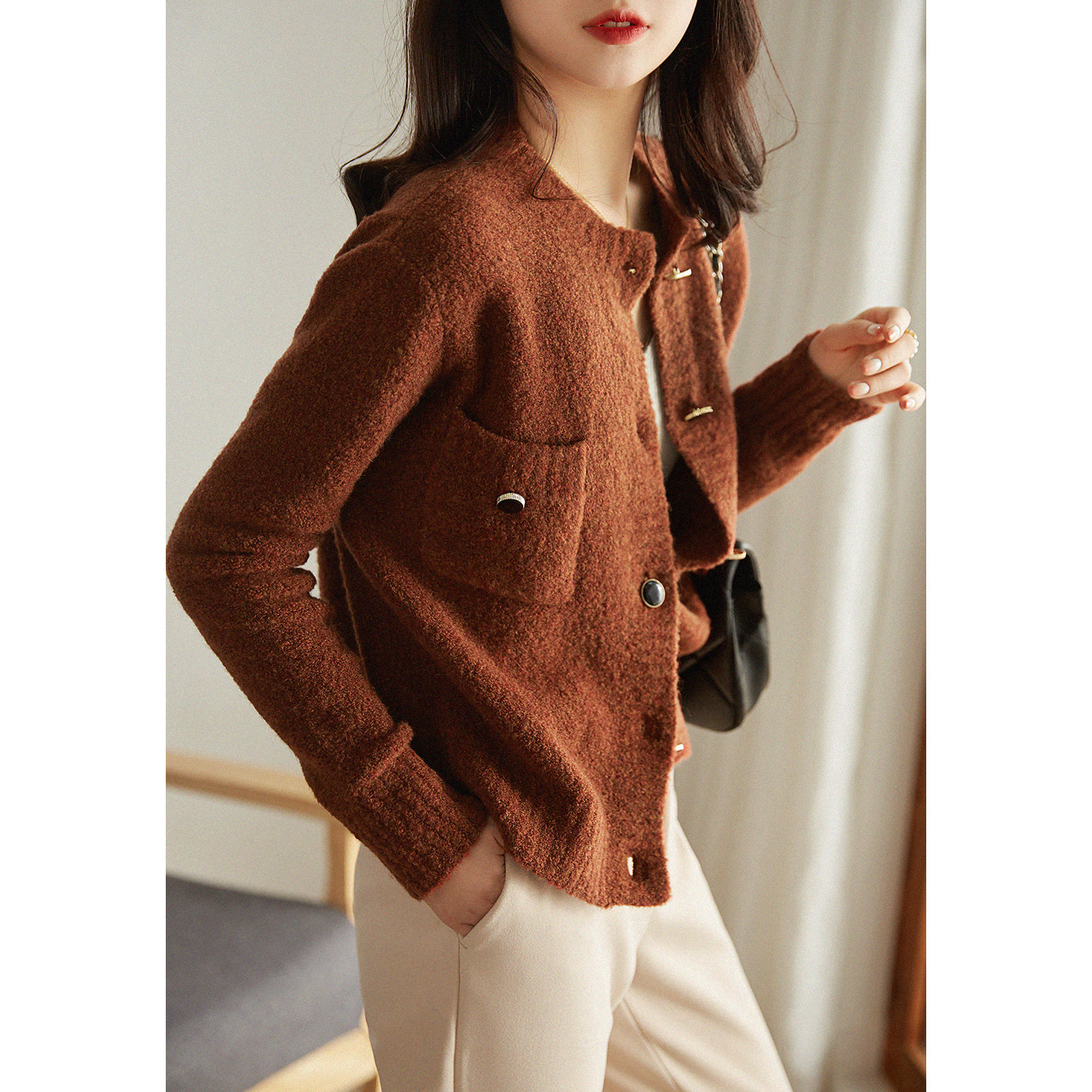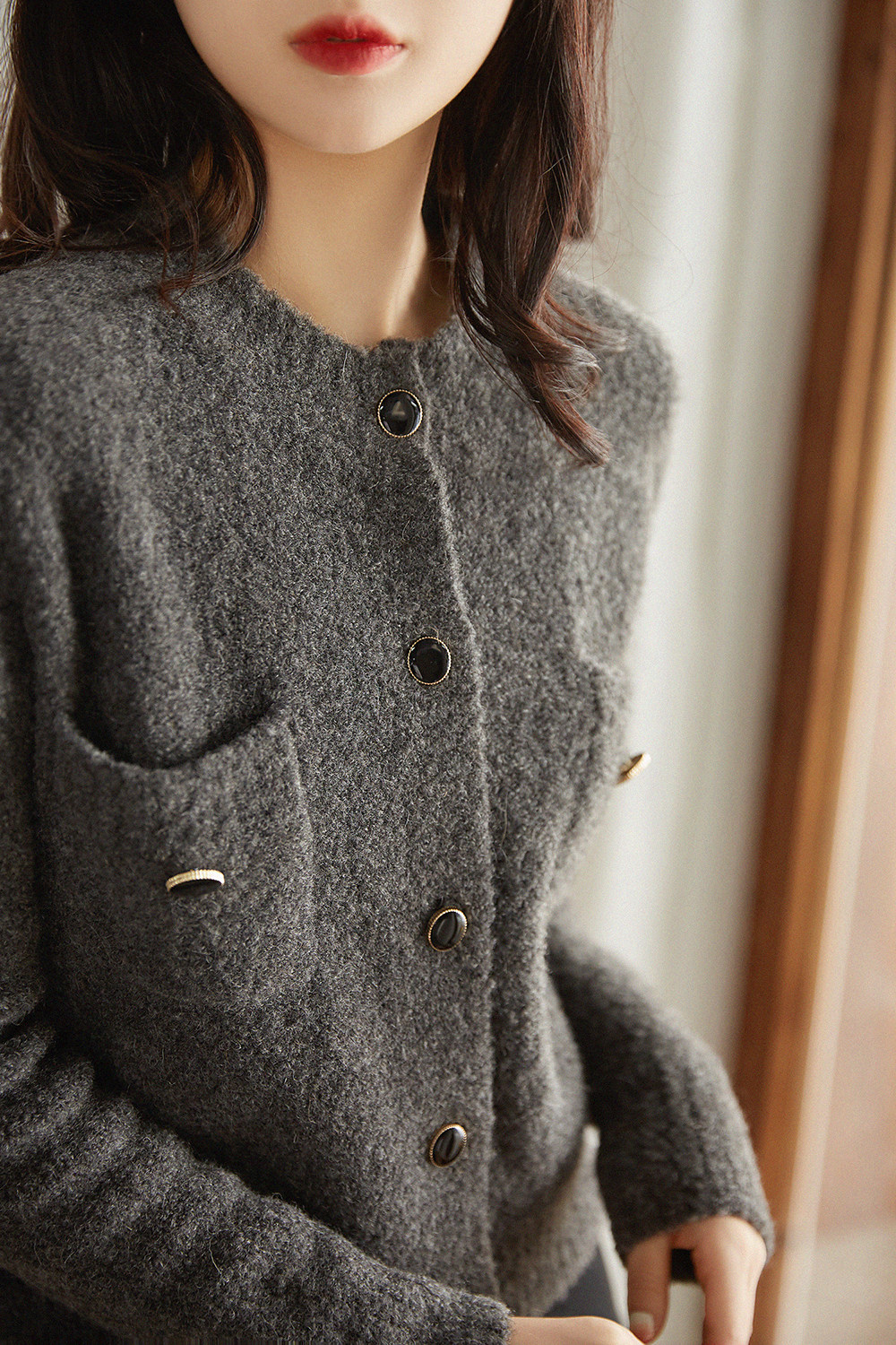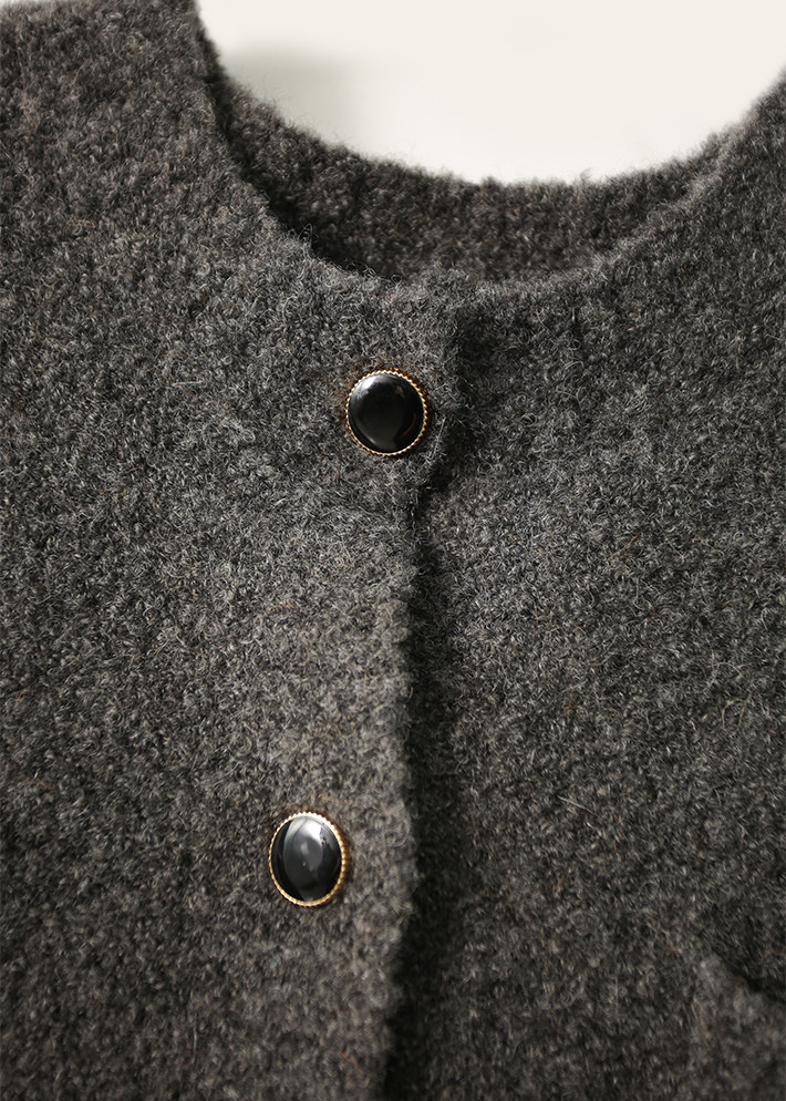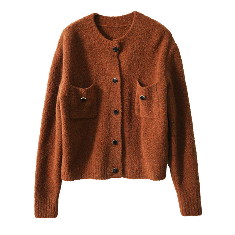 い Аромат 21FW, трехмерный круговой марлей -темперамент круглой шеи+точка пуговица прозрачная вязаная кардиган альпака Mlzy50574