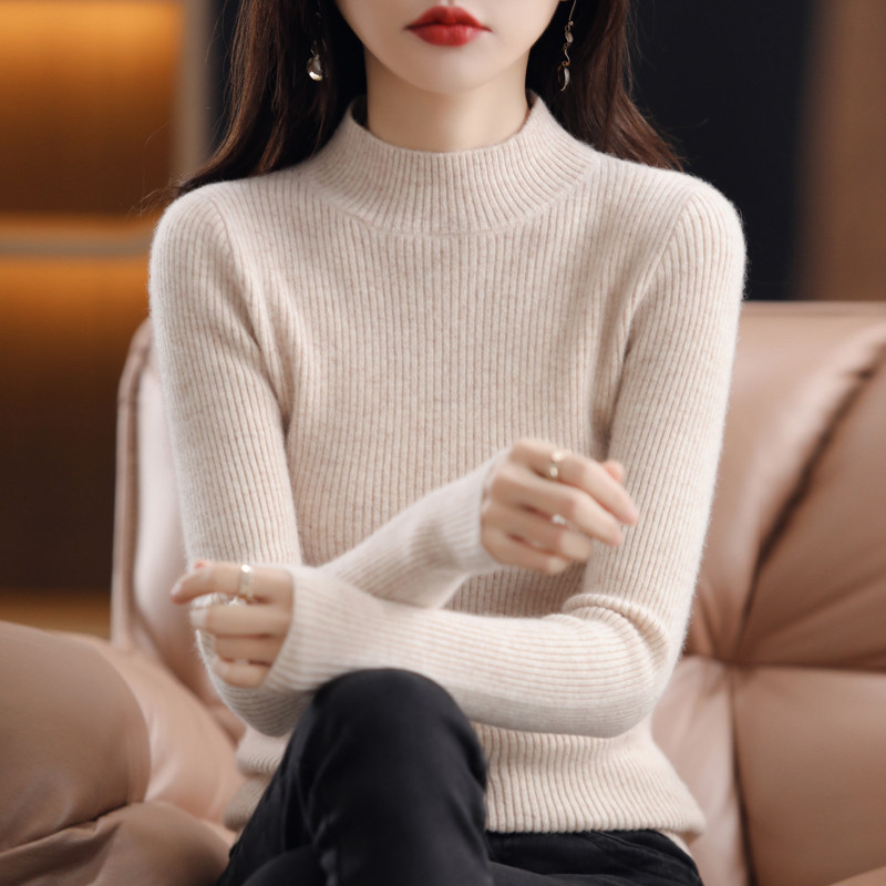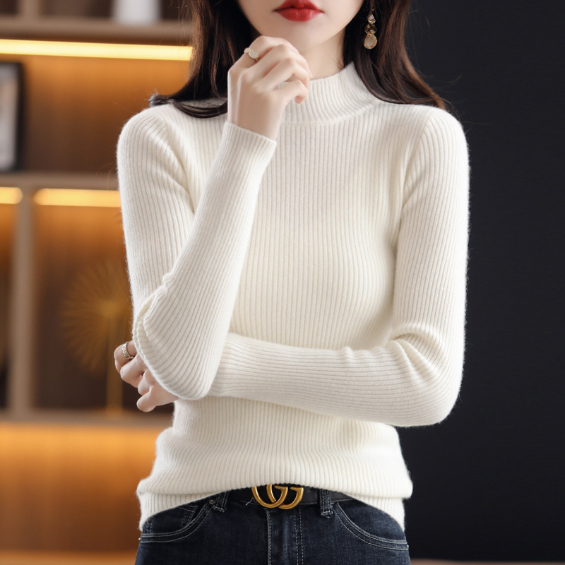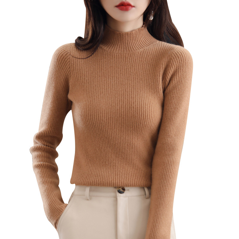 Демисезонный шерстяной трикотажный короткий кашемировый базовый приятный телу свитер, в обтяжку, высокий воротник