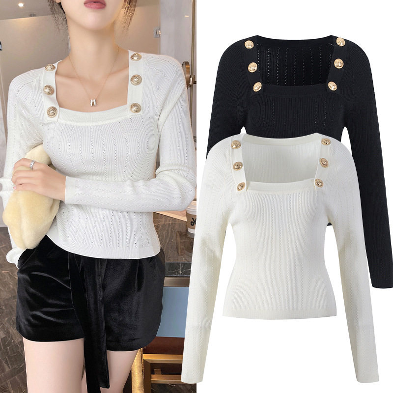 Весенний милый металлический лонгслив, свитер, в западном стиле, облегающий крой, квадратный вырез, по фигуре