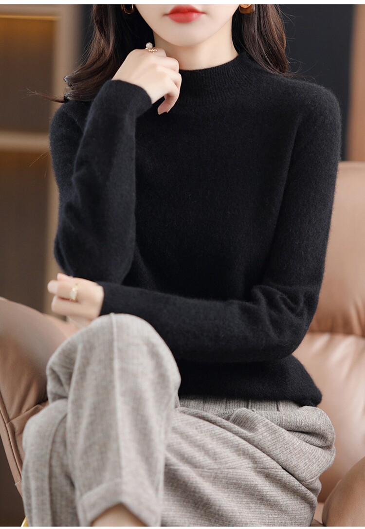 Шерстяной трикотажный демисезонный кашемировый базовый свитер, высокий воротник, оверсайз