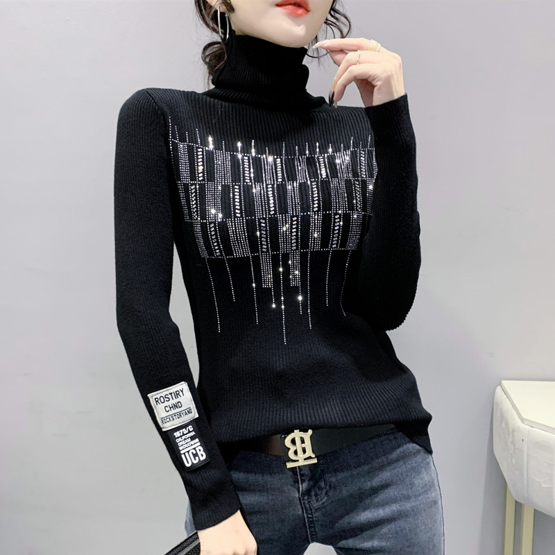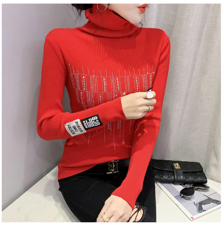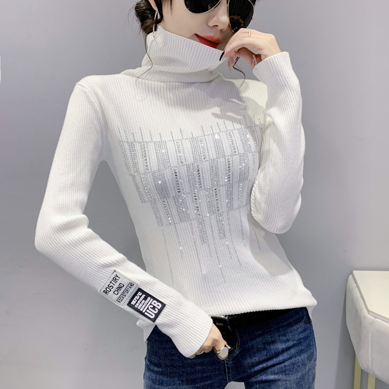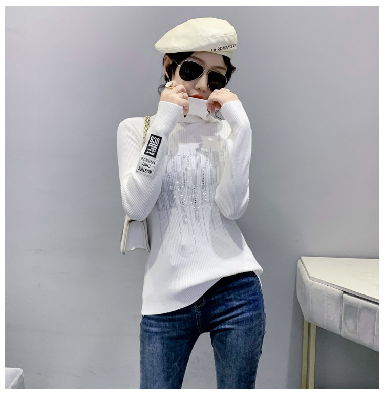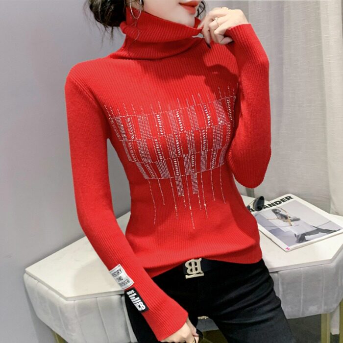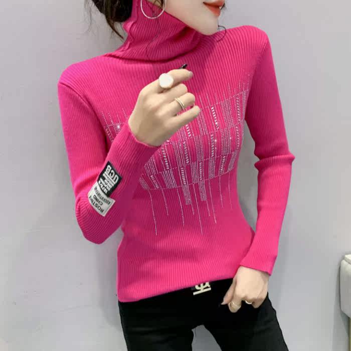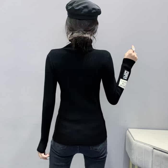 Базовый демисезонный свитер, трикотажный лонгслив, высокий воротник, коллекция 2021, в западном стиле, в обтяжку