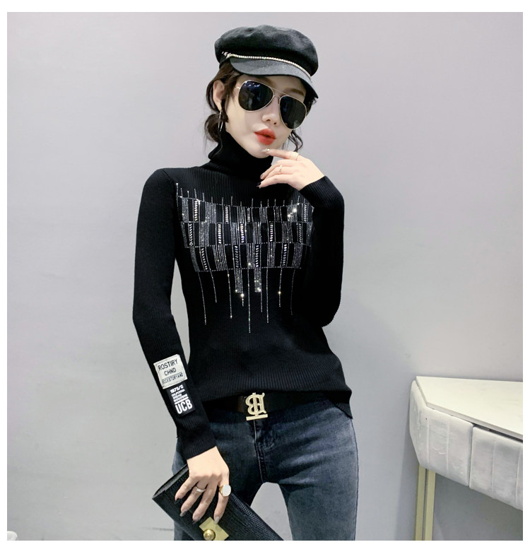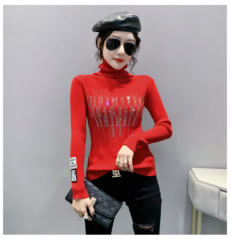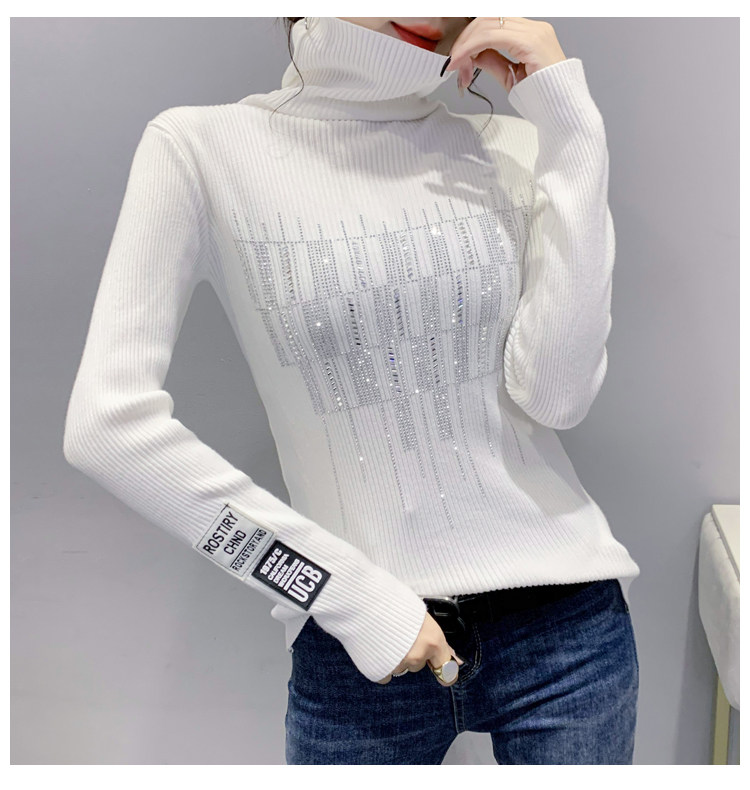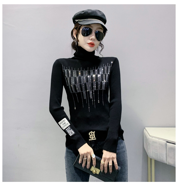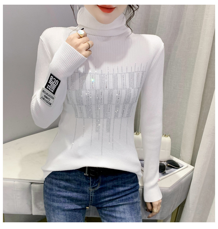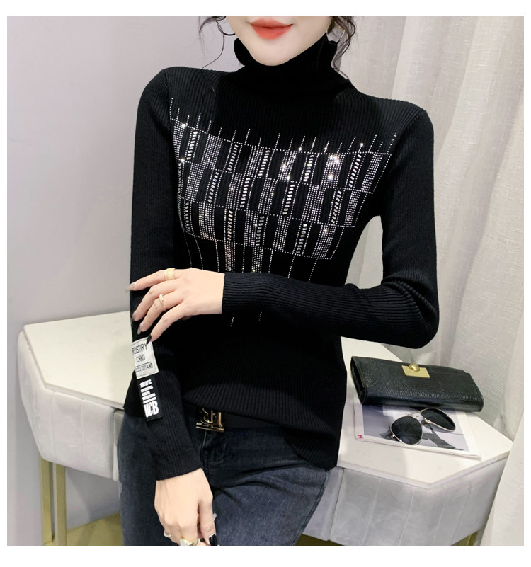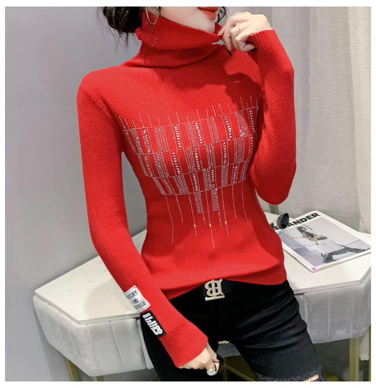 Базовый демисезонный свитер, трикотажный лонгслив, высокий воротник, коллекция 2021, в западном стиле, в обтяжку