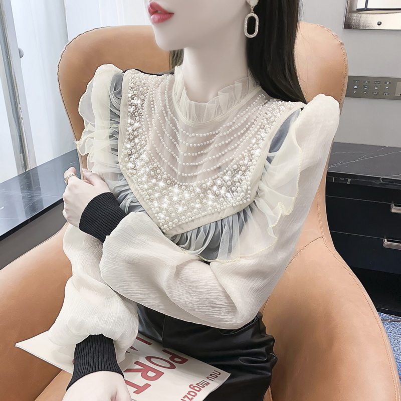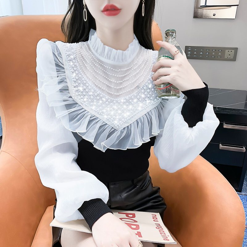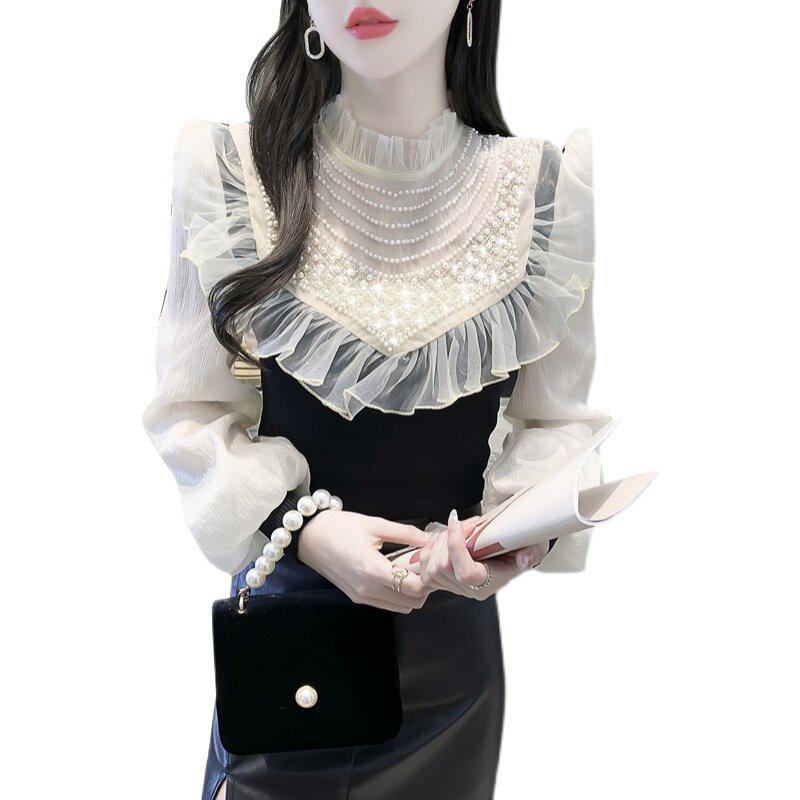 Осенний дизайнерский трикотажный свитер, футболка, модный приятный телу лонгслив, коллекция 2023, тренд сезона, рукава фонарики