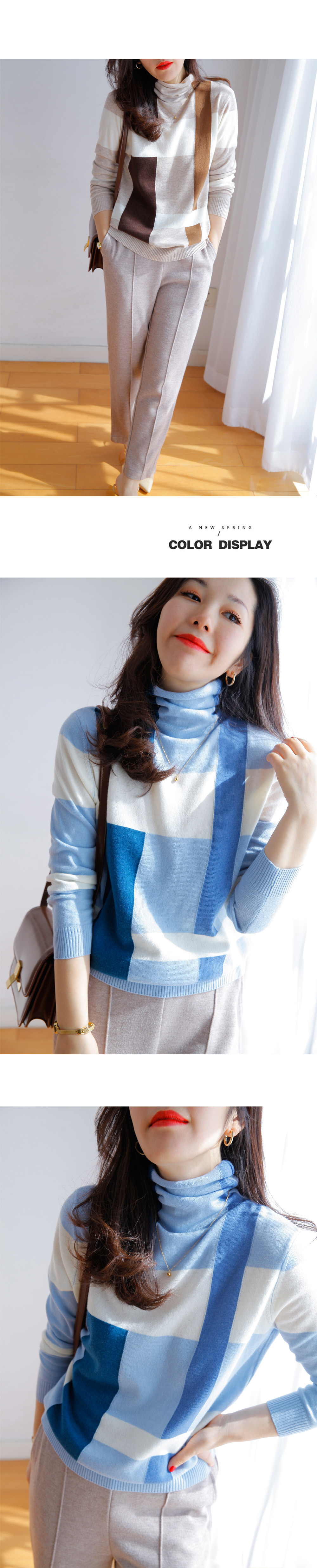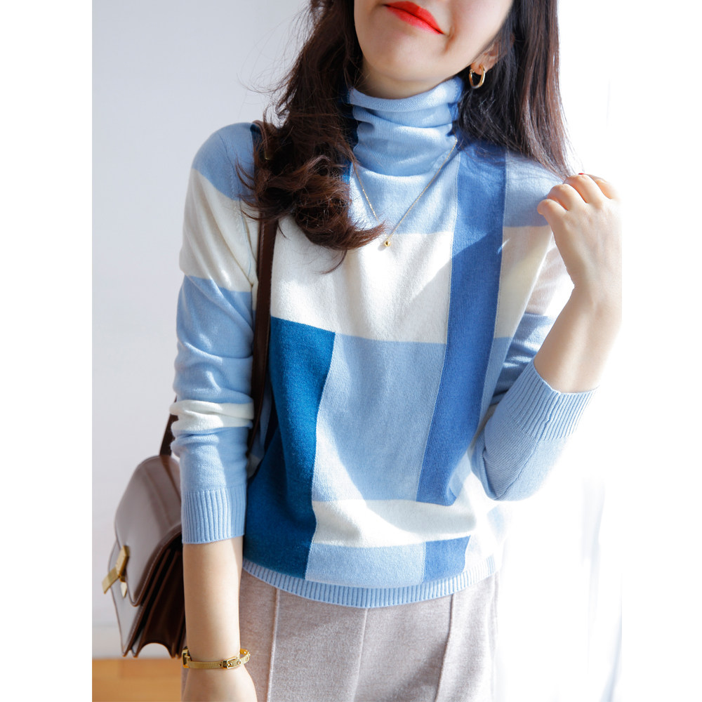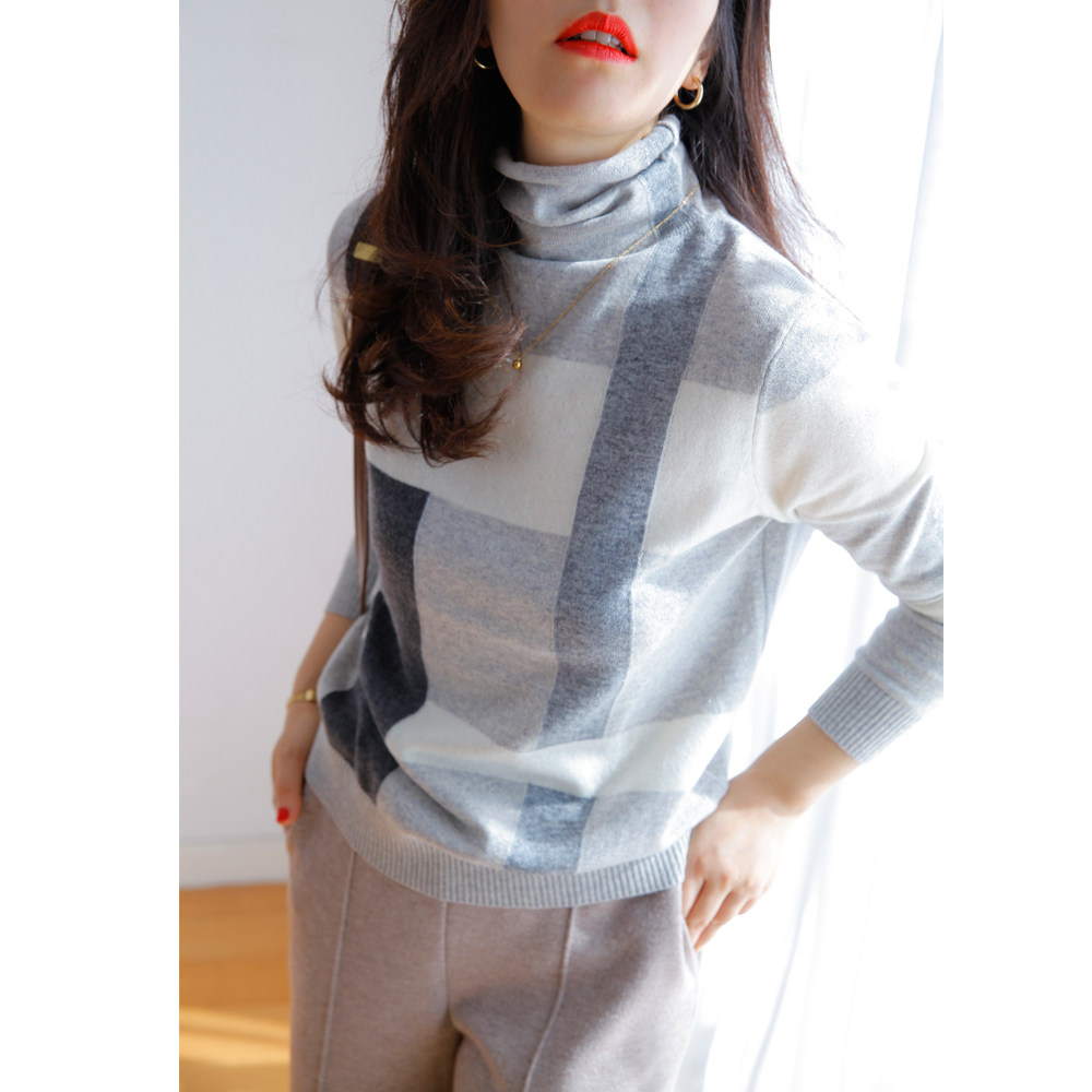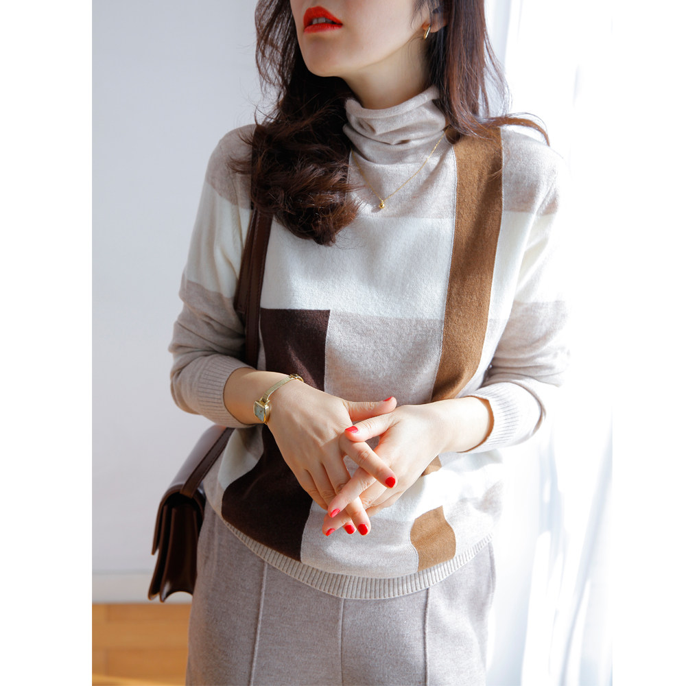 Прекрасно носить отдельно или как внутренний слой. Бесплатная водолазка с высоким воротником и неравномерным клетчатым шерстяным низом для женщин зимой.
