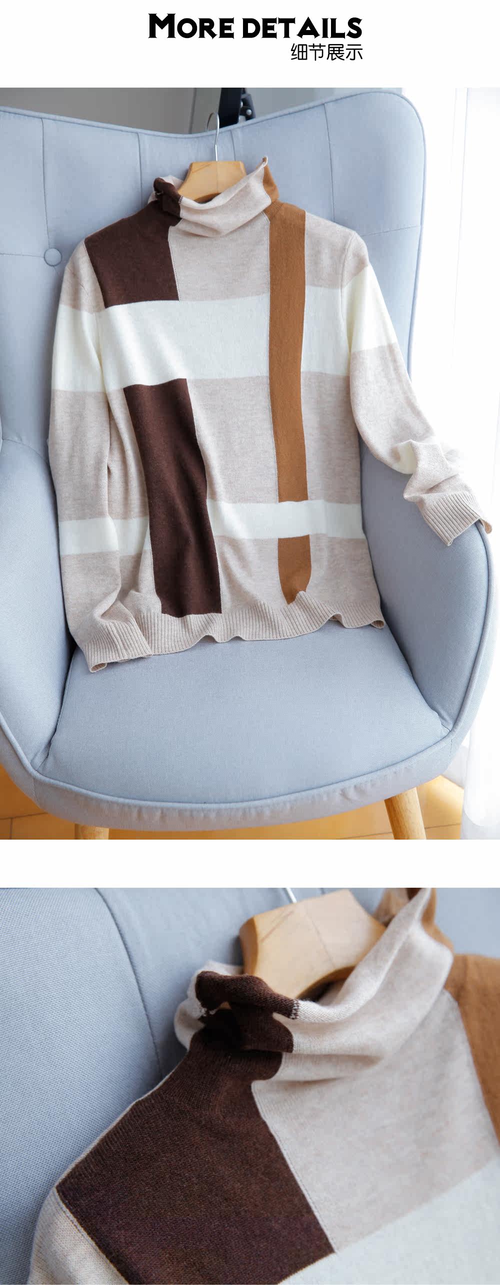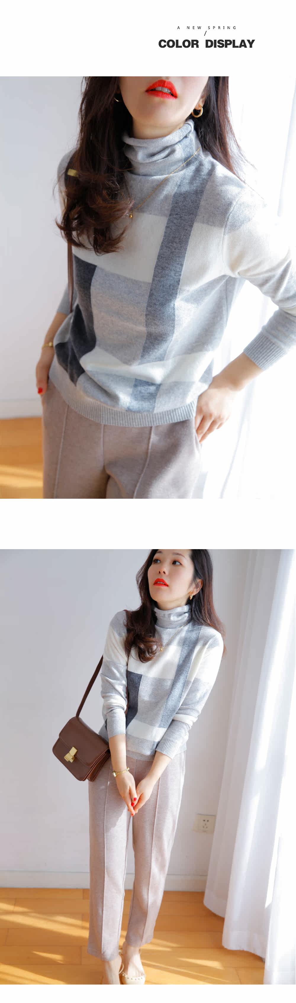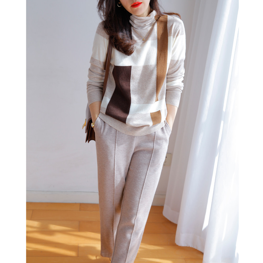 Прекрасно носить отдельно или как внутренний слой. Бесплатная водолазка с высоким воротником и неравномерным клетчатым шерстяным низом для женщин зимой.